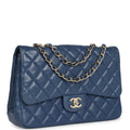 Chanel Jumbo Classic Single Flap Bag Blue Lambskin Brushed Gold Hardware