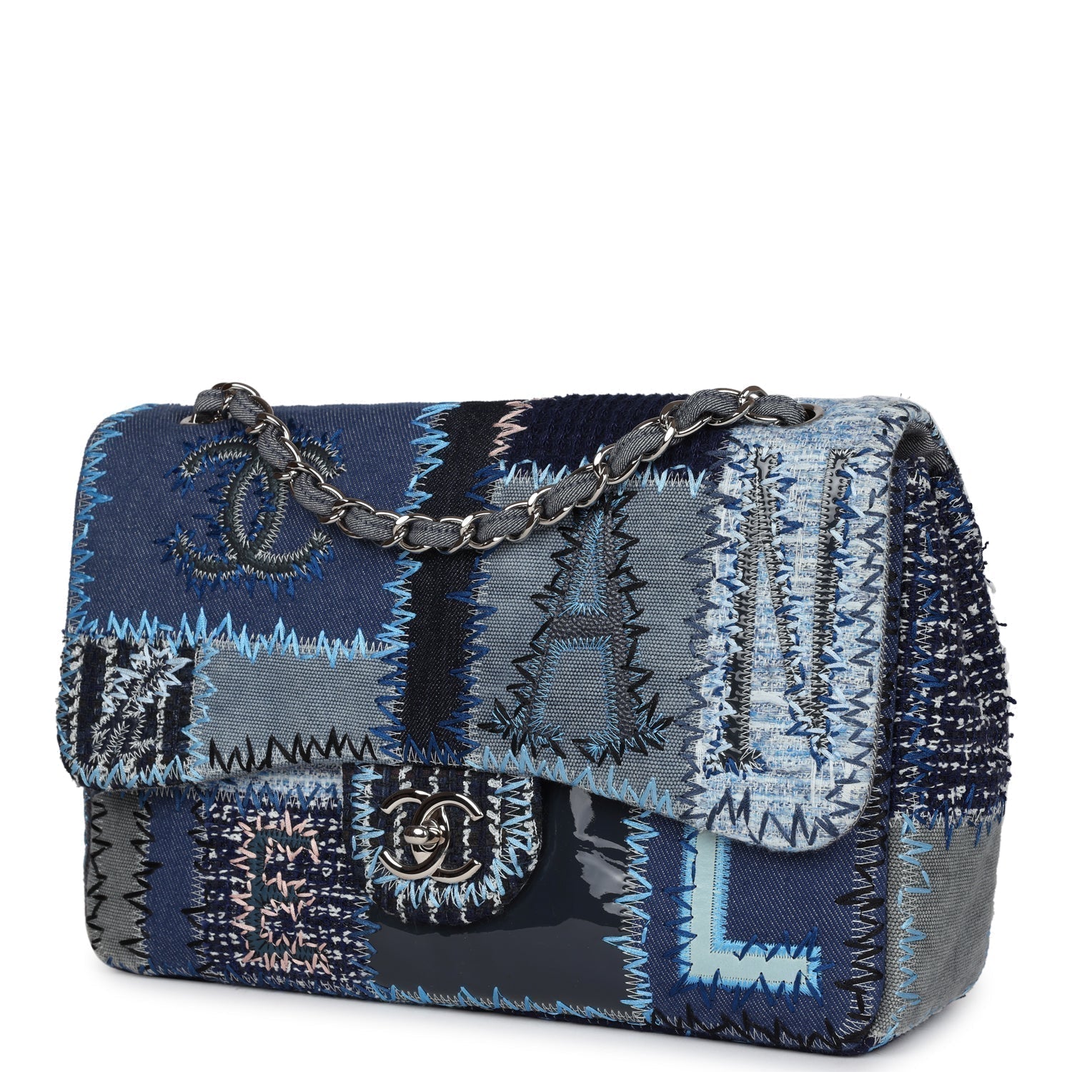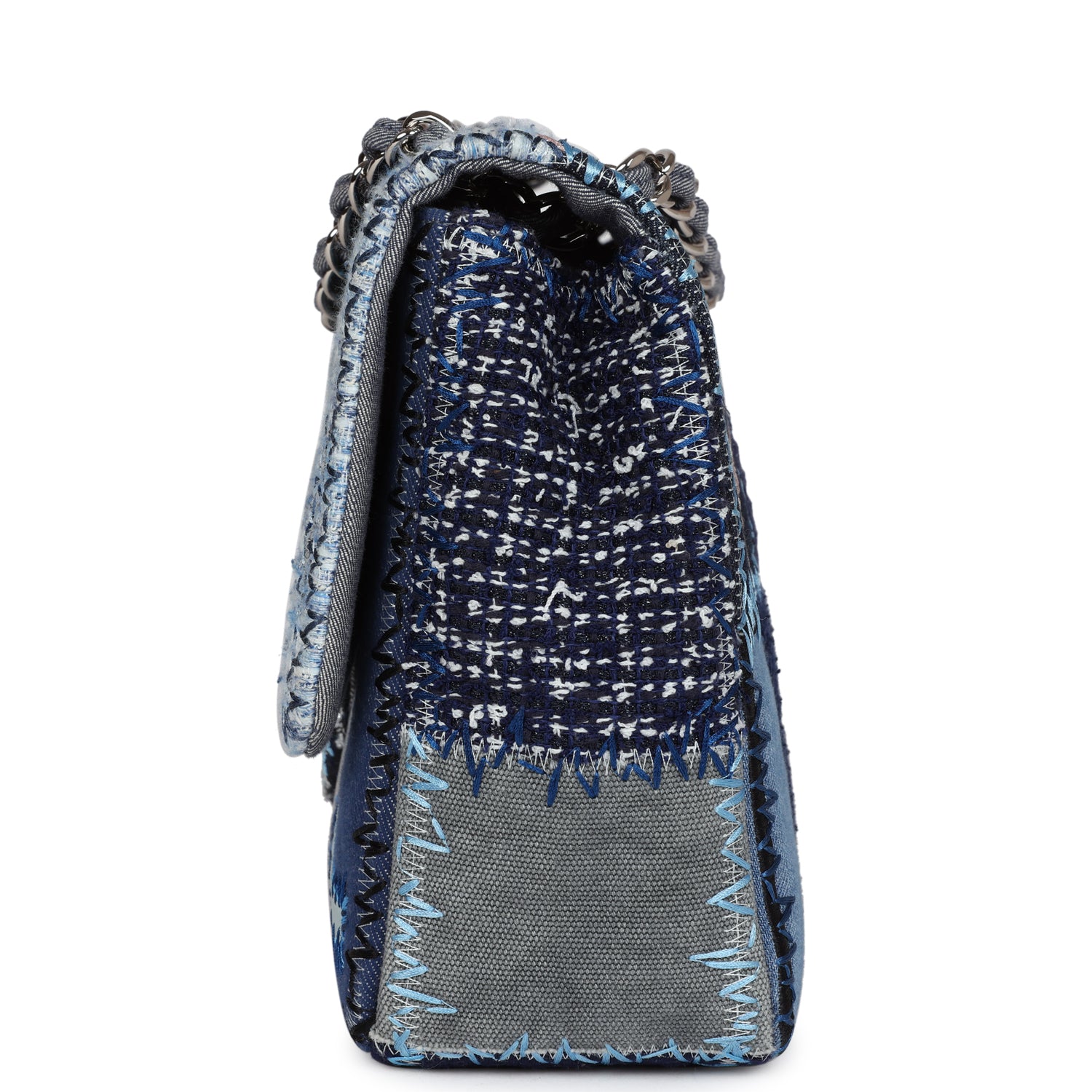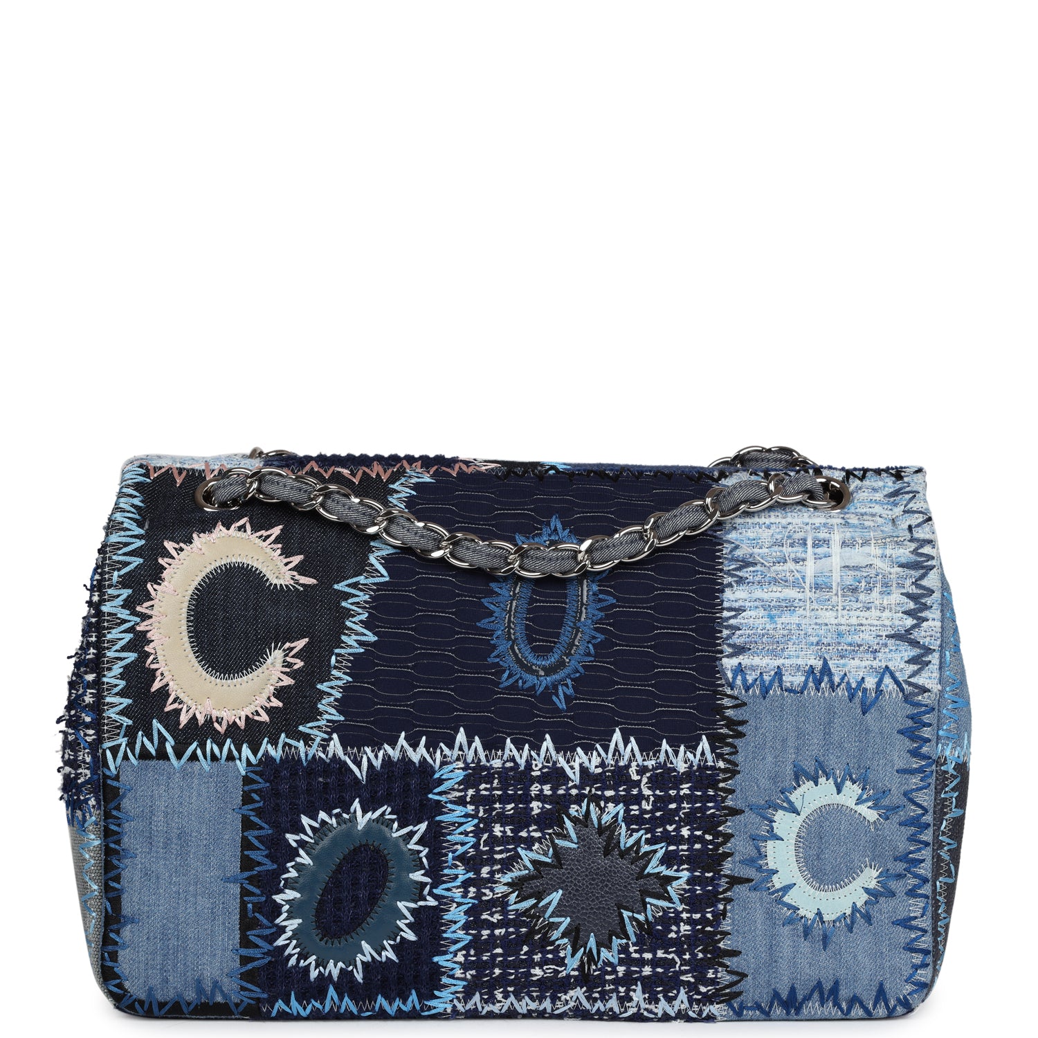 Chanel Jumbo Flap Bag Blue Patchwork Denim Silver Hardware