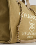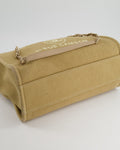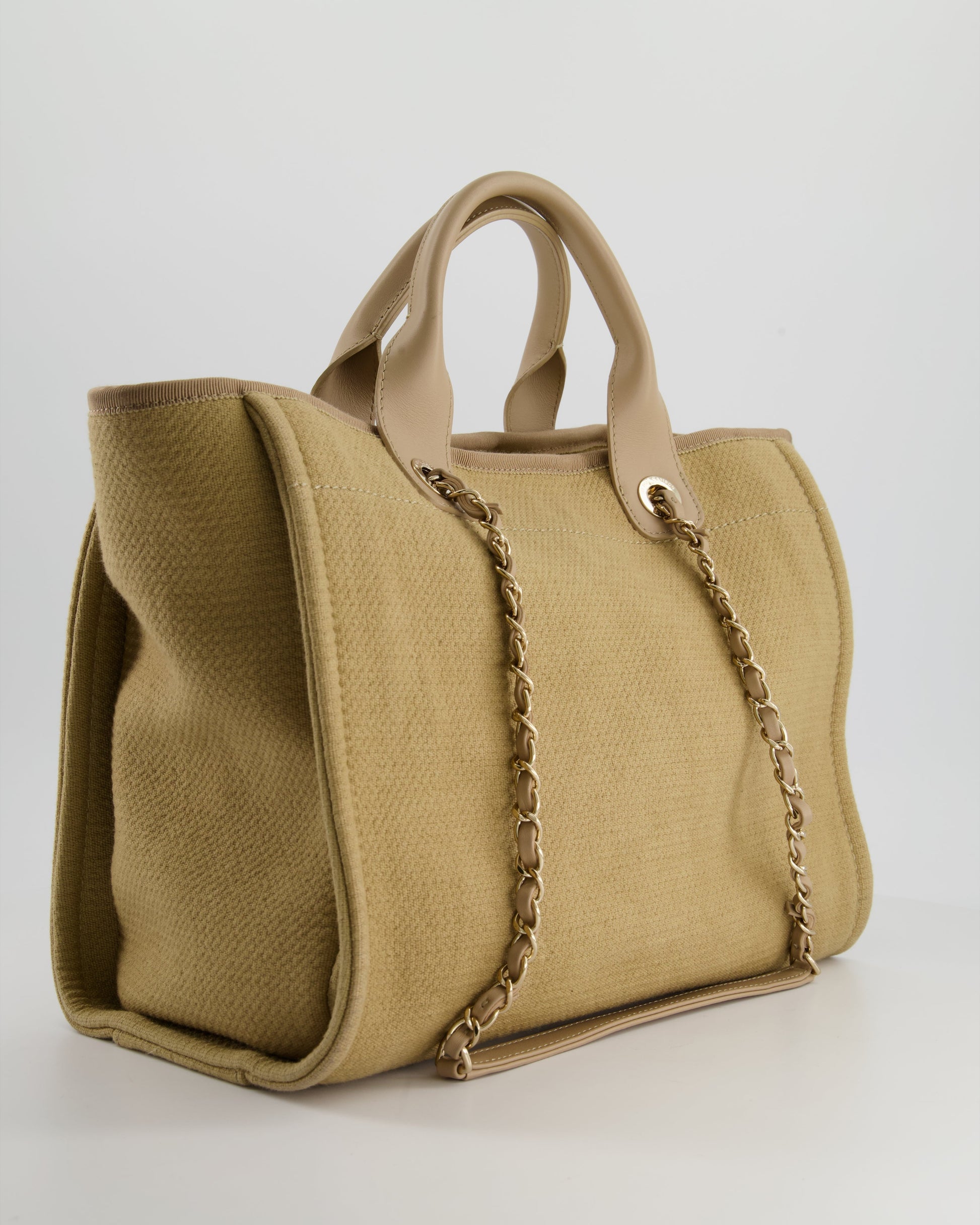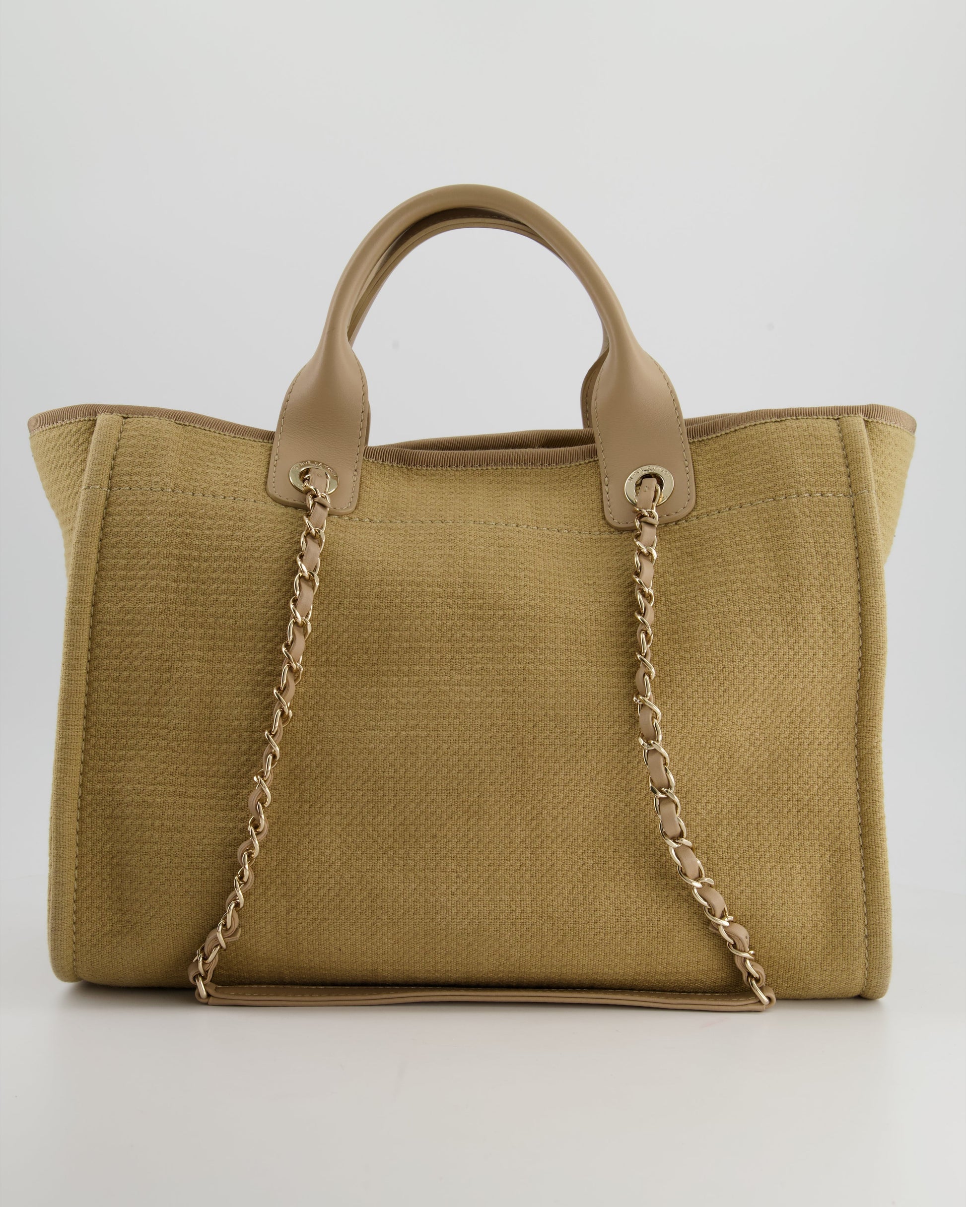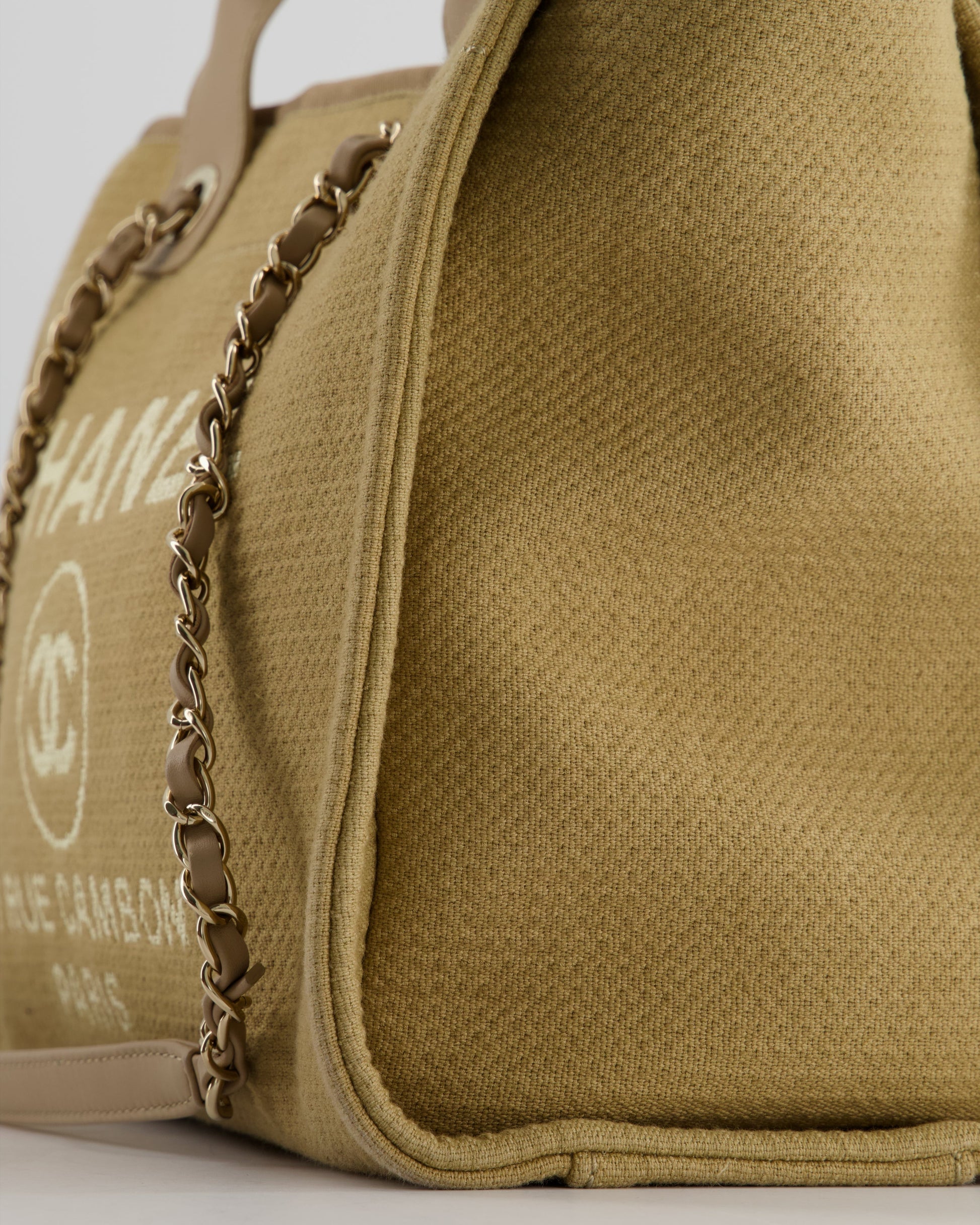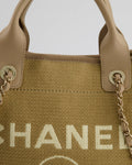 Chanel Dark Beige Canvas Small Deauville Tote Bag with CC Logo Print and Champagne Gold Hardware