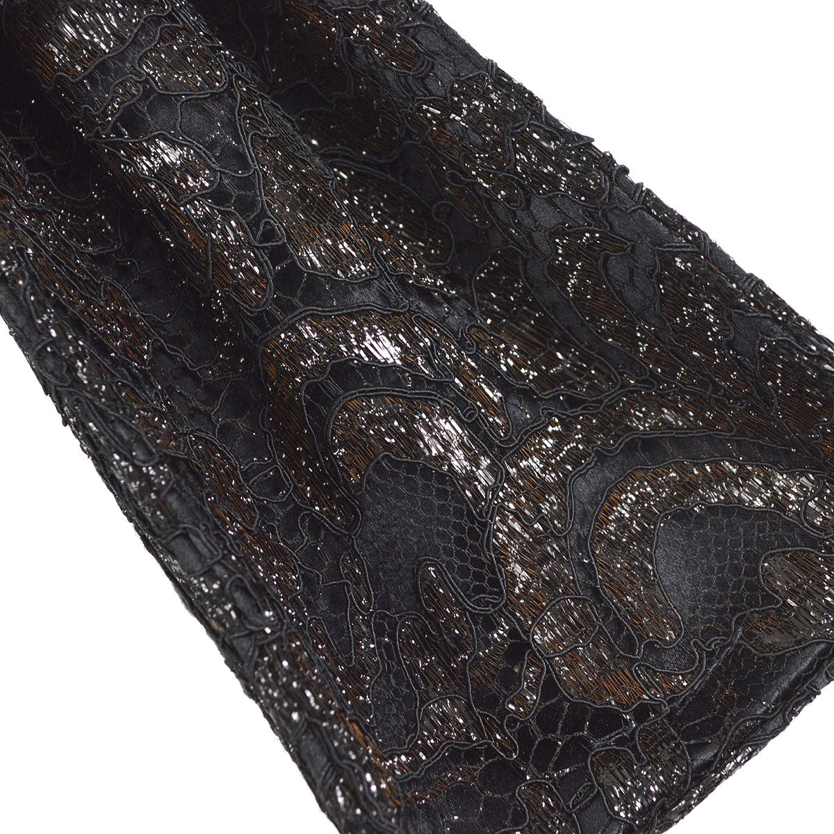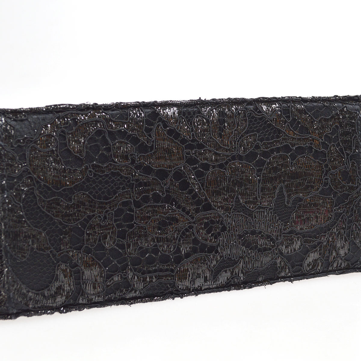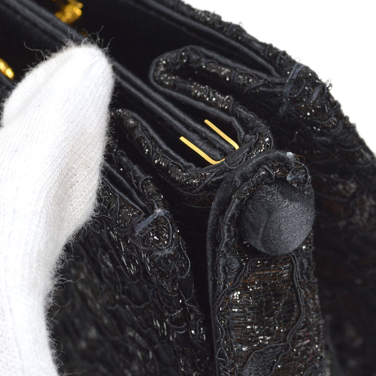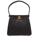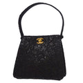CHANEL * Lace Both Side Handbag Black Satin 57058