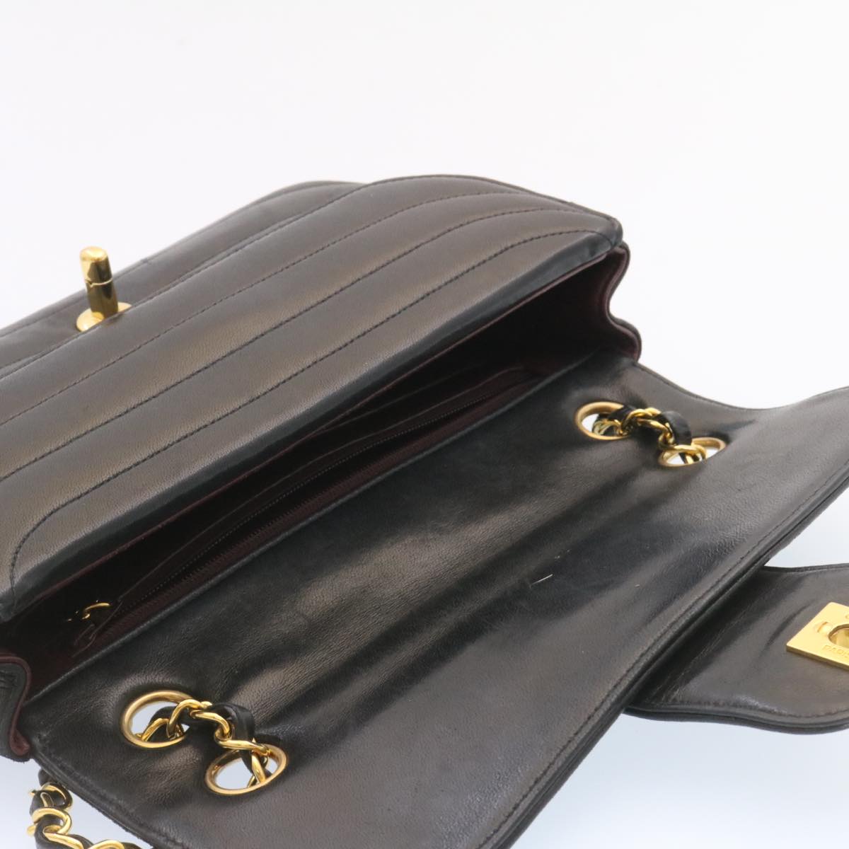 Chanel Lamb Skin Double Flap Chain Shoulder Bag Black CC Auth 26207A