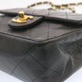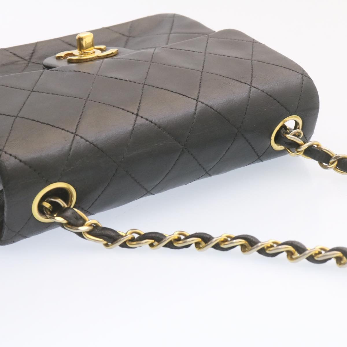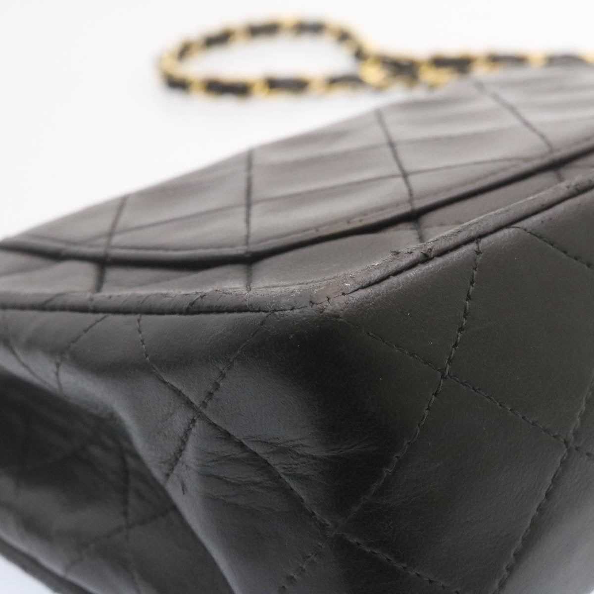 Chanel Lamb Skin Matelasse Chain Flap Shoulder Bag Black CC Auth 25502A
