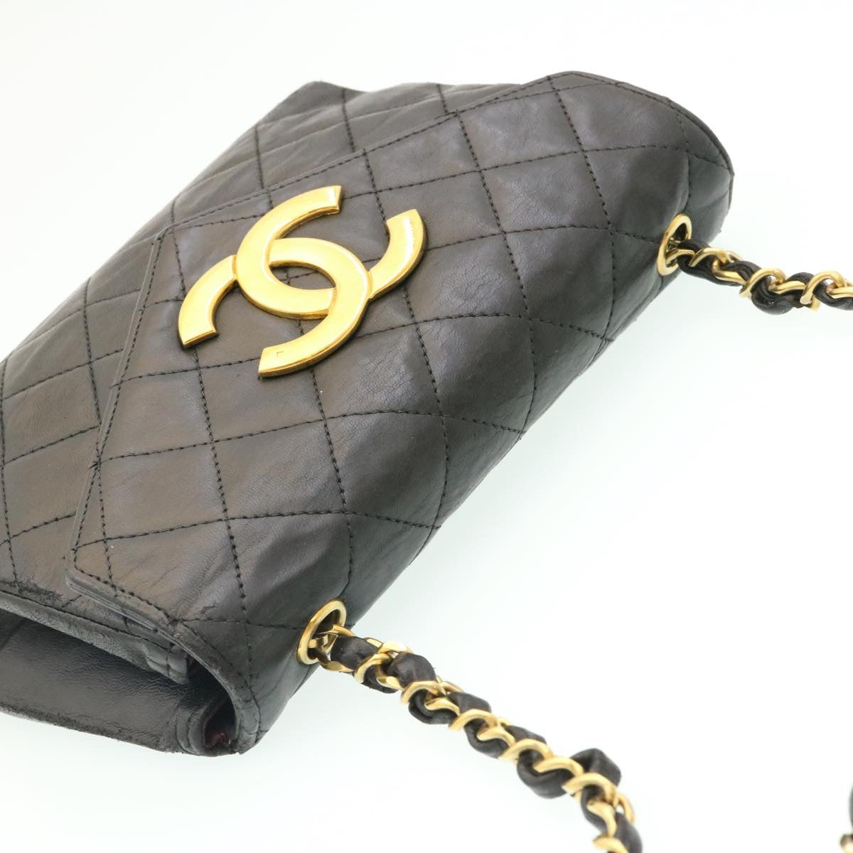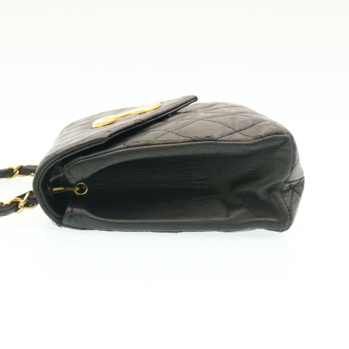 Chanel Lamb Skin Matelasse Chain Shoulder Bag Black CC Auth 25810A