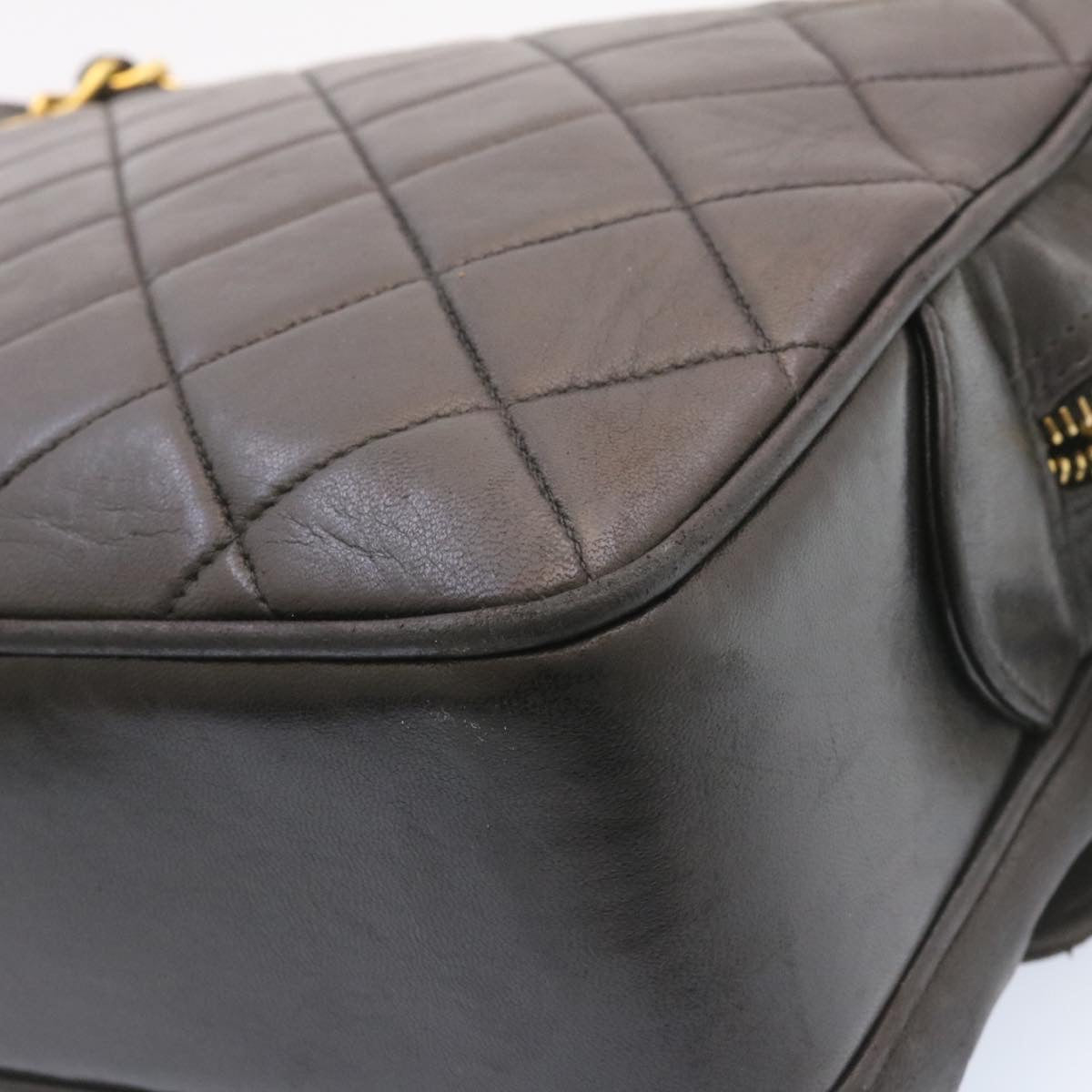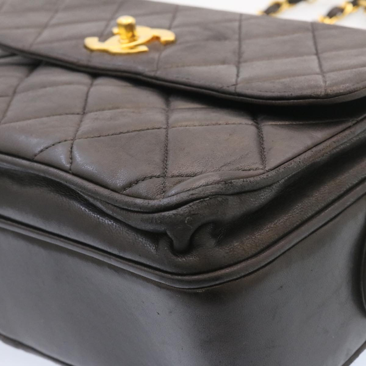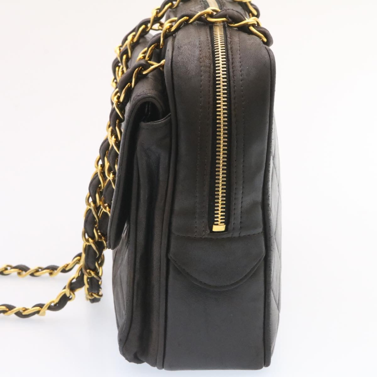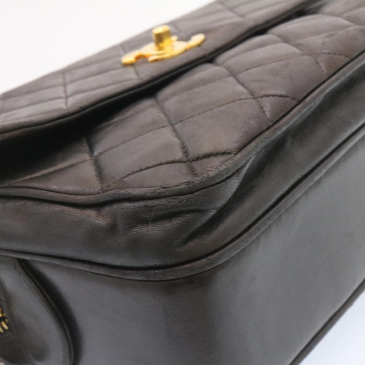 Chanel Lamb Skin Matelasse Chain Shoulder Bag Black Gold CC Auth 26128A
