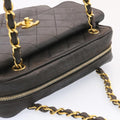 Chanel Lamb Skin Matelasse Chain Shoulder Bag Black Gold CC 26128A