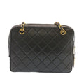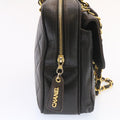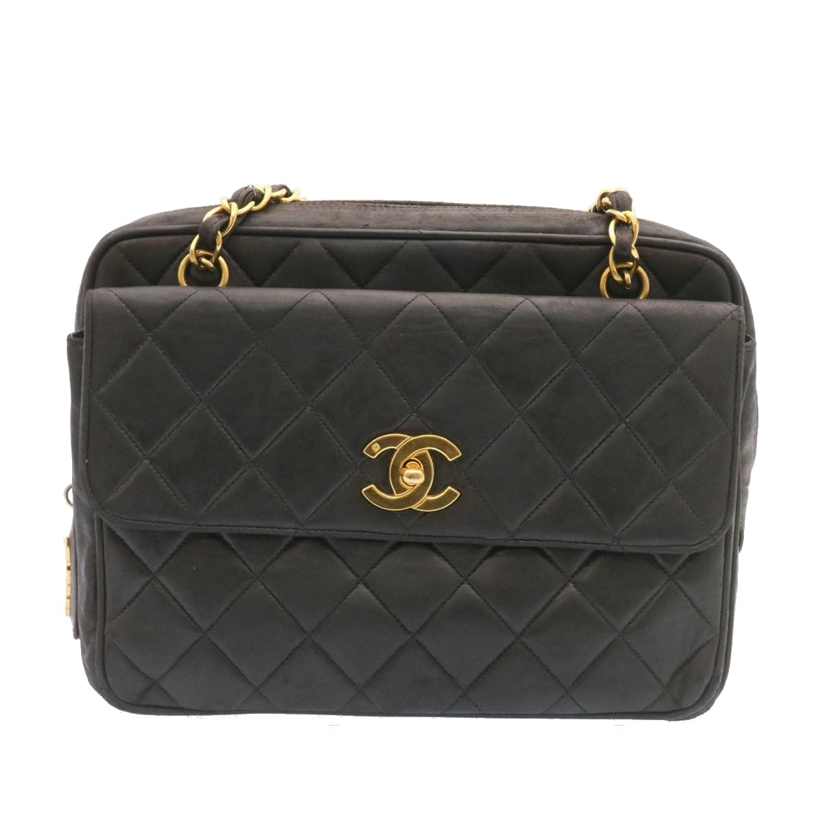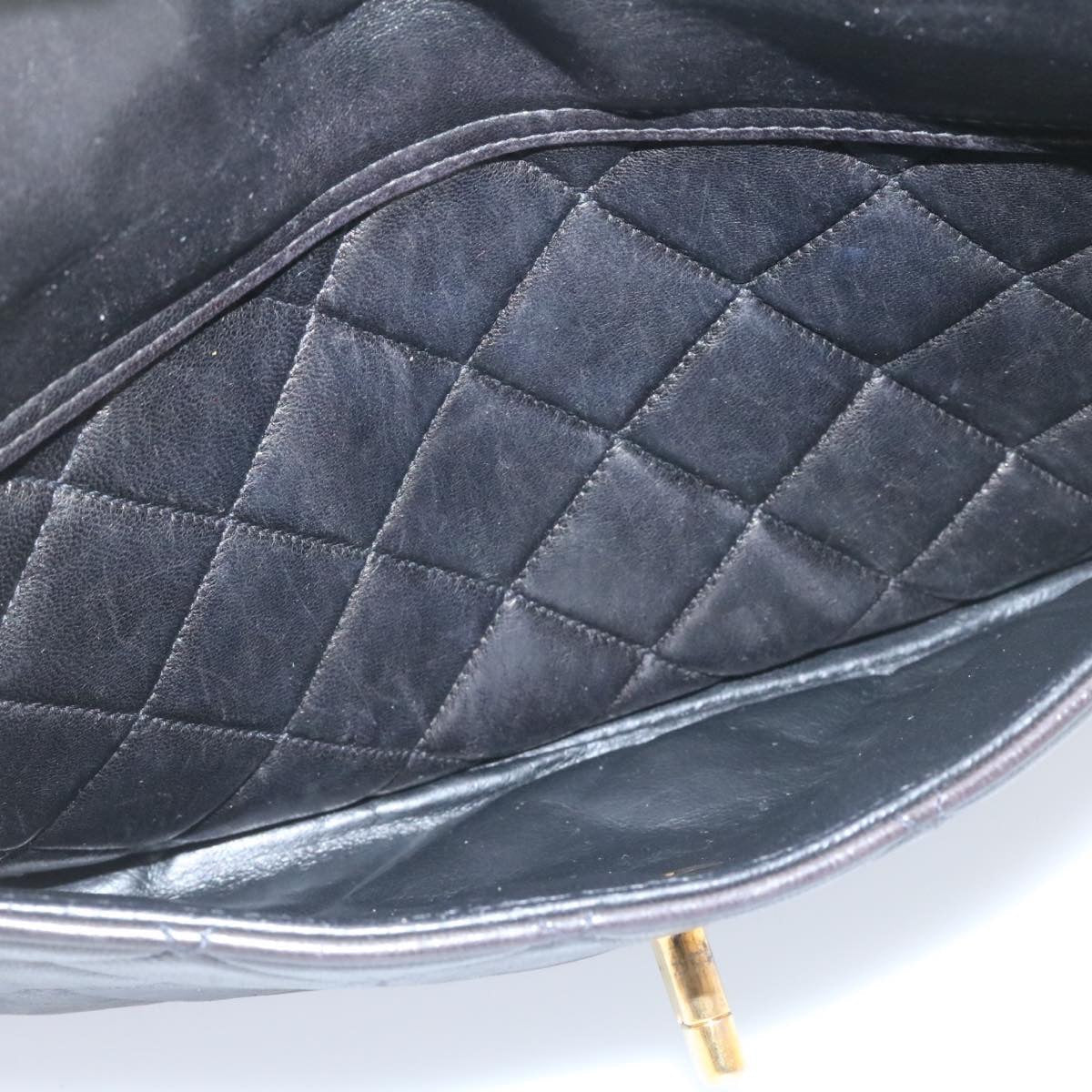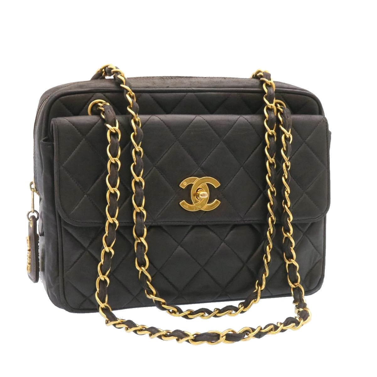 Chanel Lamb Skin Matelasse Chain Shoulder Bag Black Gold CC Auth 26128A