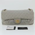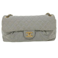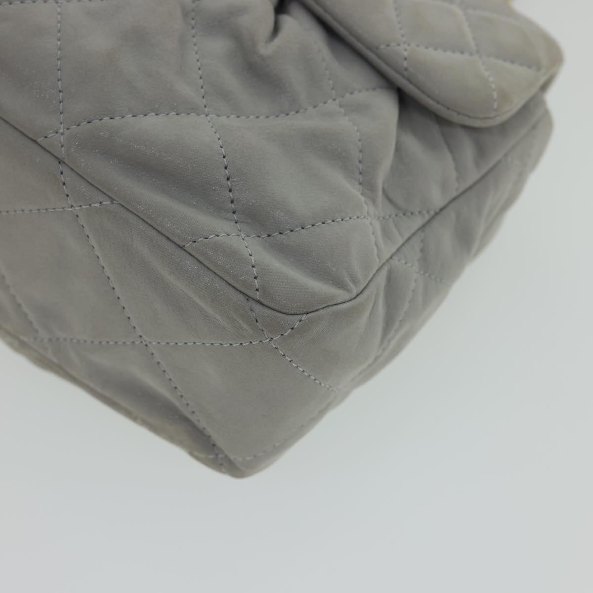 Chanel Lamb Skin Matelasse Double Chain Shoulder Bag Gray CC Auth am1097g