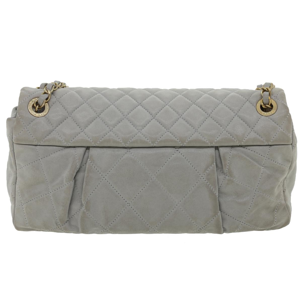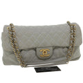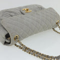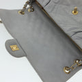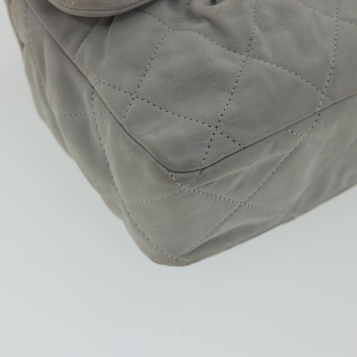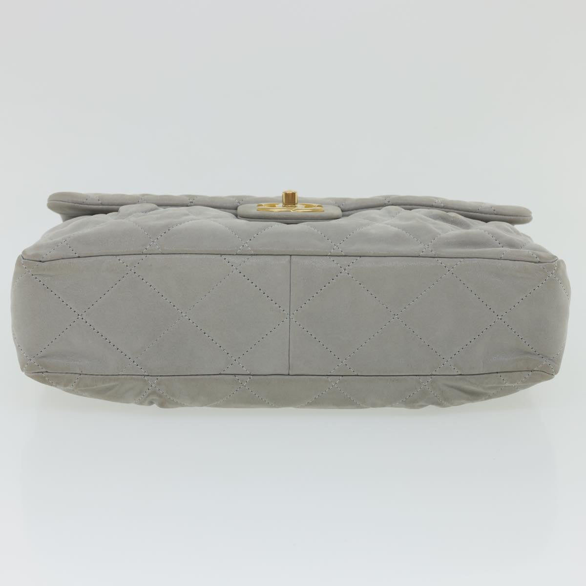 CHANEL Lamb Skin Matelasse Double Chain Shoulder Bag Gray CC Auth am1097gA