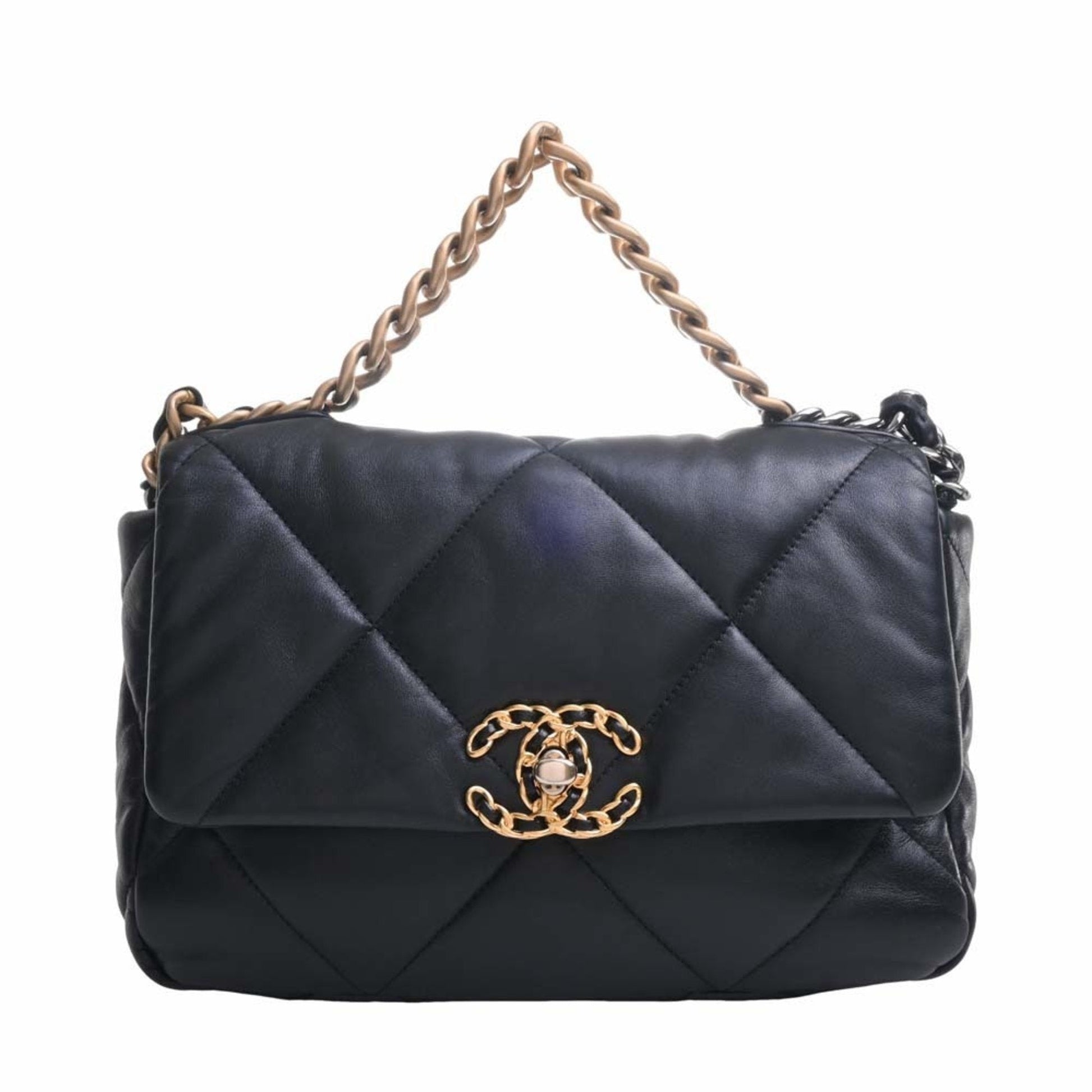 Chanel Lambskin 19 Coco Mark Chain Shoulder Bag Black Ladies