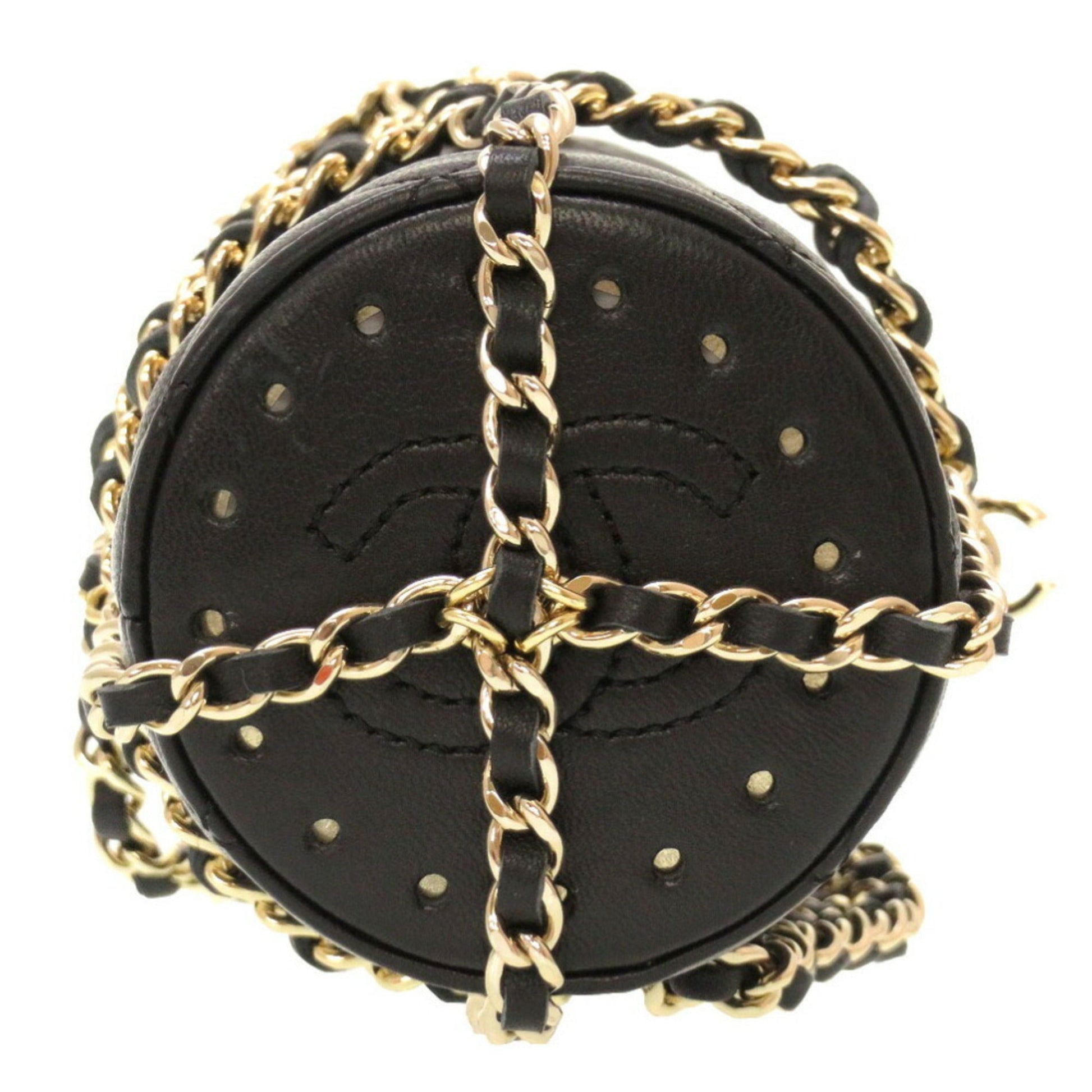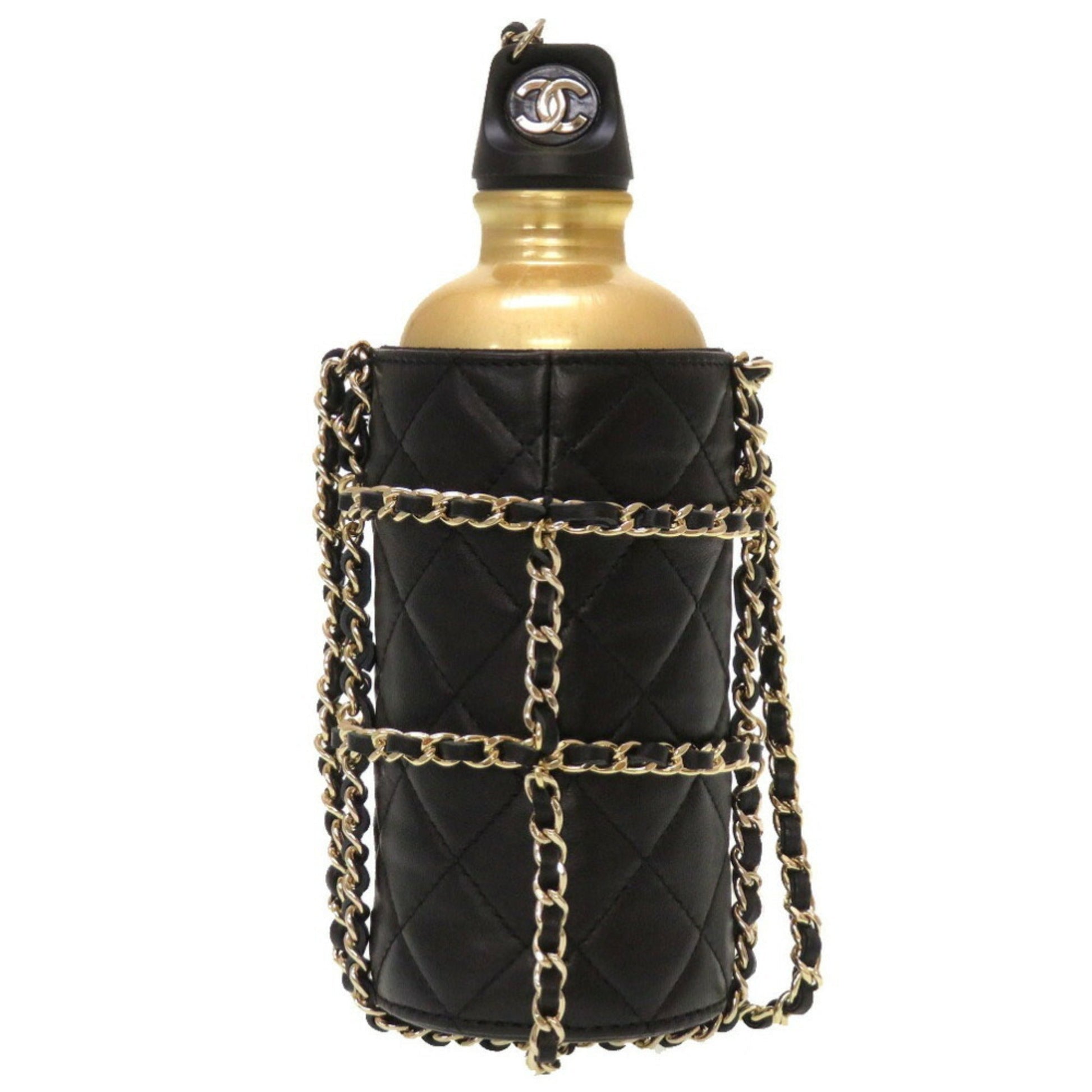 Chanel Lambskin Black 27th Flask Gold Chain Bottle Holder Matelasse Coco Mark Water Shoulder Bag