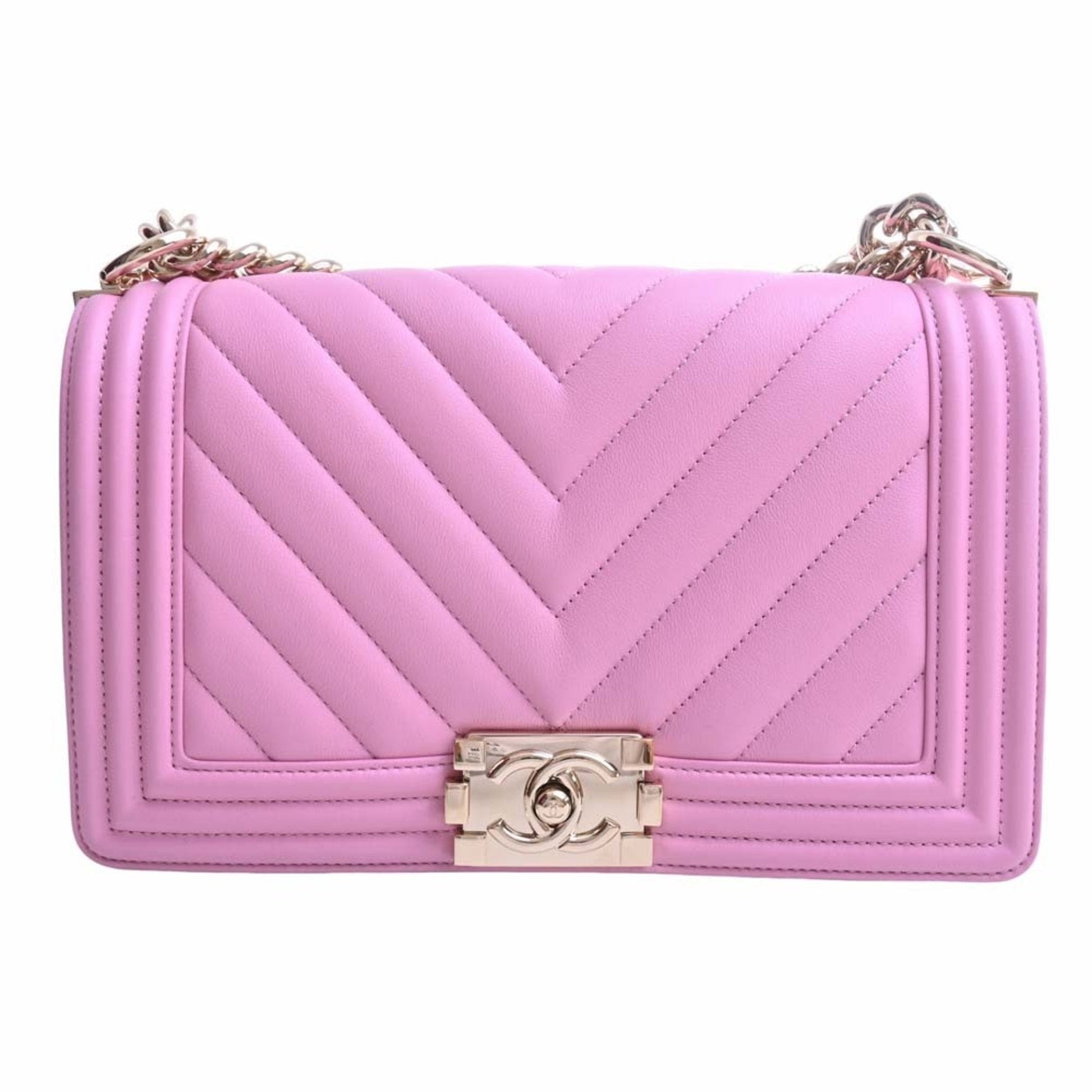Chanel Lambskin Boy Coco Mark Chain Shoulder Bag Pink Ladies