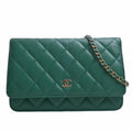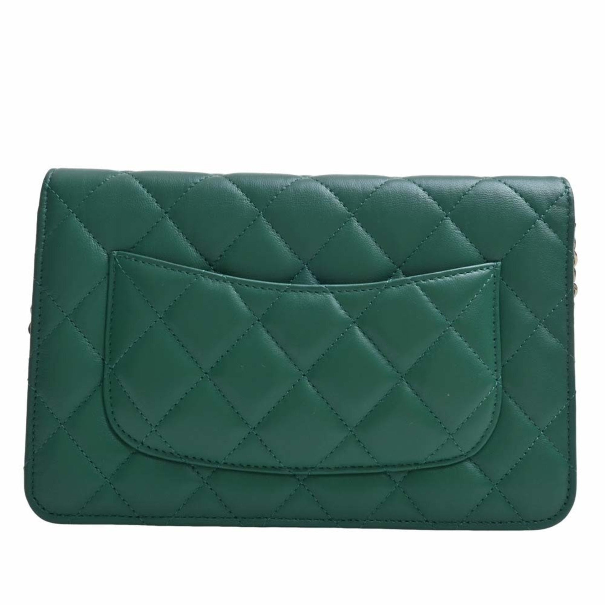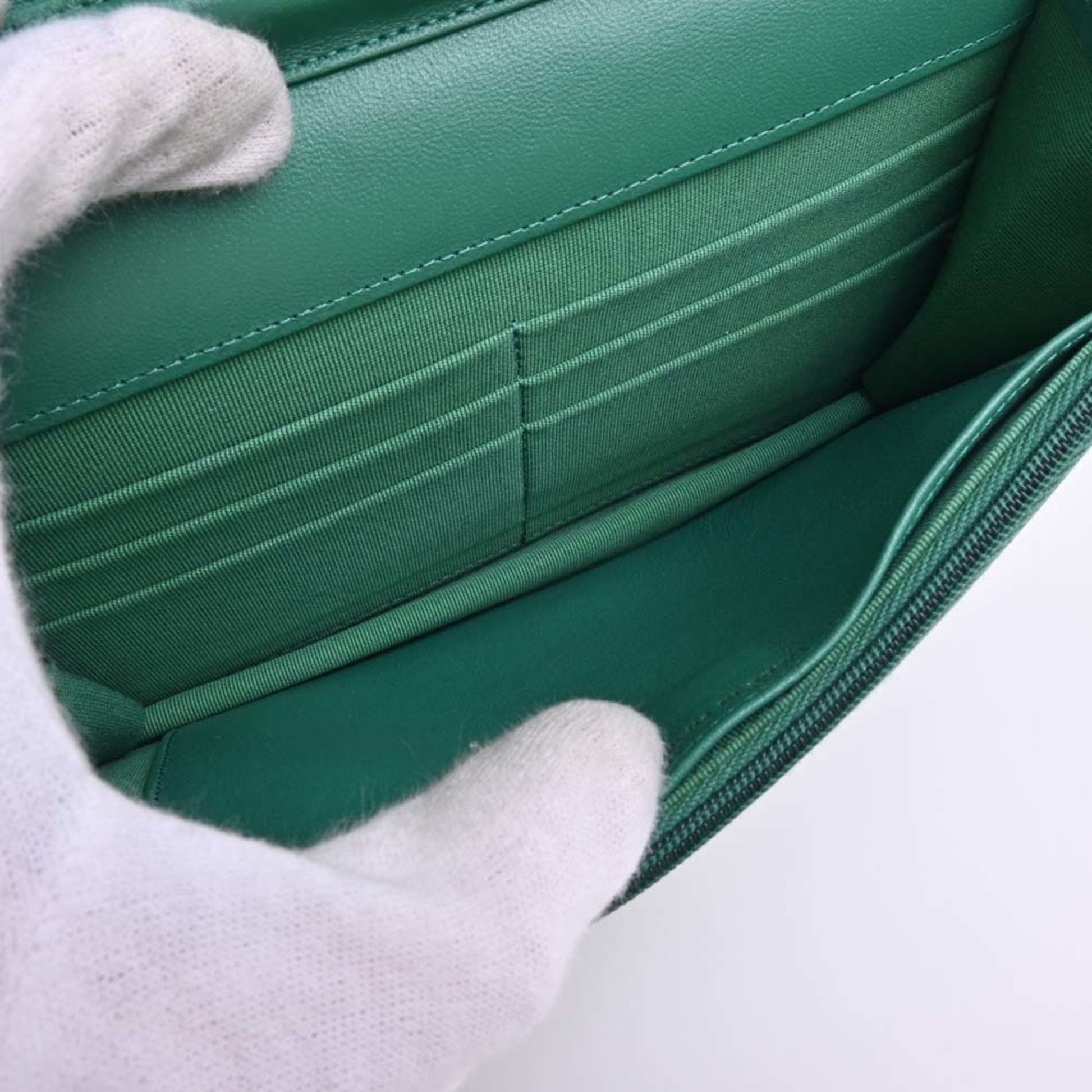Chanel Lambskin Matelasse Coco Mark Chain Shoulder Long Wallet Green Ladies