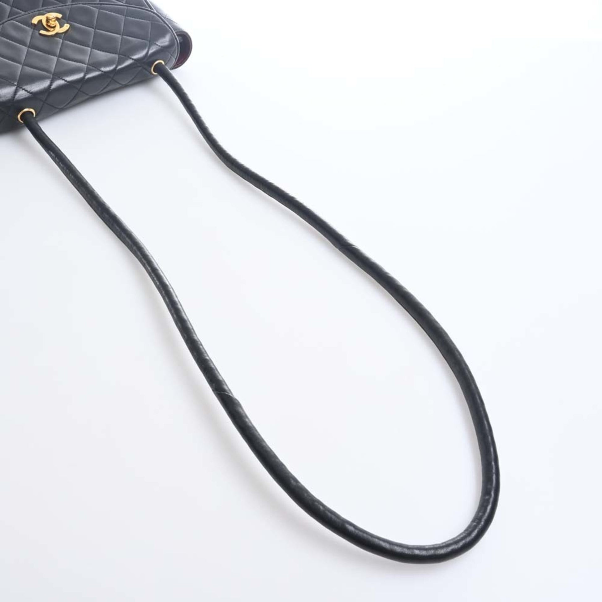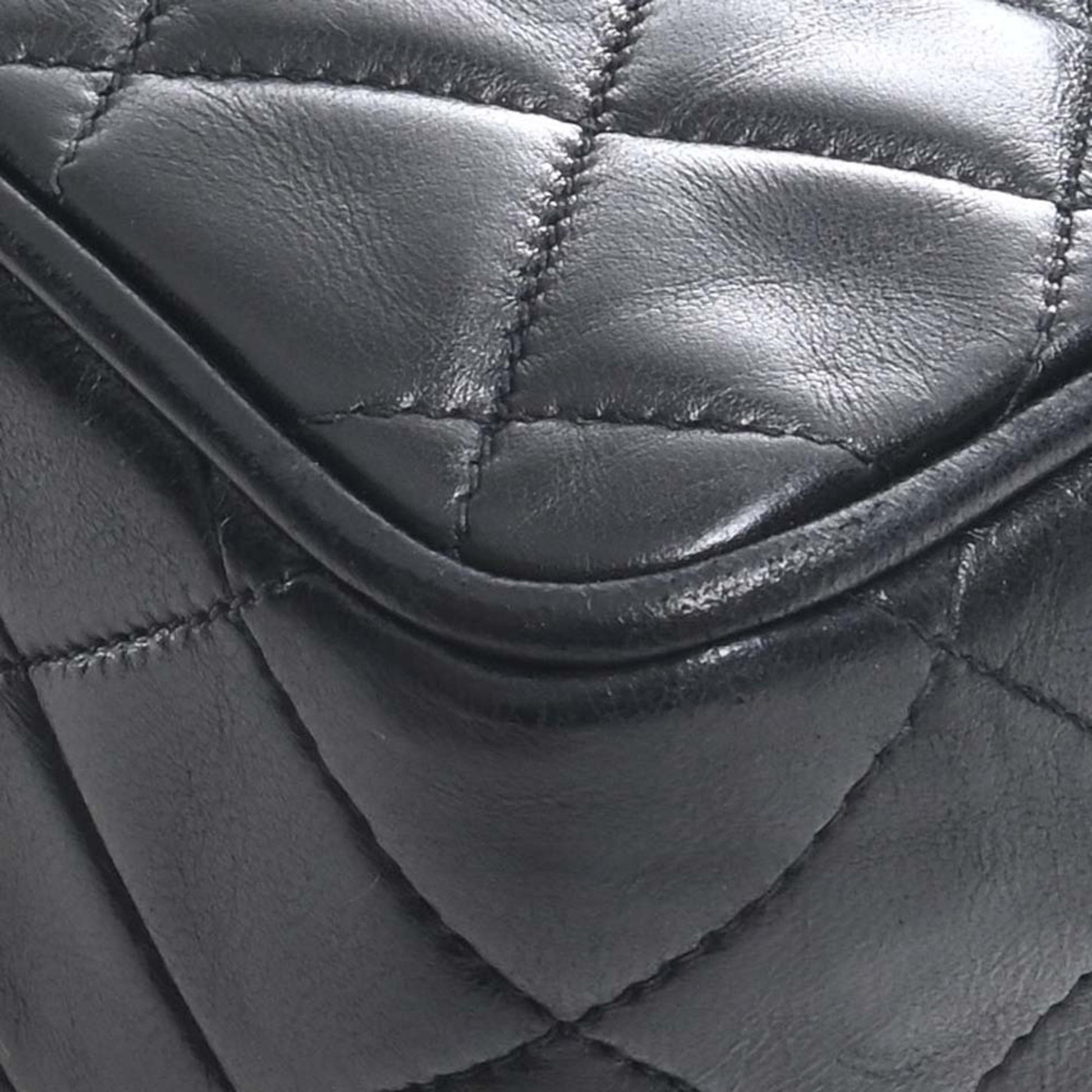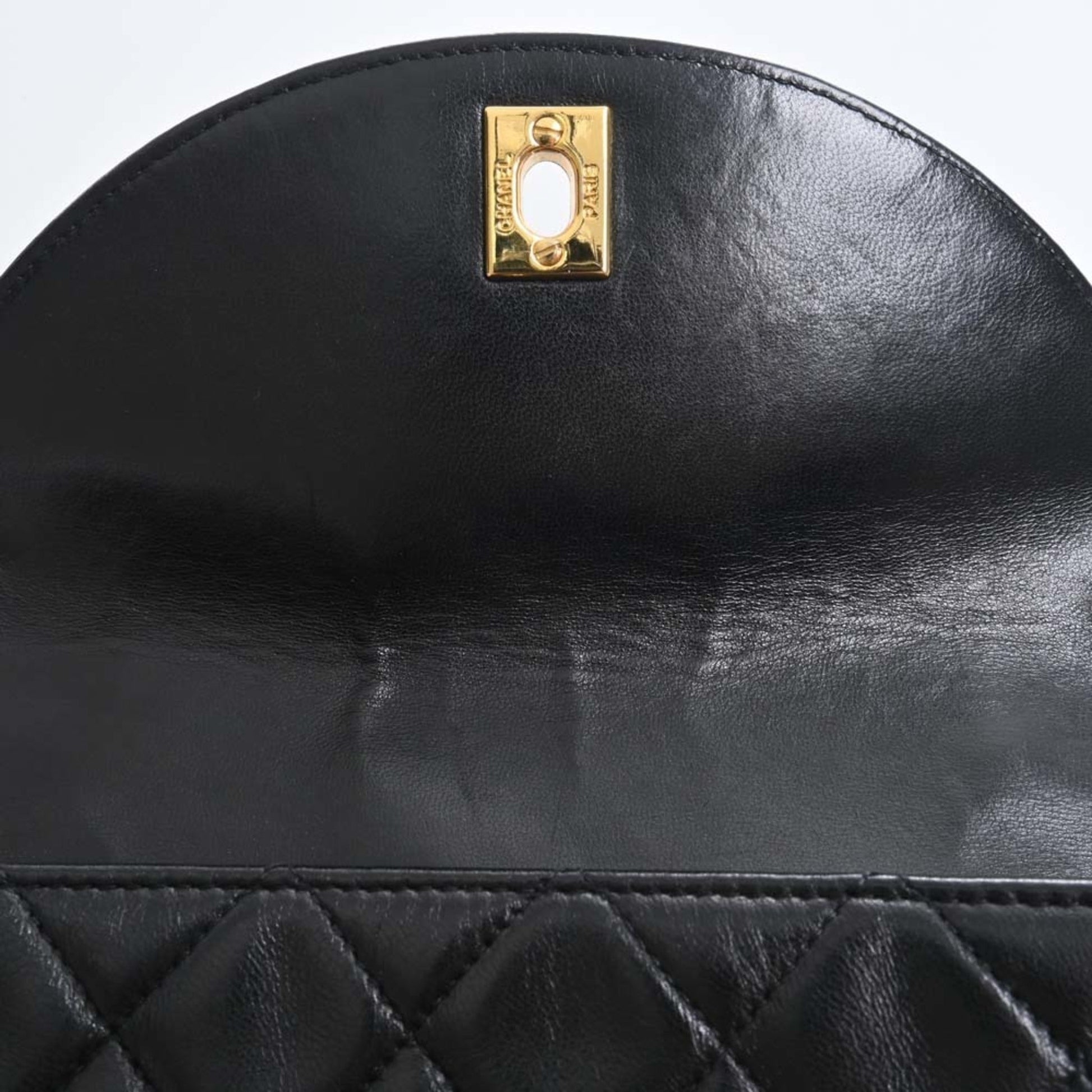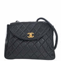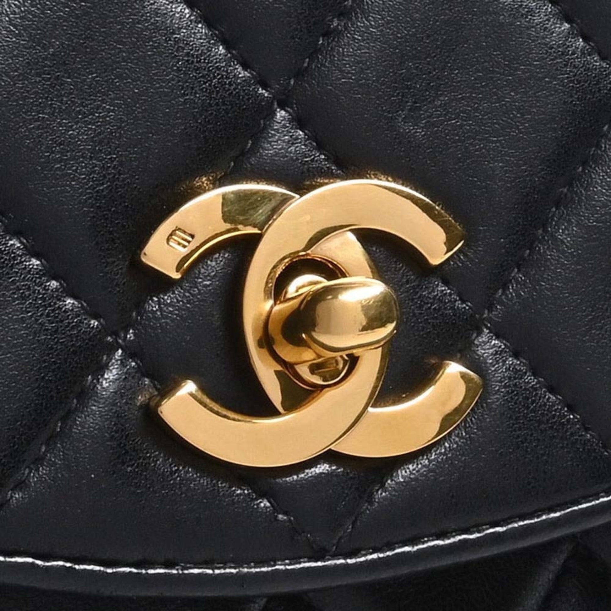 Chanel Lambskin Matelasse Coco Mark Turnlock Shoulder Bag Black Ladies