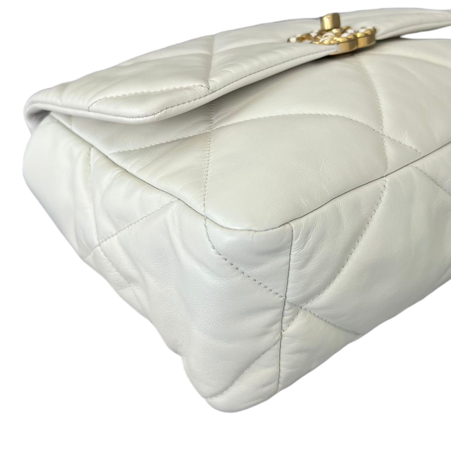 Lambskin Quilted Large Chanel 19 Flap White MHW