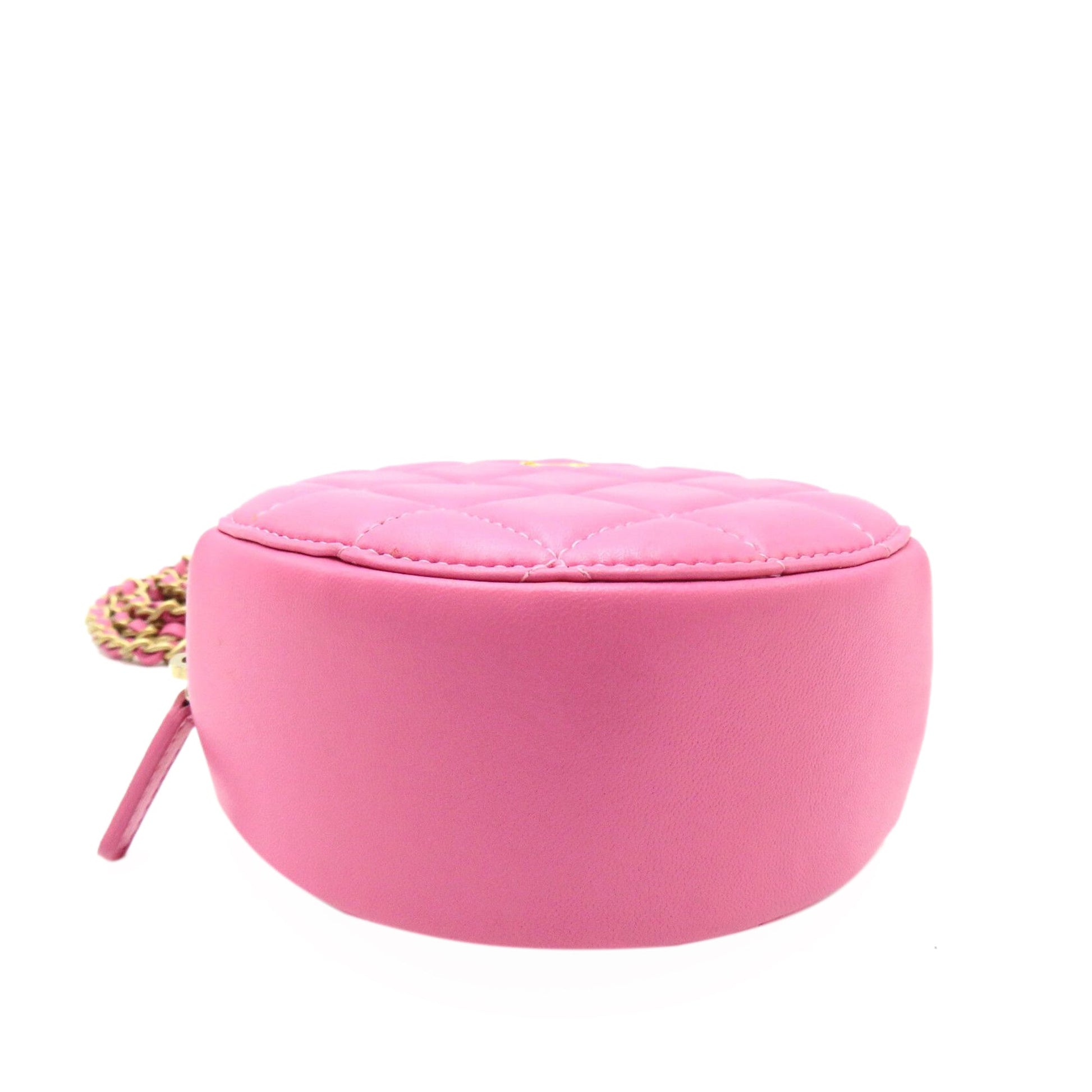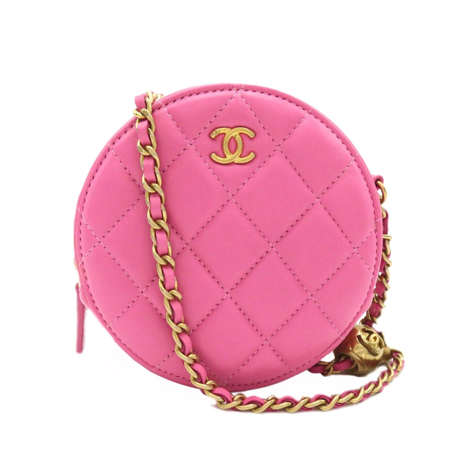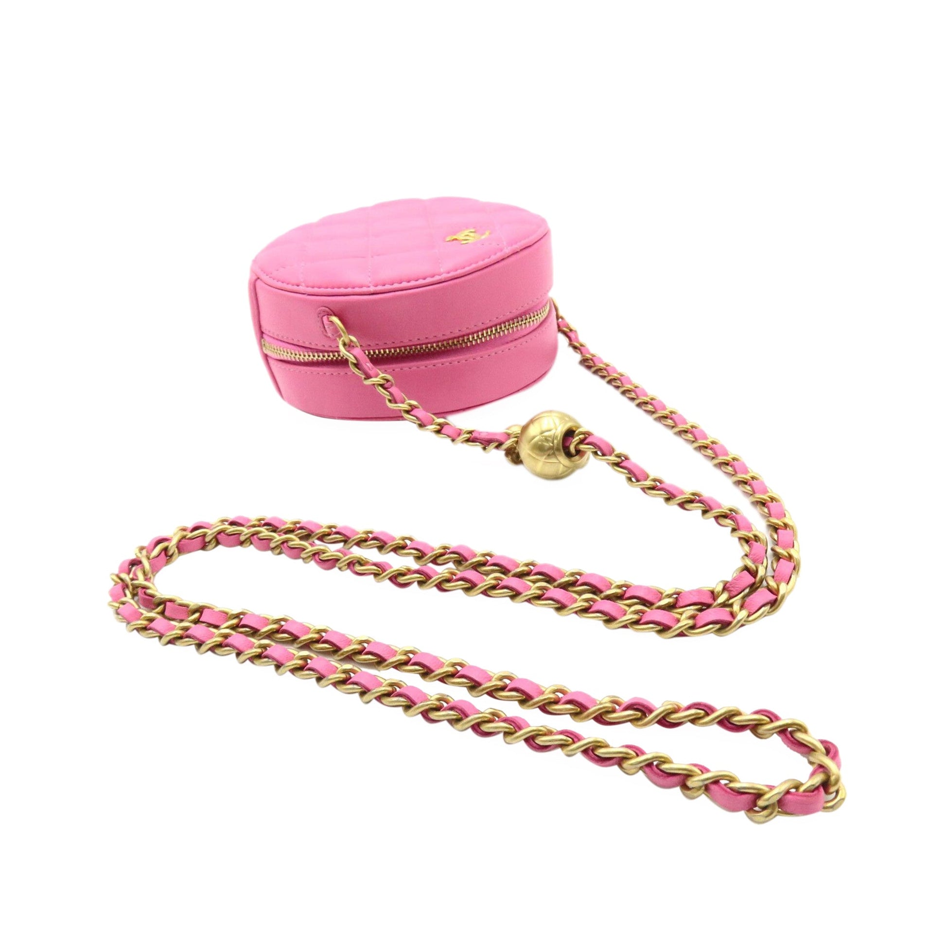 The Round As Earth features a quilted leather body, a leather woven chain strap, and a top zip closure. Comes with .