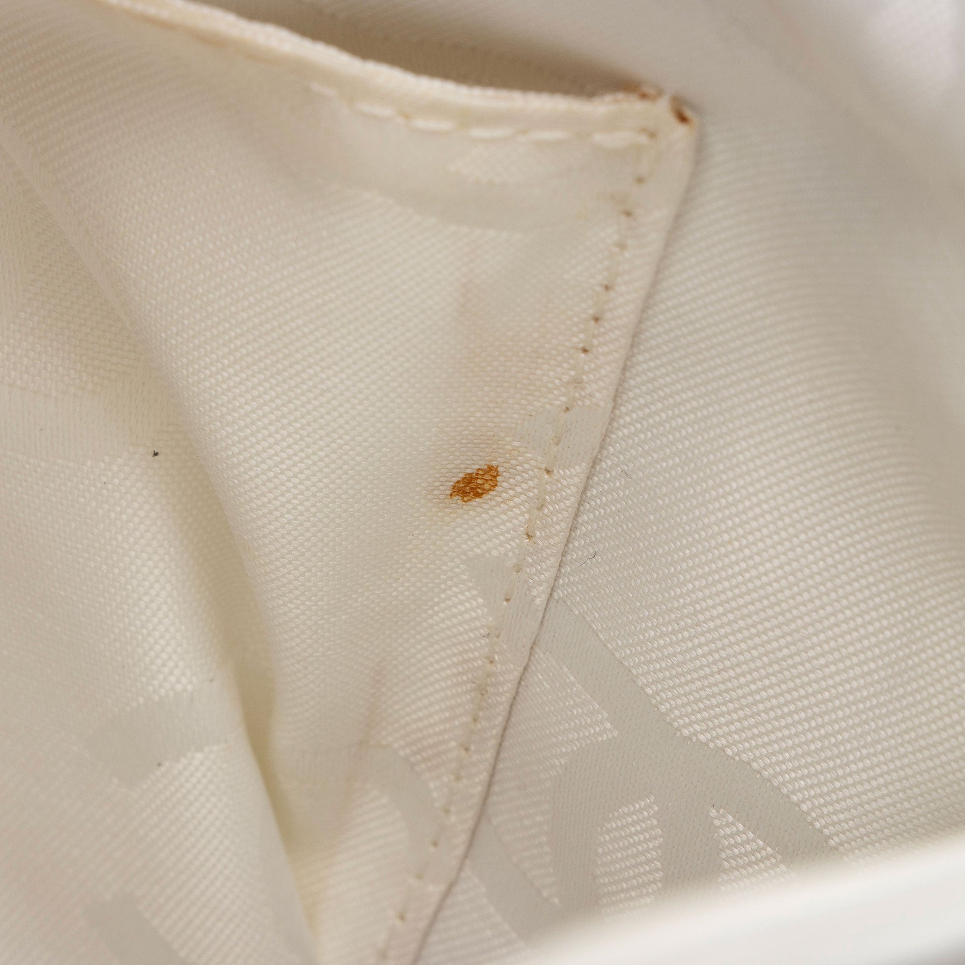 Condition Notes: Light creasing, marks, and darkening throughout exterior. Minor marks throughout handles. Light marks to exterior bottom corners. Light surface scratches to hardware. Light marks throughout interior. Visible glue marks to interior pockets.