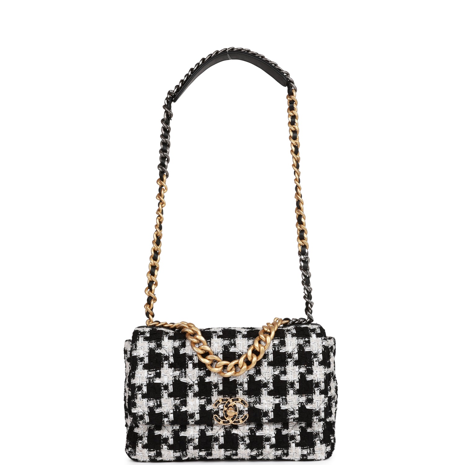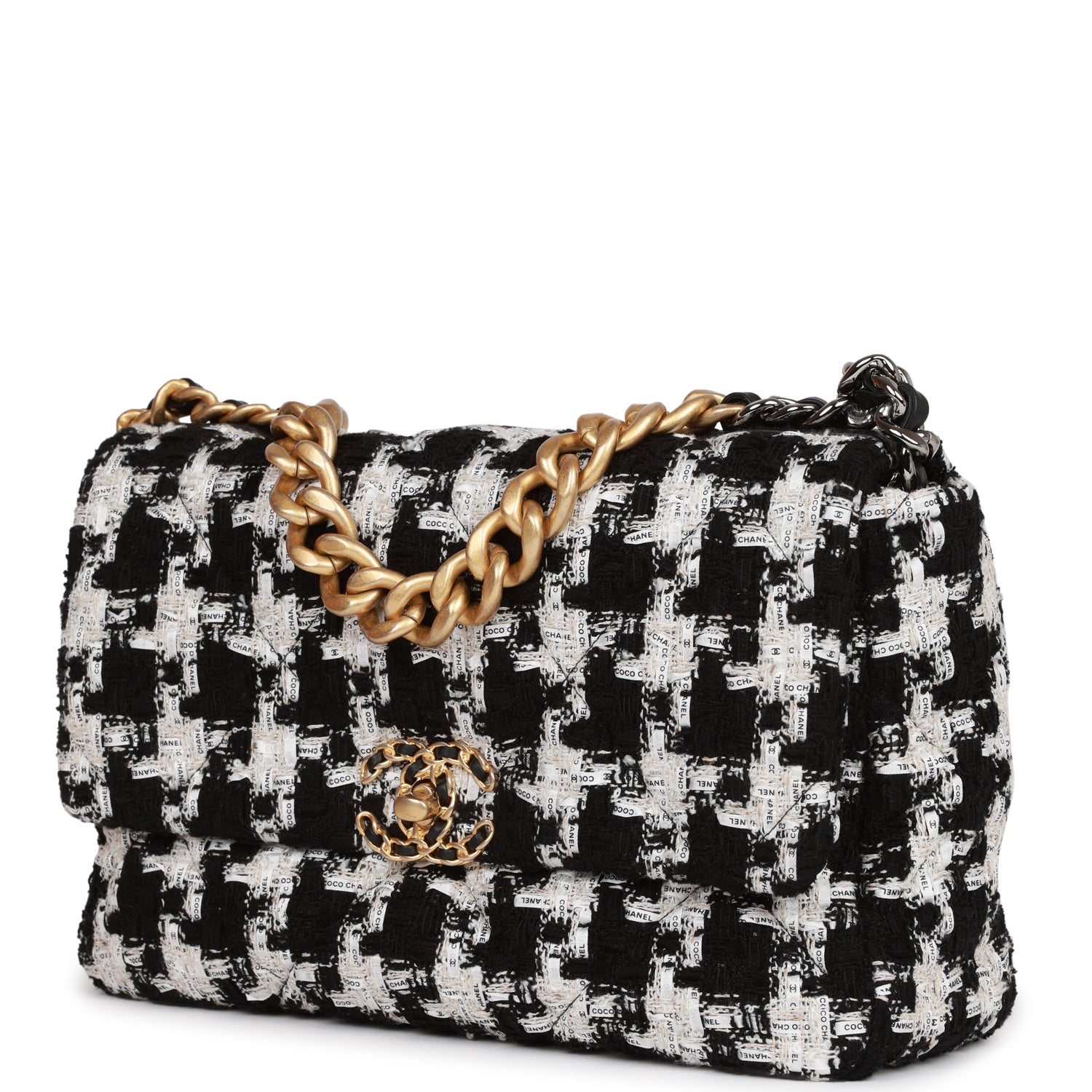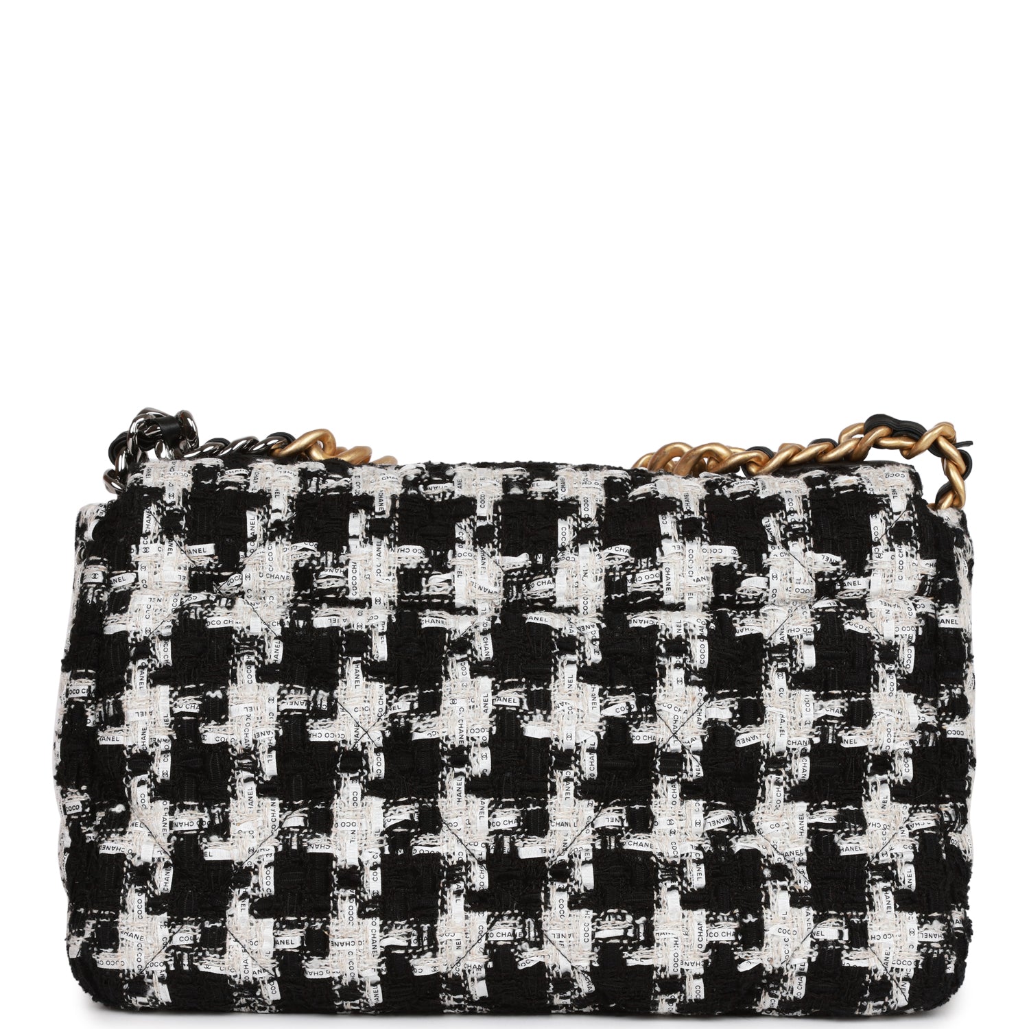 Chanel Large 19 Flap Bag Black and White Tweed Mixed Hardware