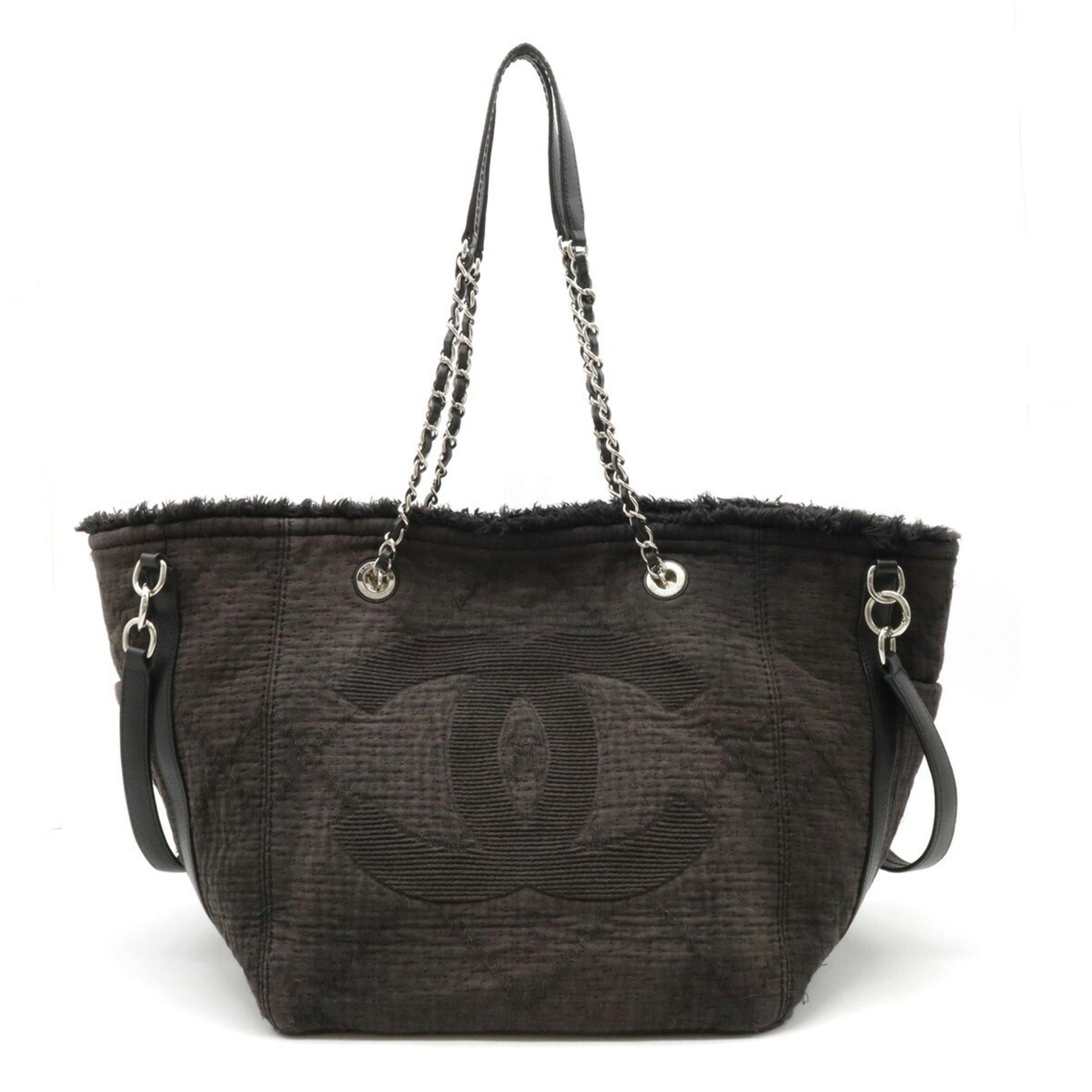 Chanel Large Bag Coco Mark Tote Chain Shoulder Cotton Leather Black A57168