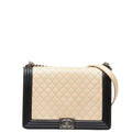 Chanel Large Bicolor Le Boy Flap Bag Leather Shoulder Bag in Good condition