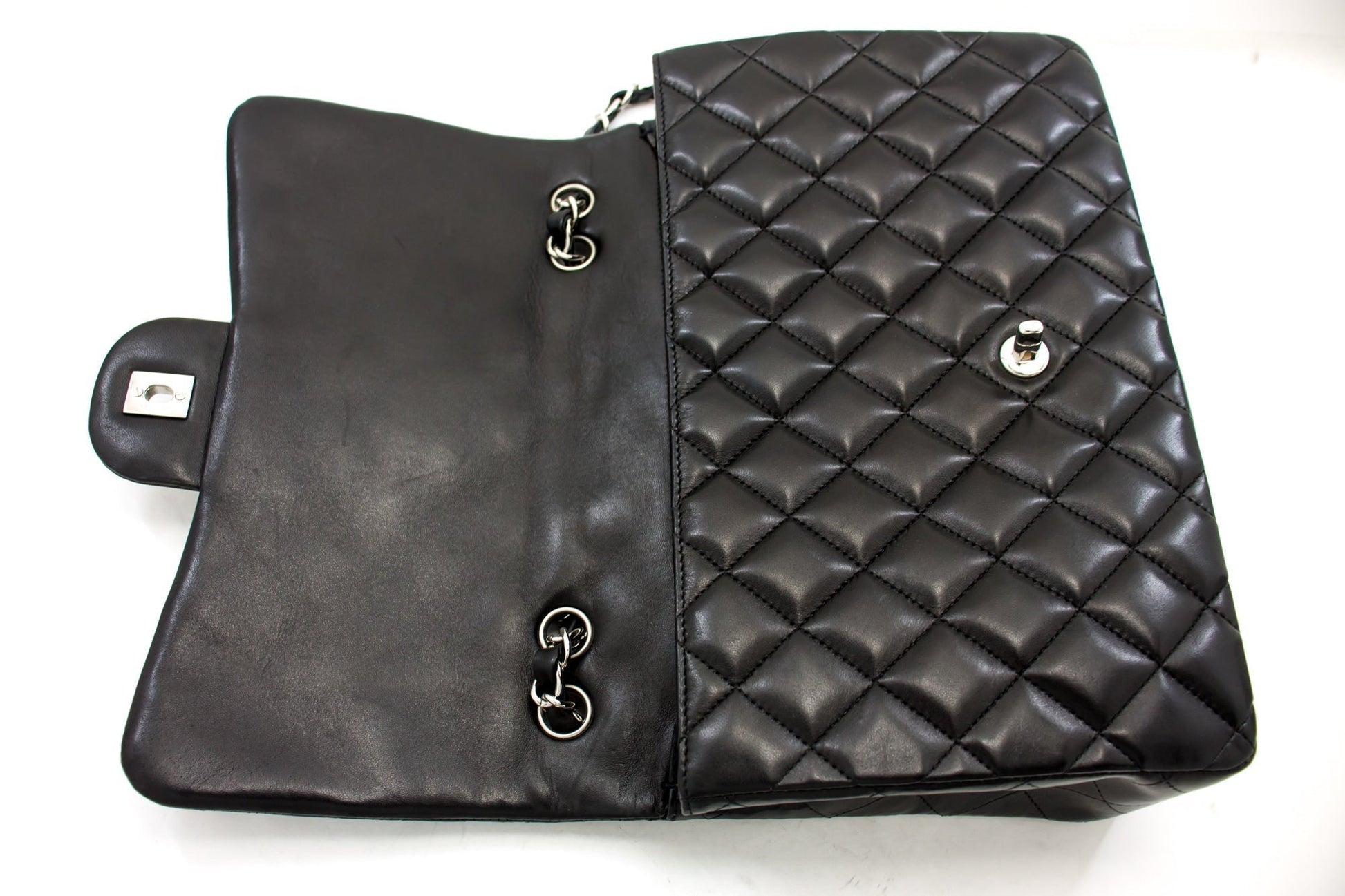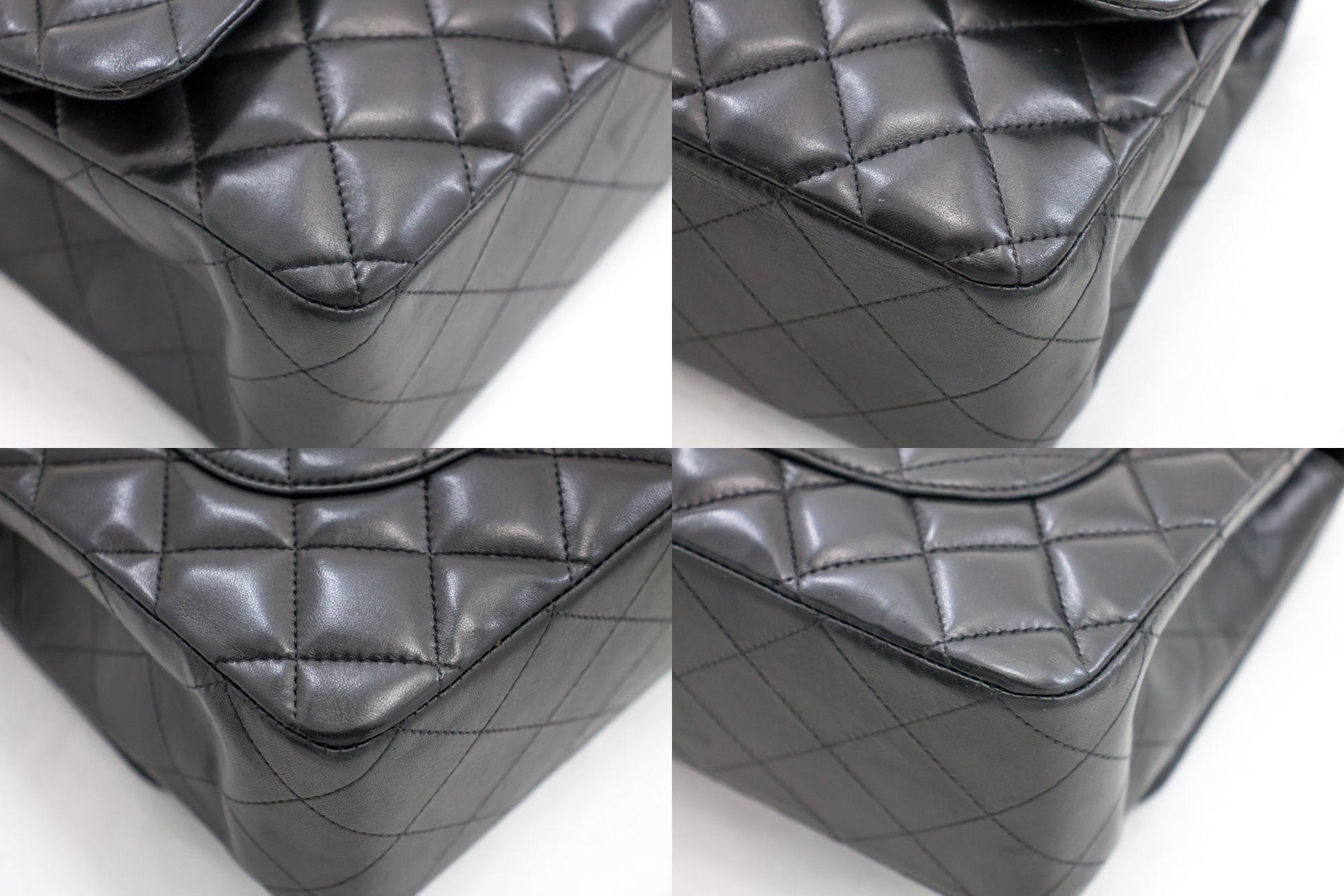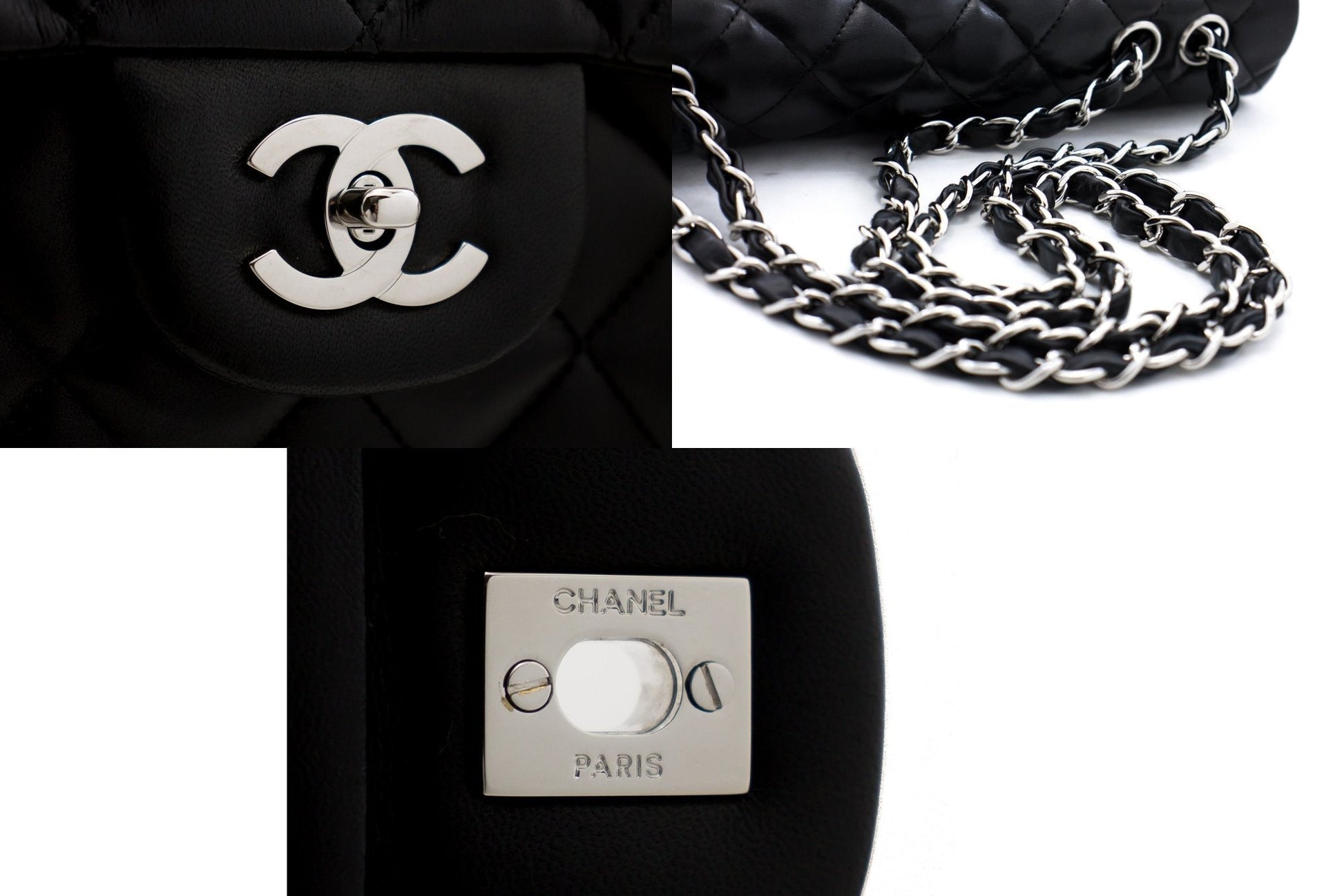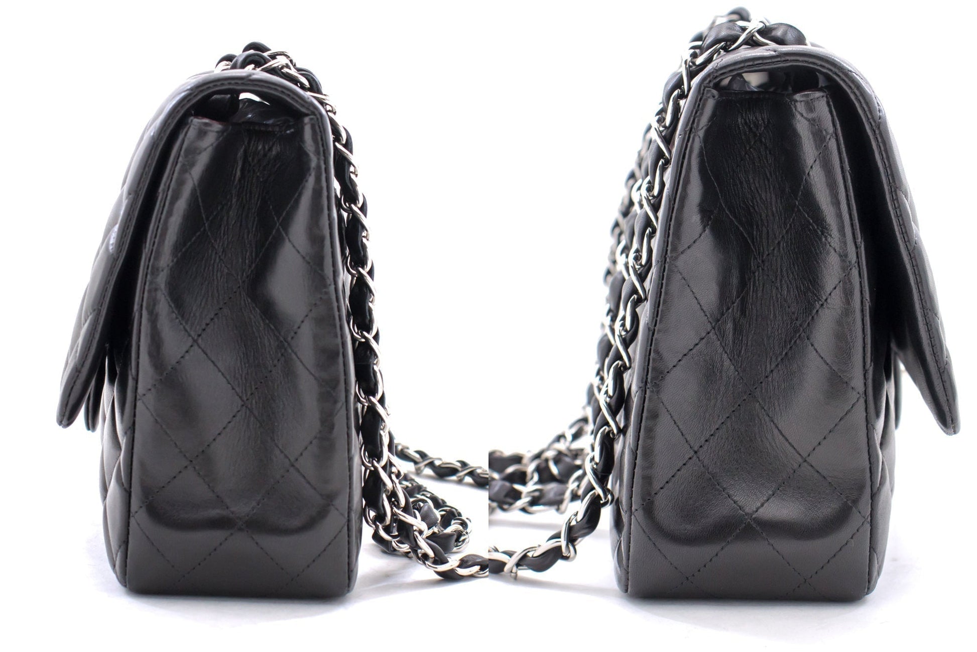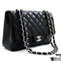 Chanel Large Classic Handbag 11"Chain Shoulder Bag Flap Black Lamb h44