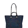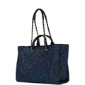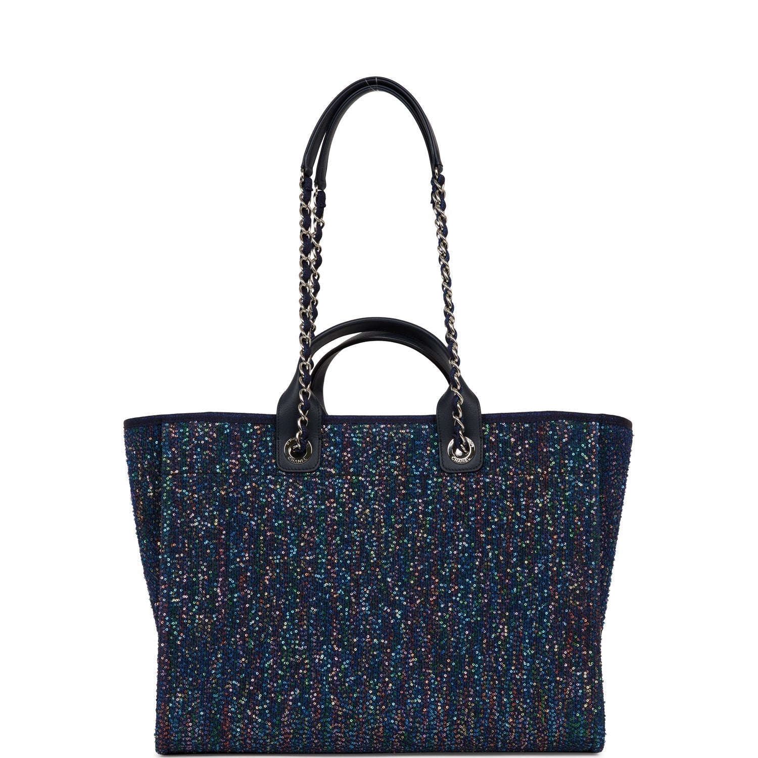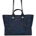 Chanel Large Deauville Shopping Tote Blue Sequin Boucle Silver Hardware