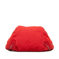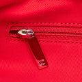 This satchel features a canvas body, leather woven chain straps, flat leather handles, an open top with magnetic snap closure, and interior zip and slip pockets. Comes with ity card.
