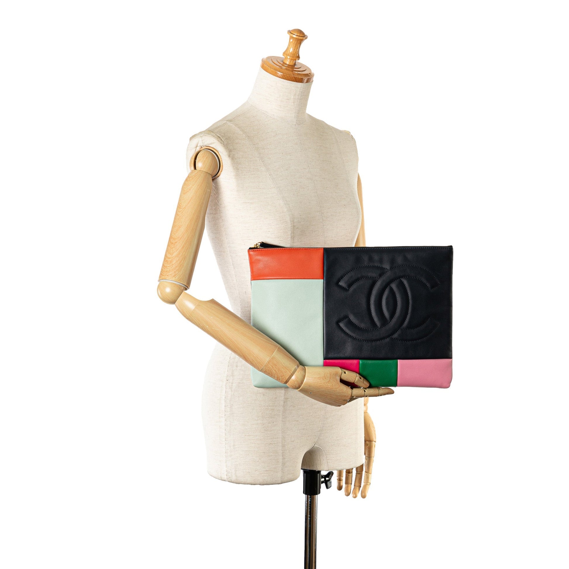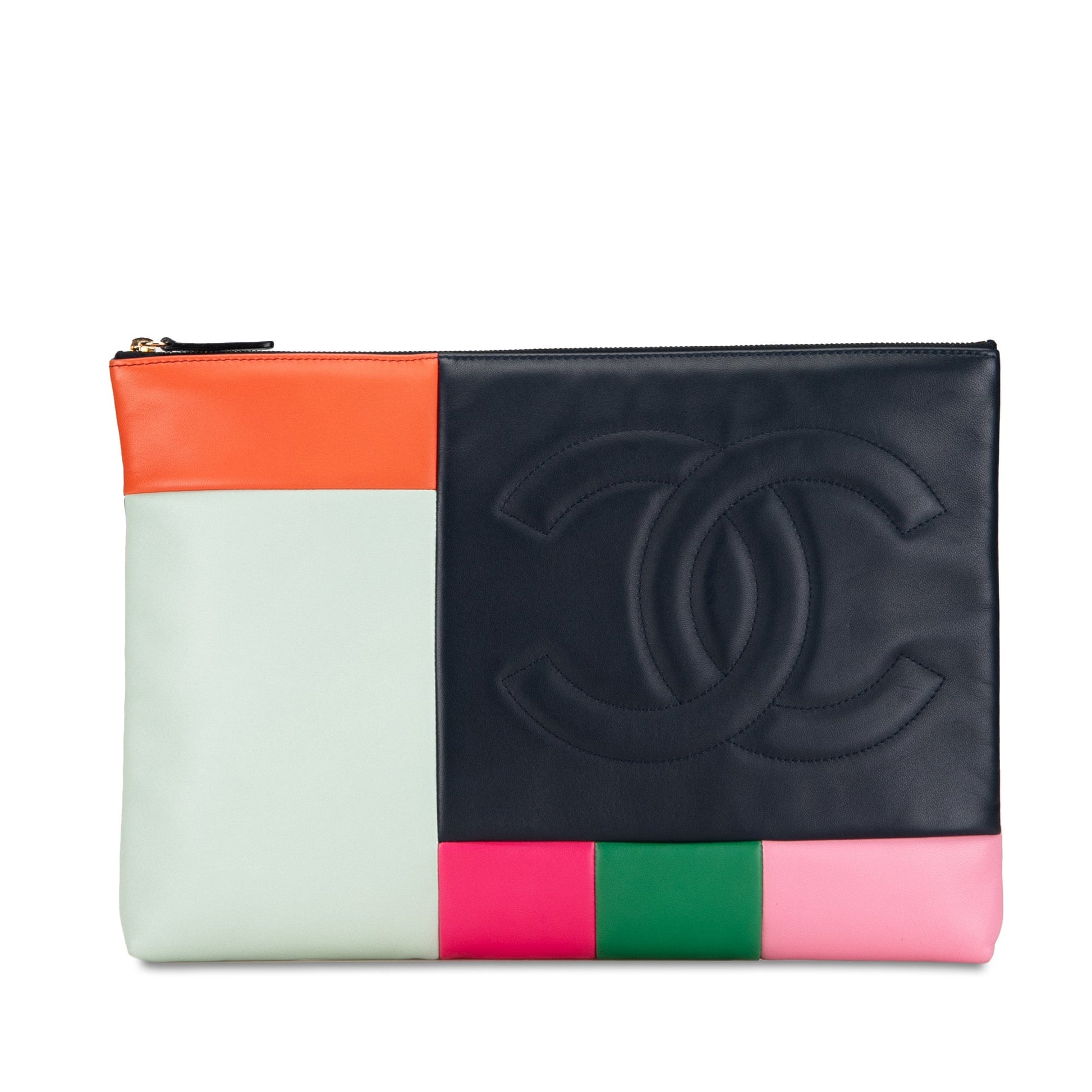 Chanel Large Lambskin Colorblock Patchwork O Case Clutch Bag