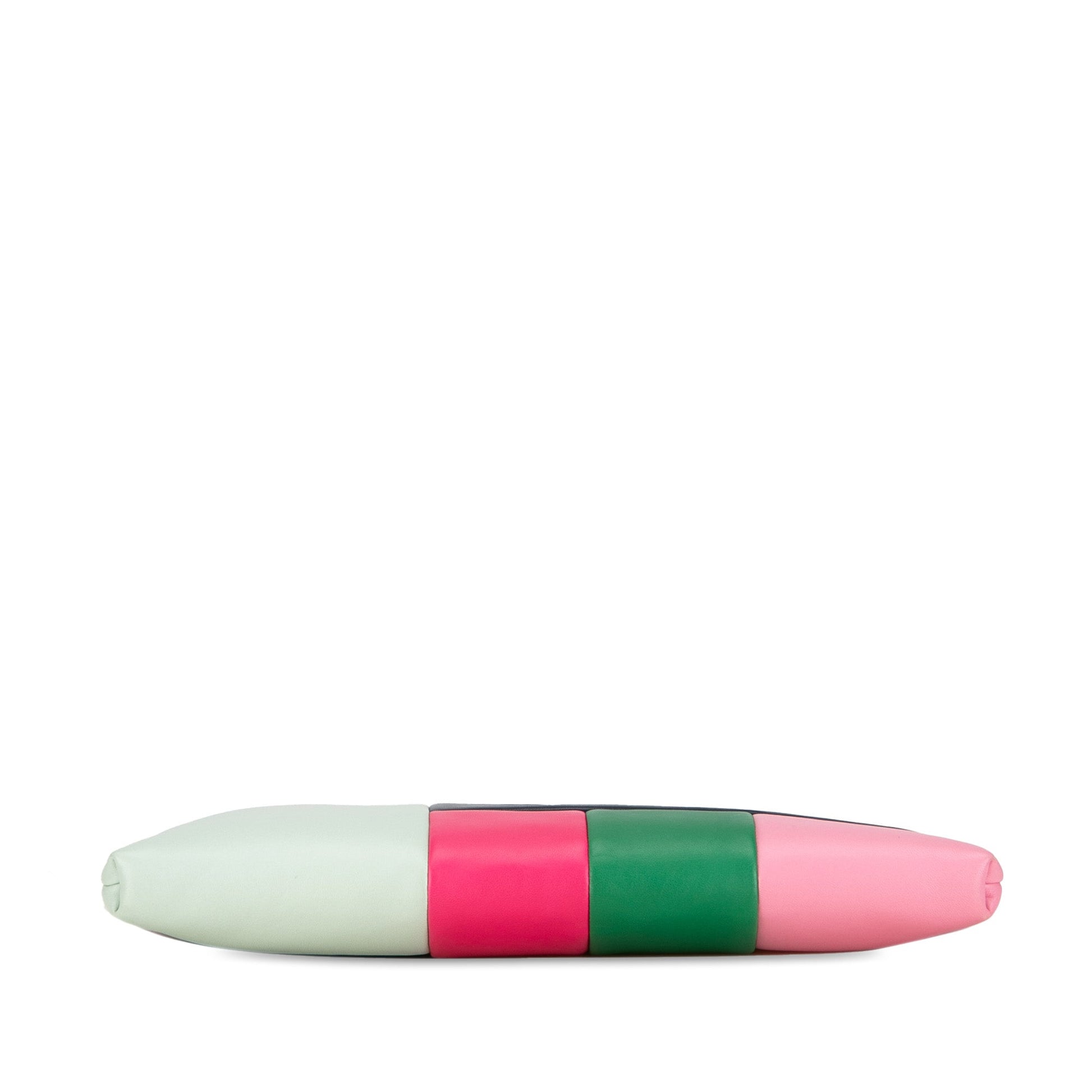 This clutch Bag features a patchwork lambskin leather body, and a top zip closure. Comes with ity card, box and dust Bag.