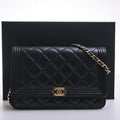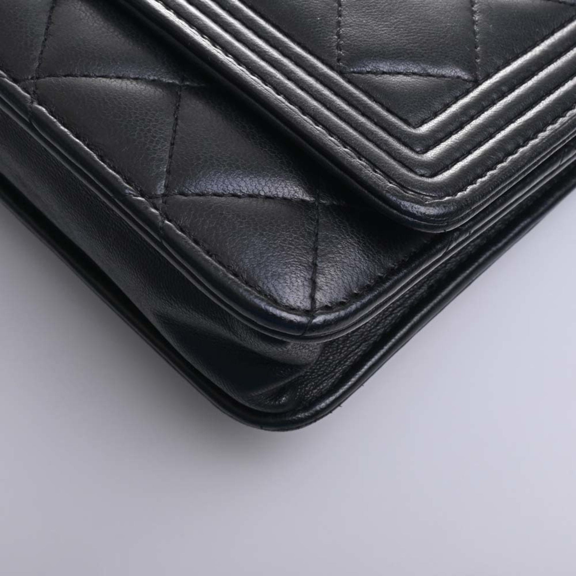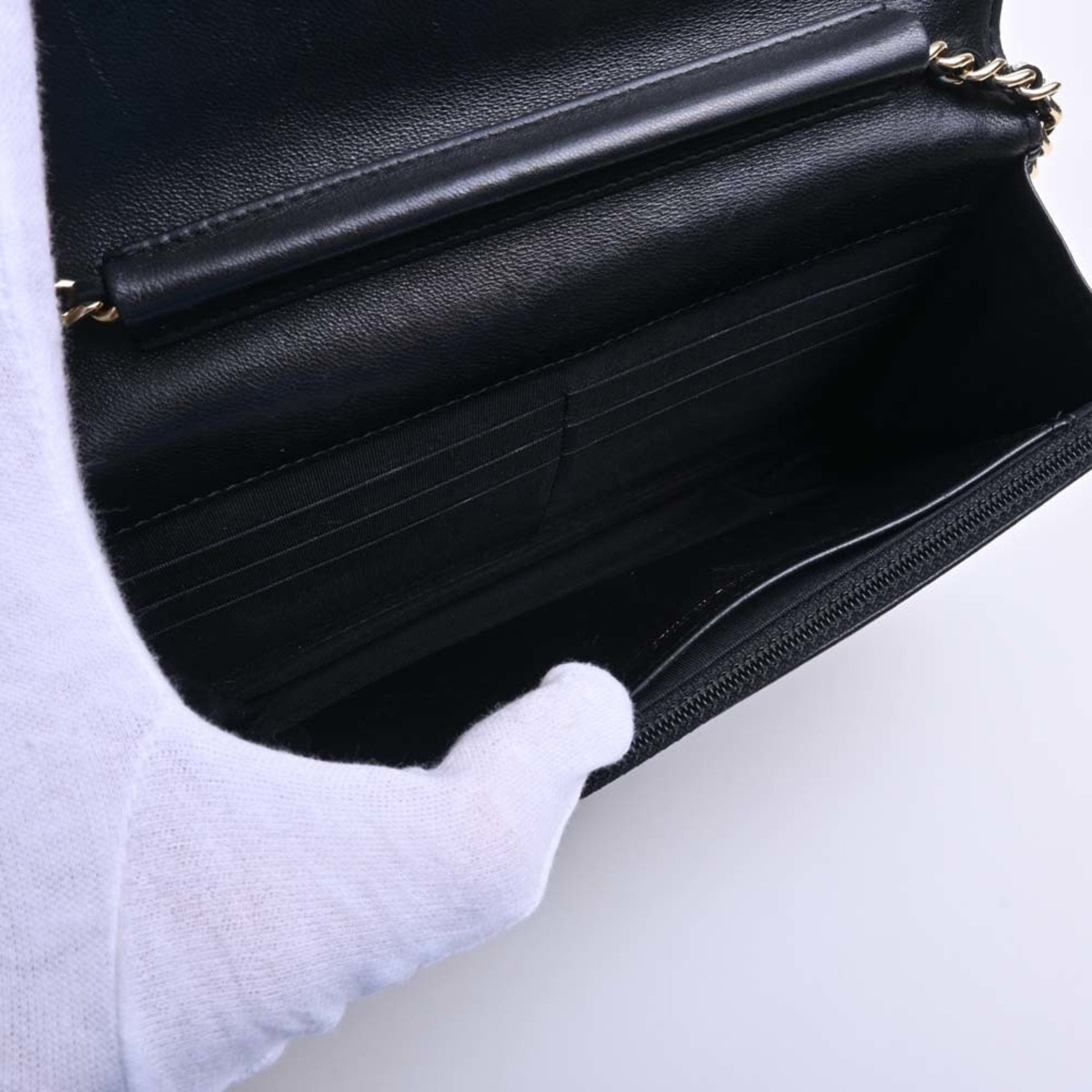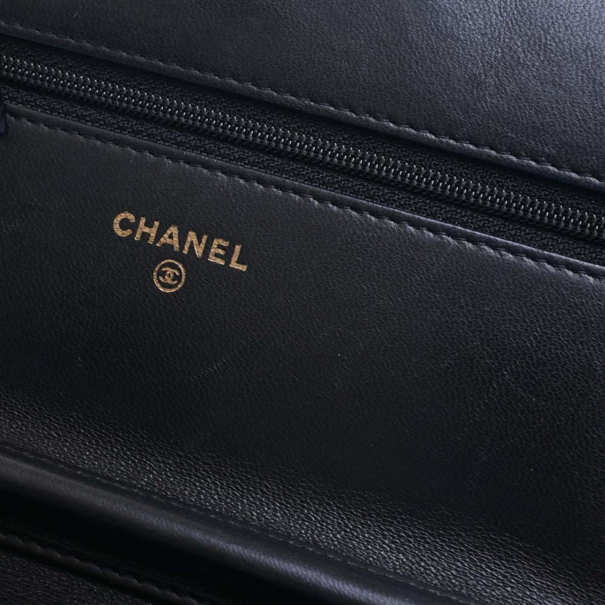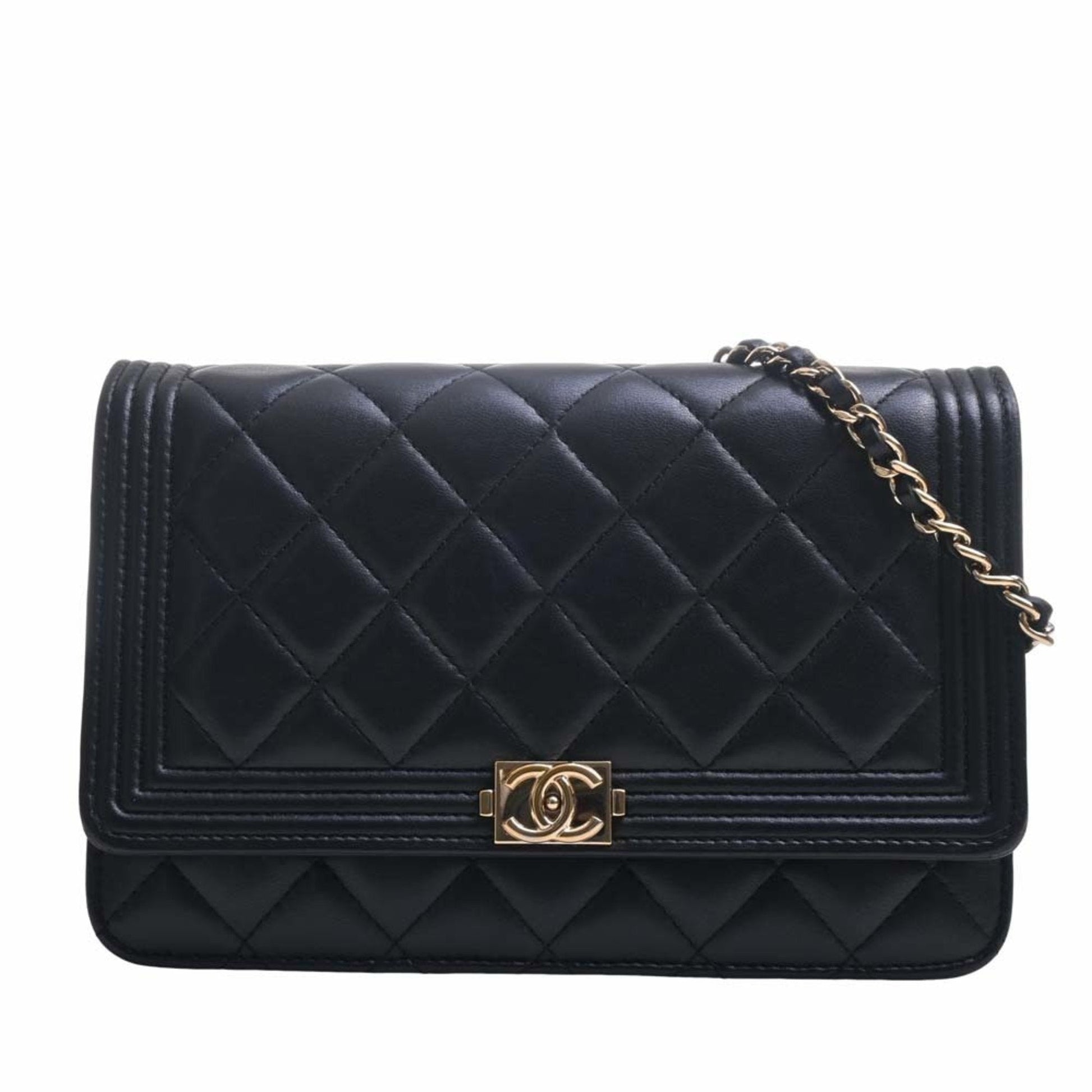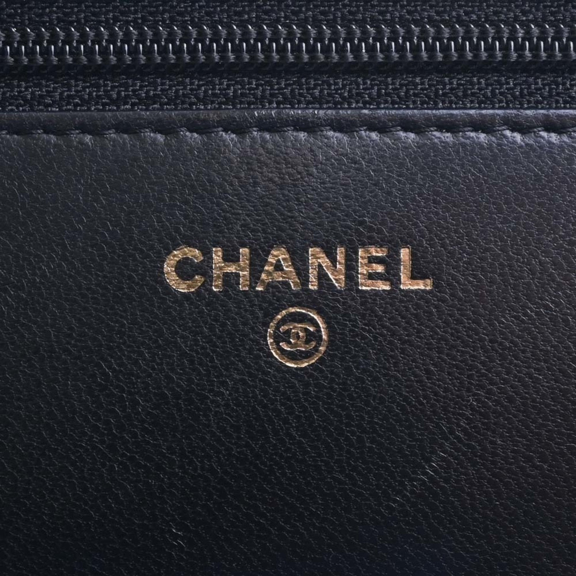 Chanel Leather Boy Chanel Coco Mark Chain Shoulder Long Wallet Black Ladies
