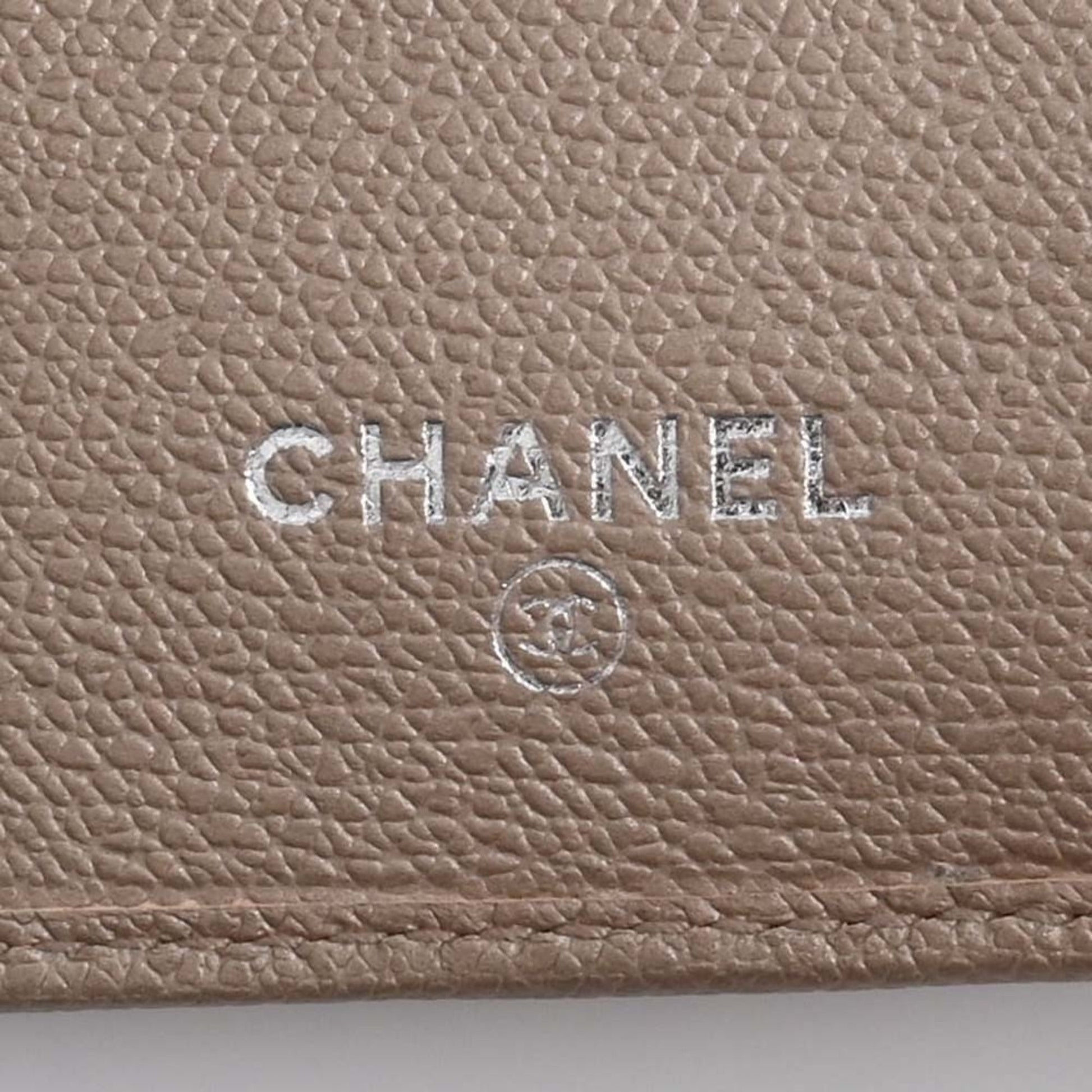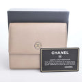 Chanel Leather Coco Button Trifold Wallet Beige Ladies