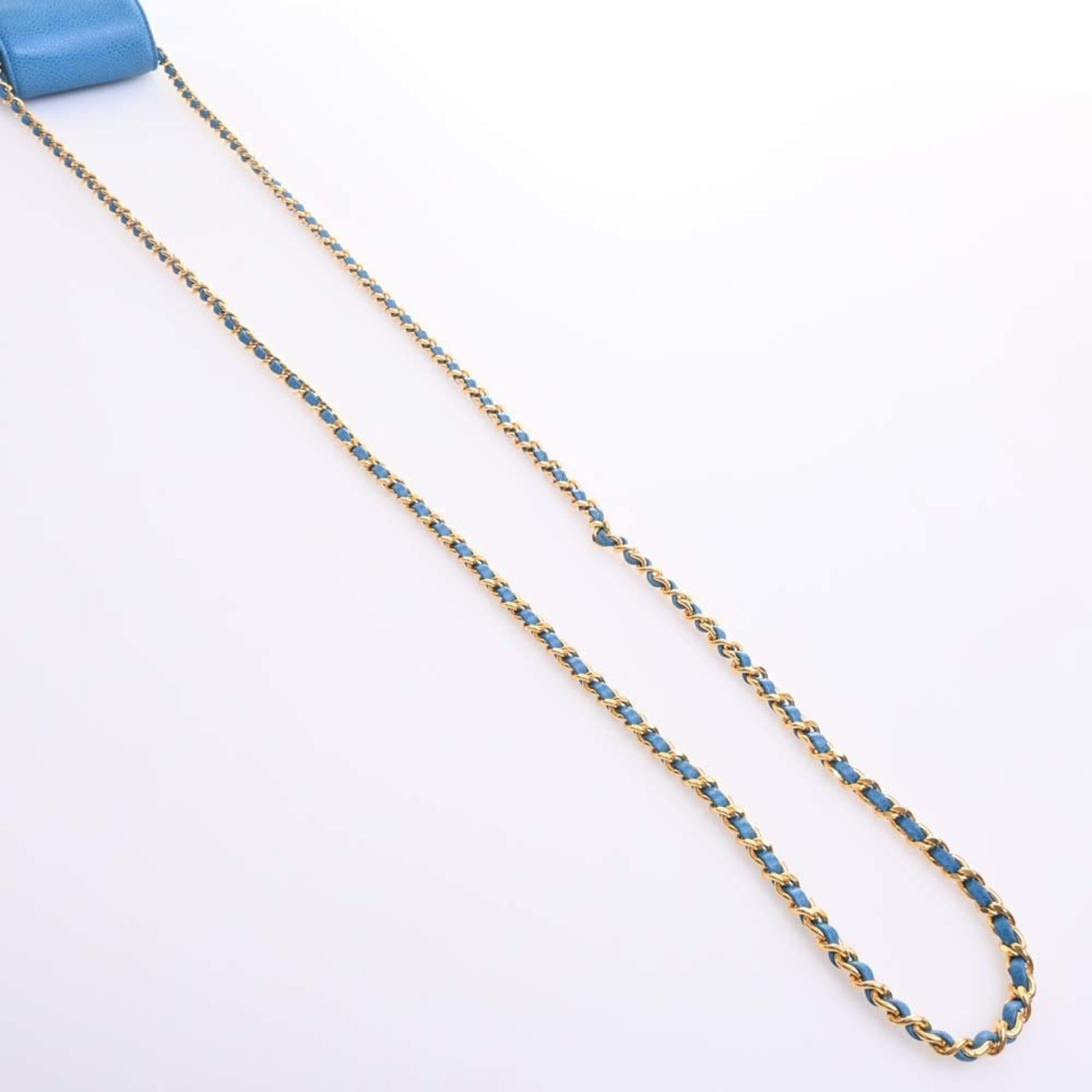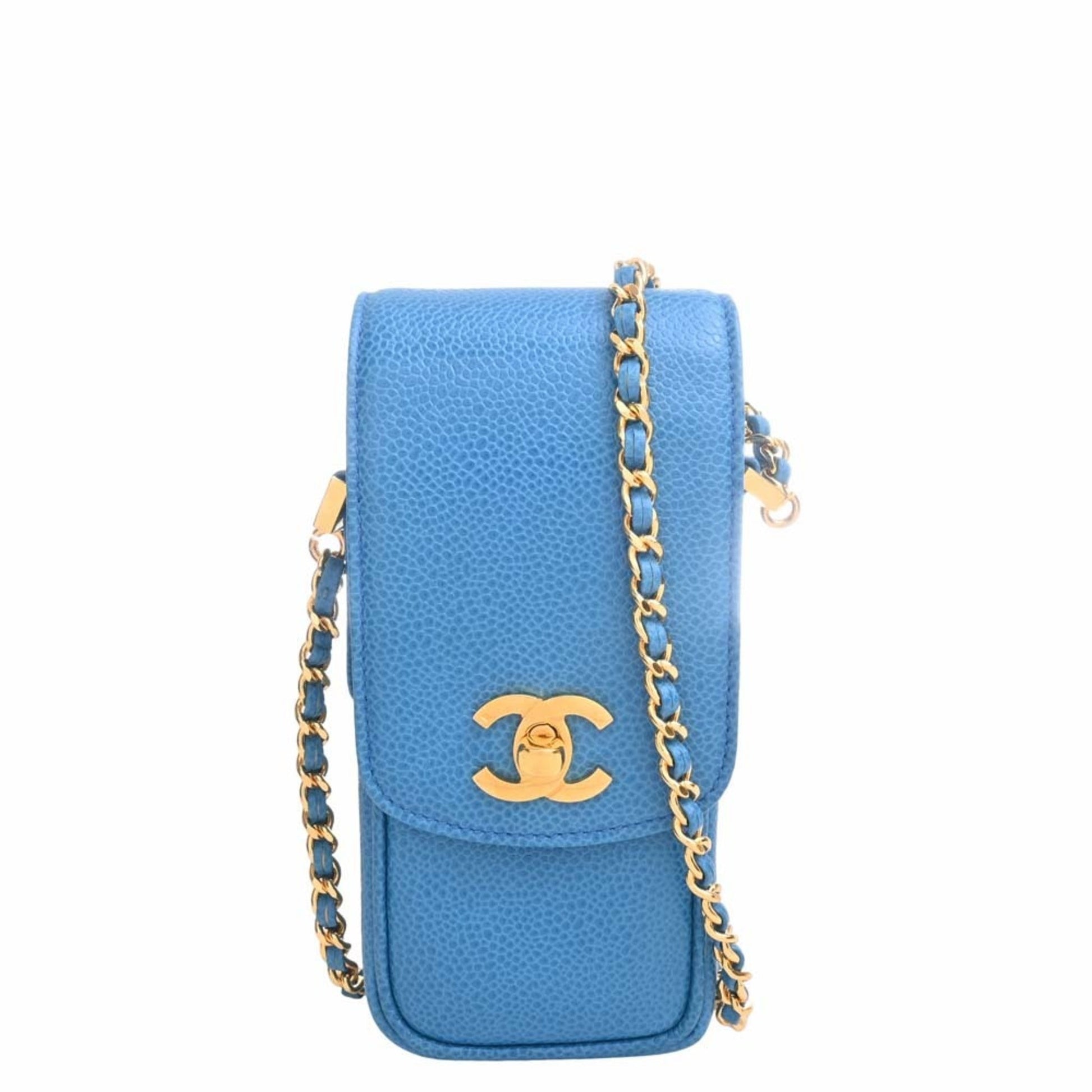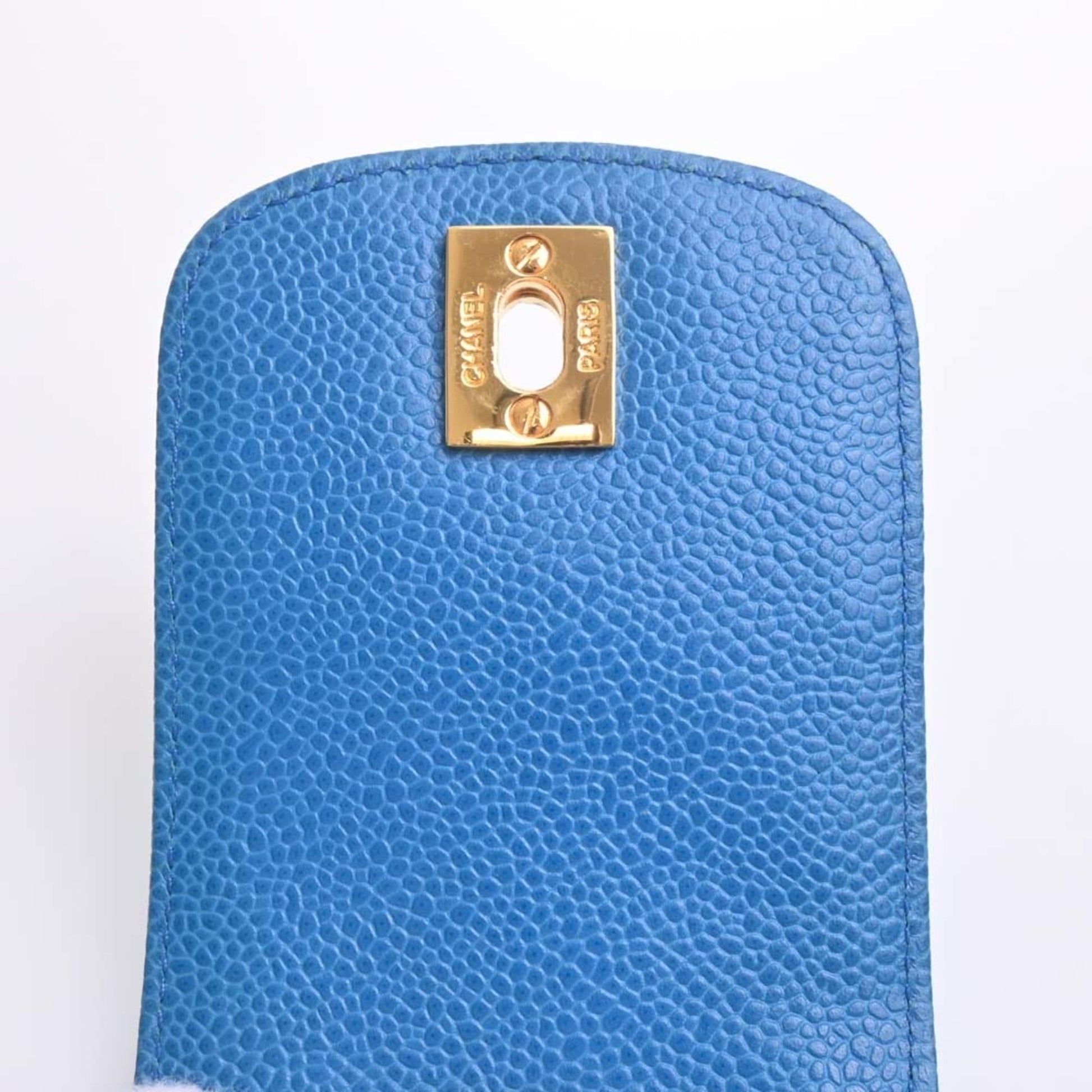 Chanel Leather Coco Mark Chain Phone Case Shoulder Bag Blue Ladies