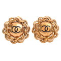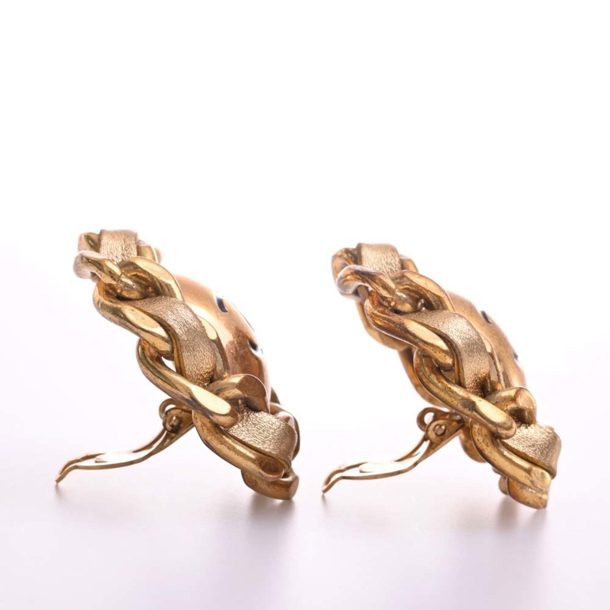 Chanel Leather Coco Mark Earrings Gold Ladies