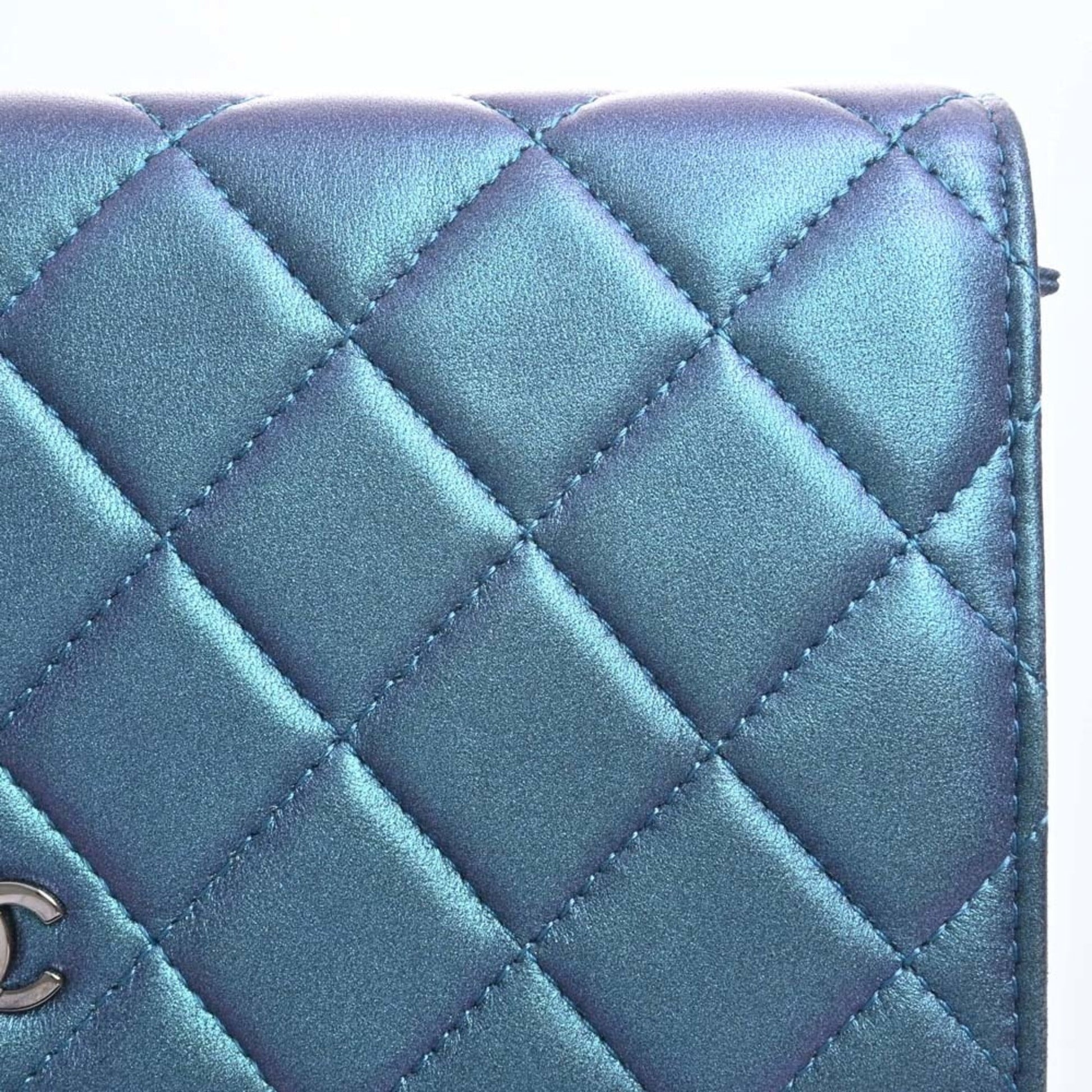 Chanel Leather Matelasse Coco Mark Chain Shoulder Long Wallet Blue Ladies