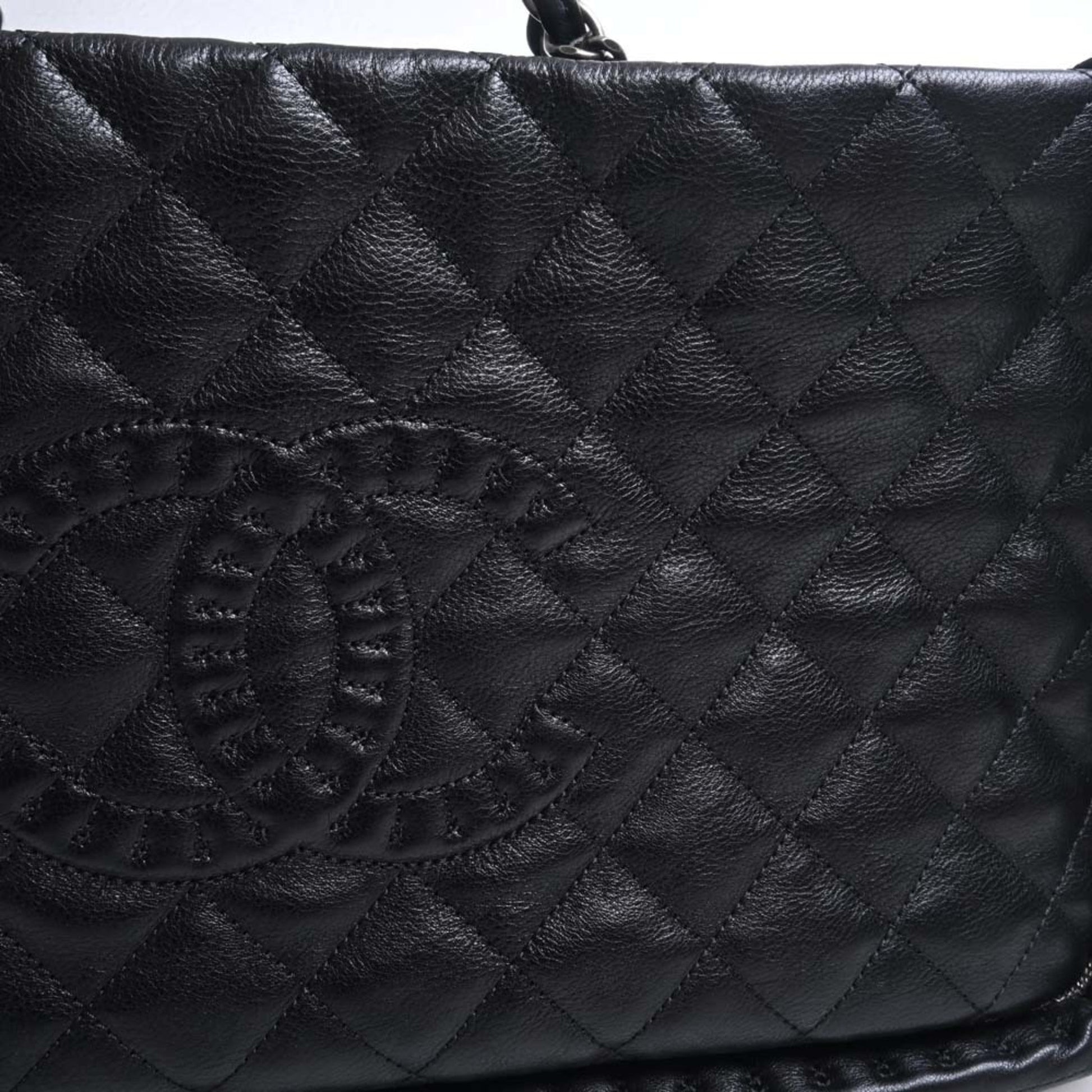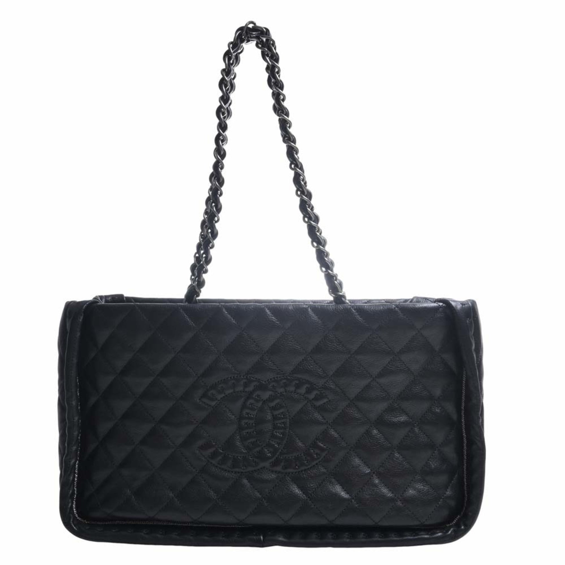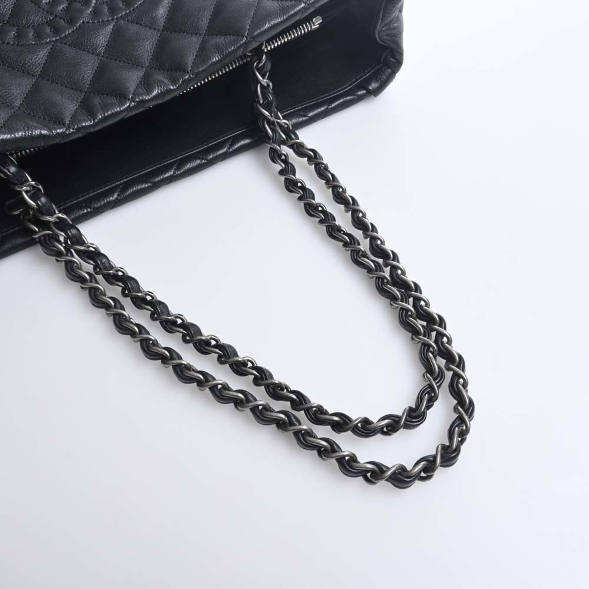 Chanel Leather Matelasse Coco Mark Chain Tote Bag Black Ladies