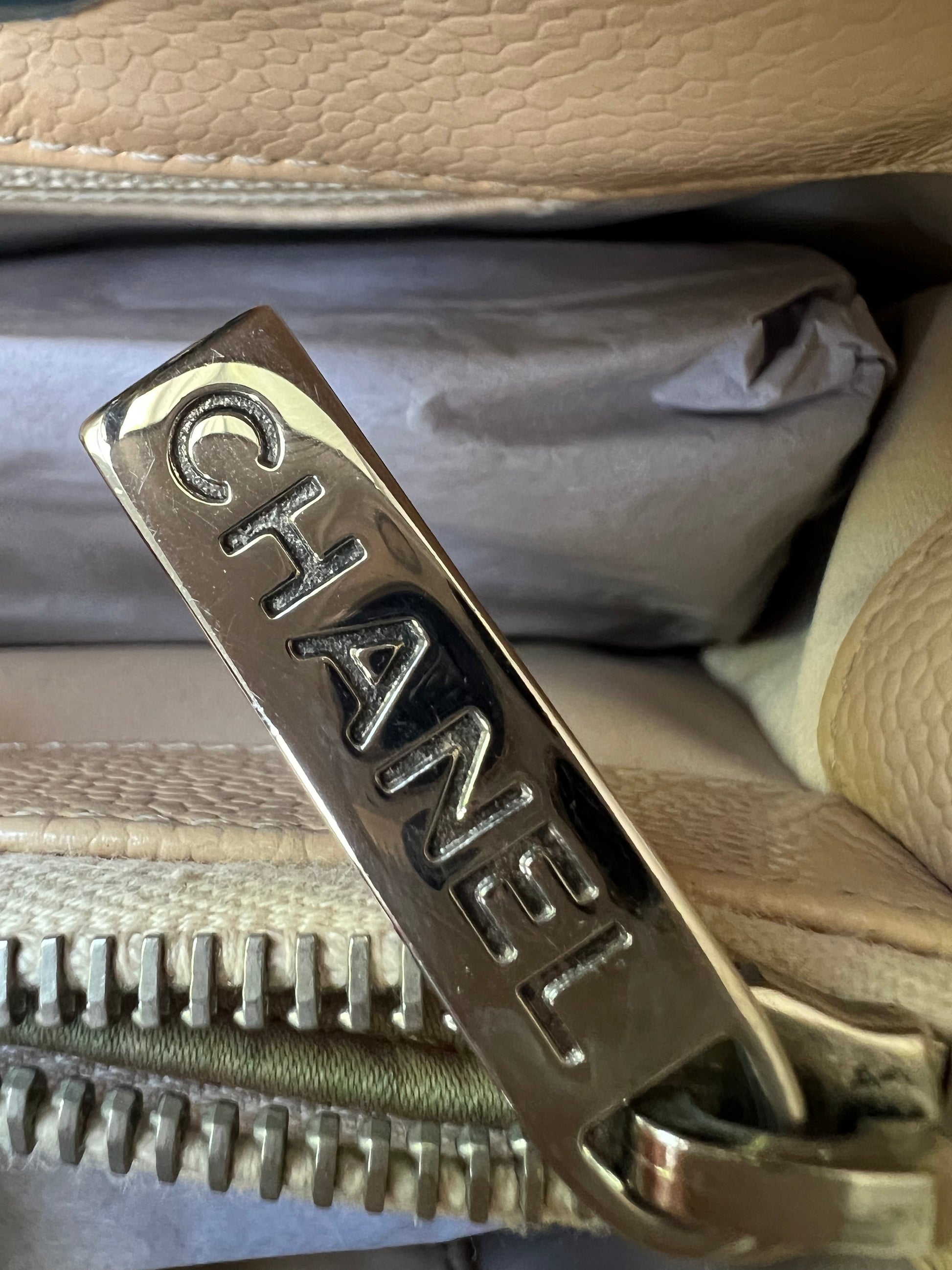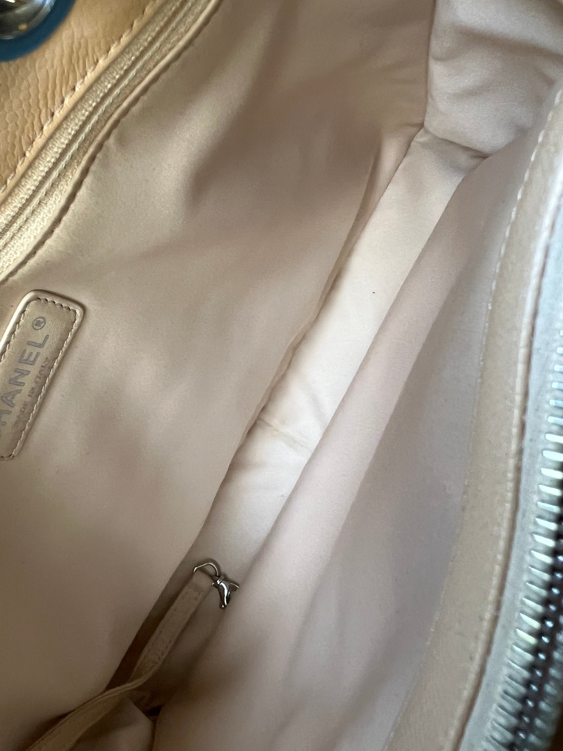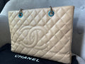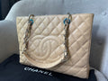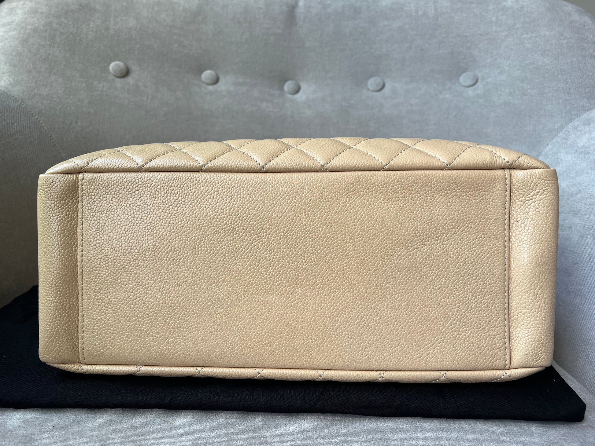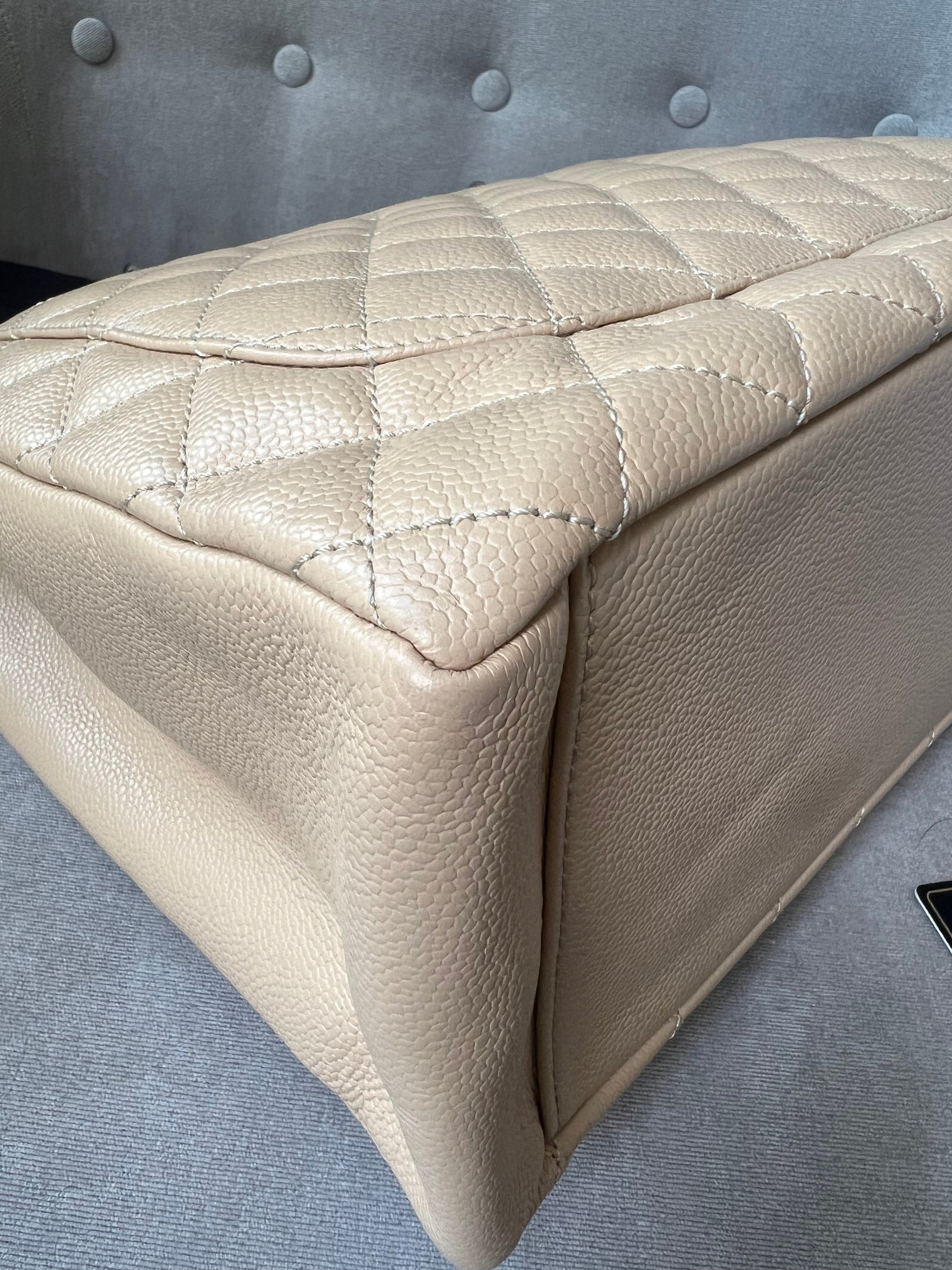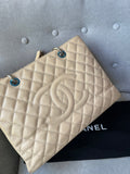 Chanel Light Beige Caviar Grand Shopper Tote with silver hardware (GST)