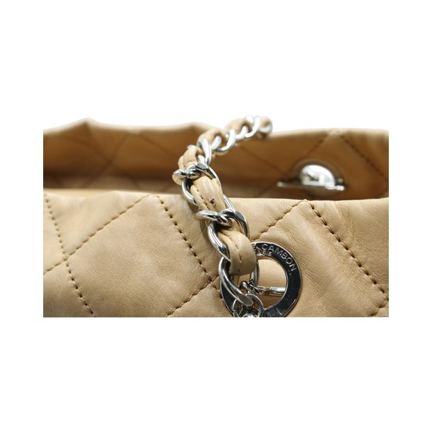 Chanel Light Brown And Black Quilted Tote Bag In Silver Hardware