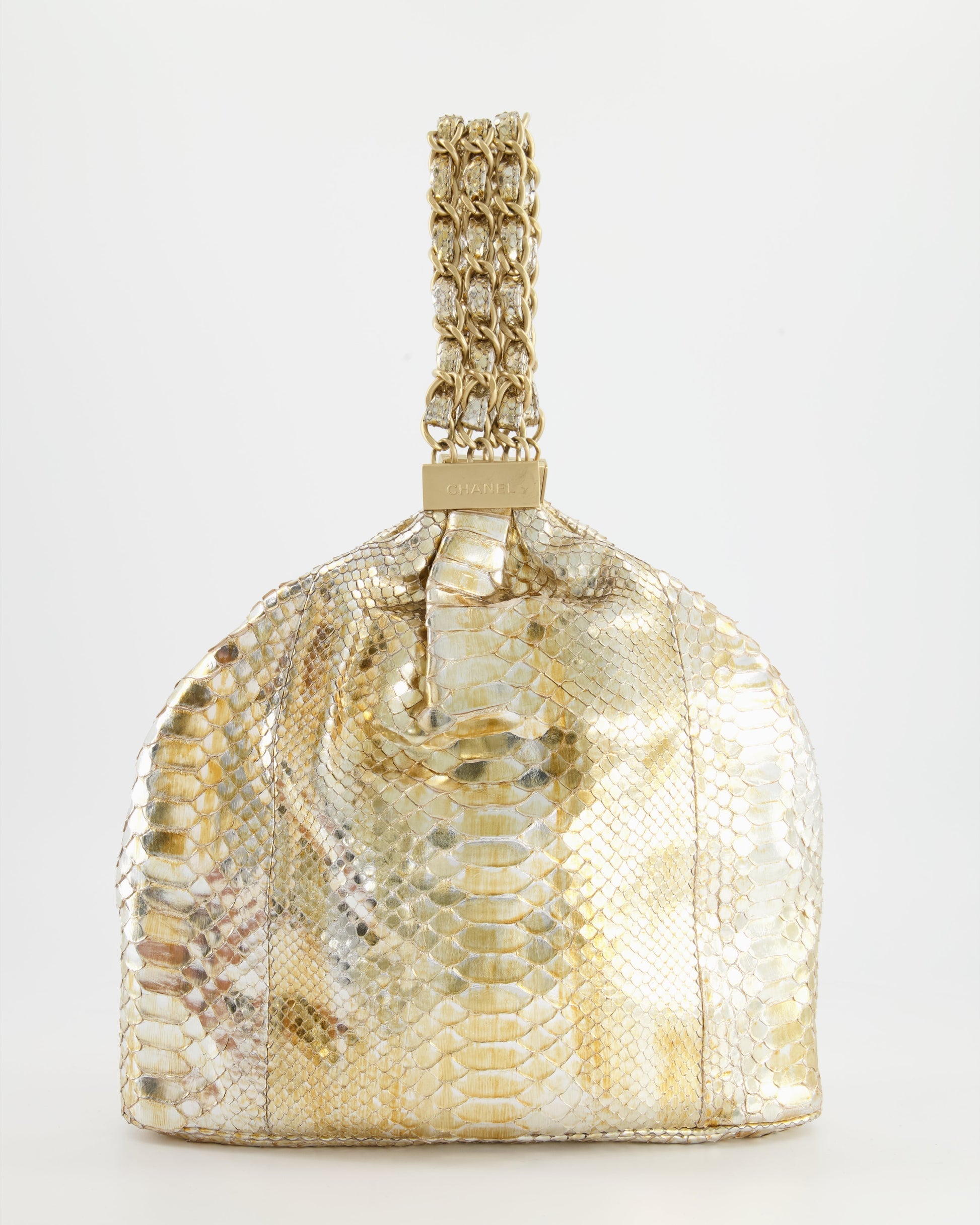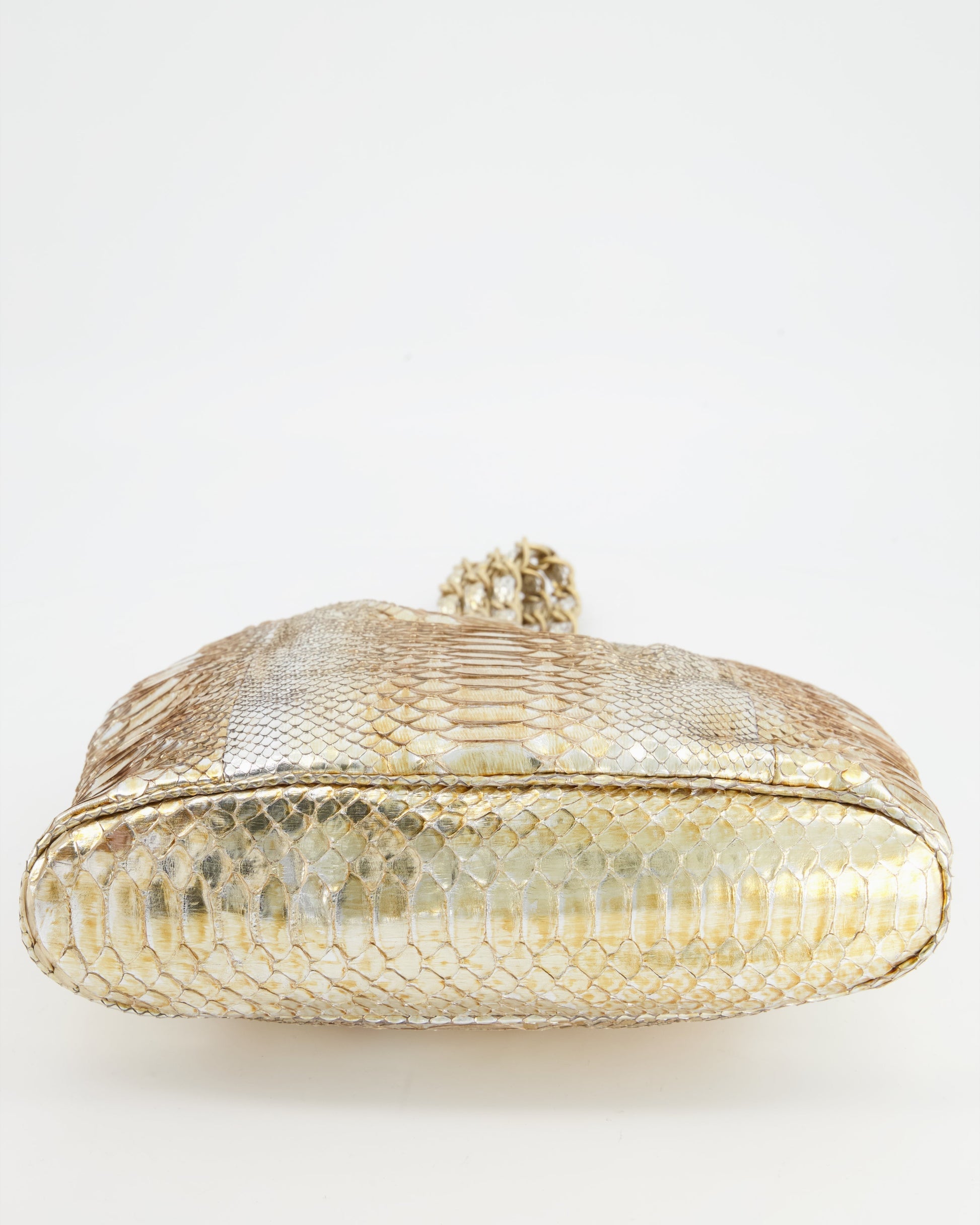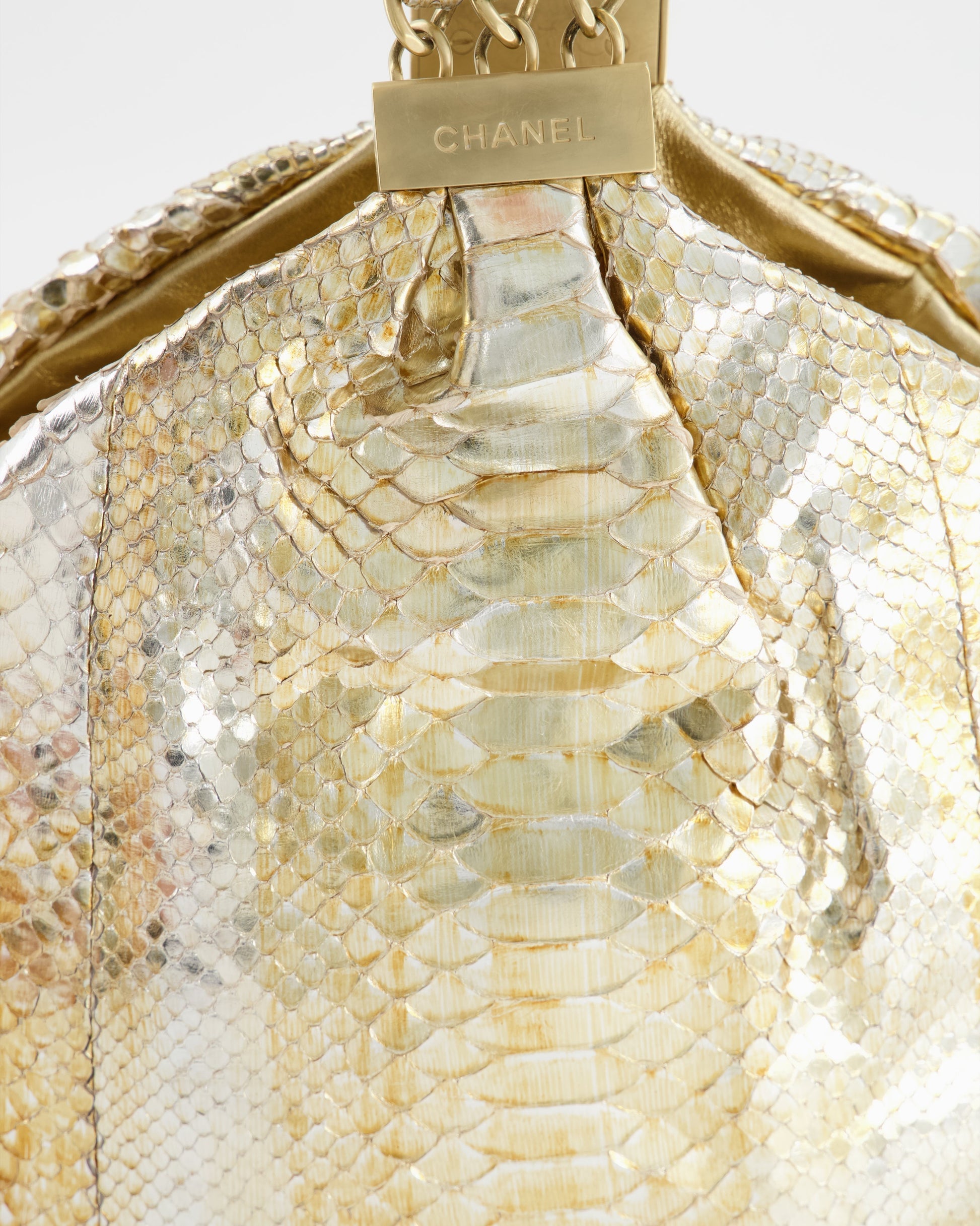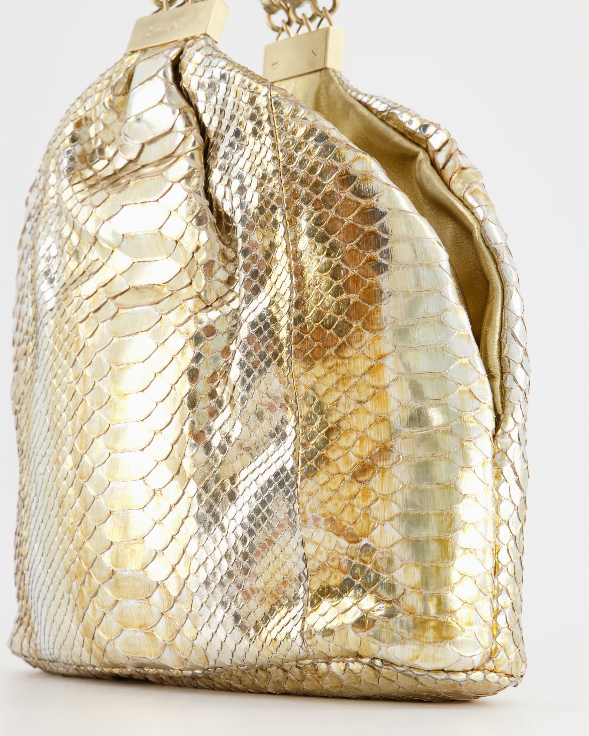 Chanel Vintage Limited Edition Gold Metallic Python Top Handle Bag