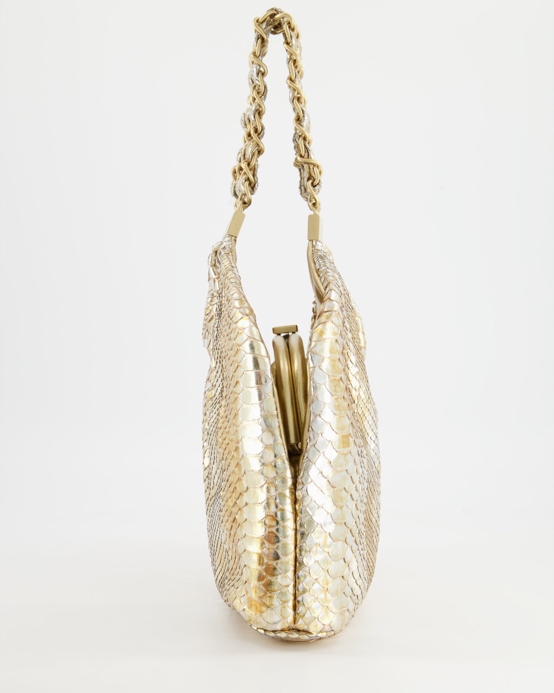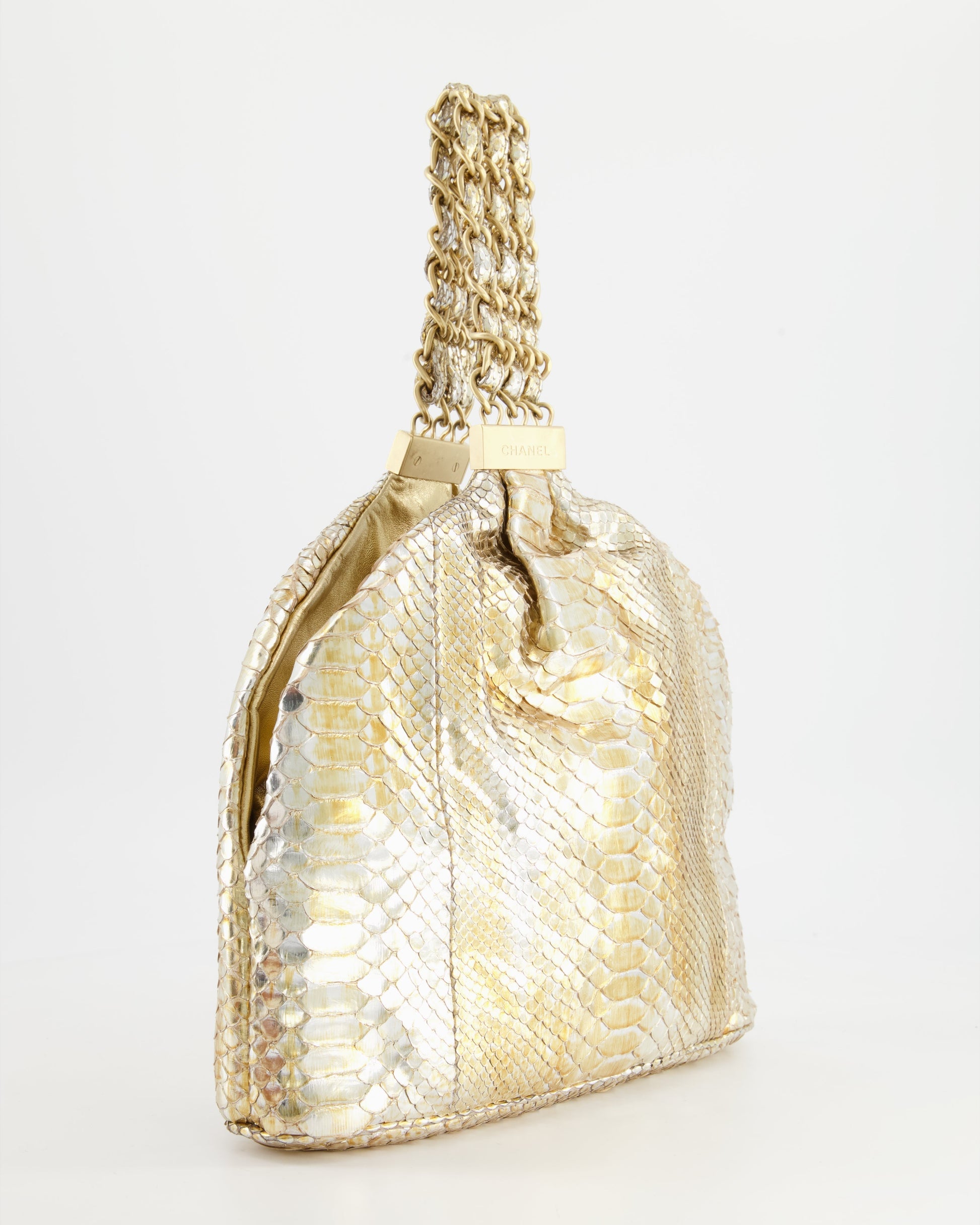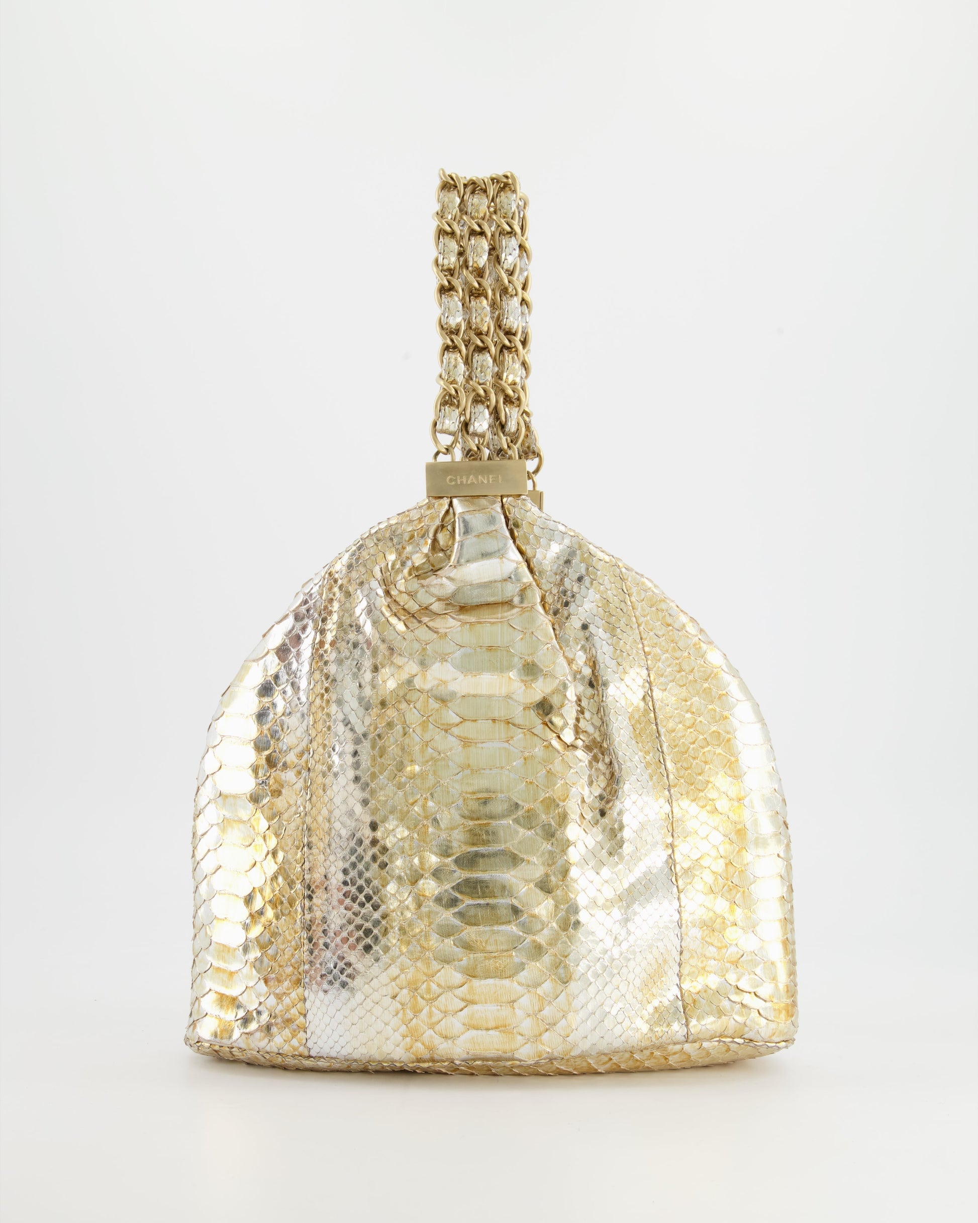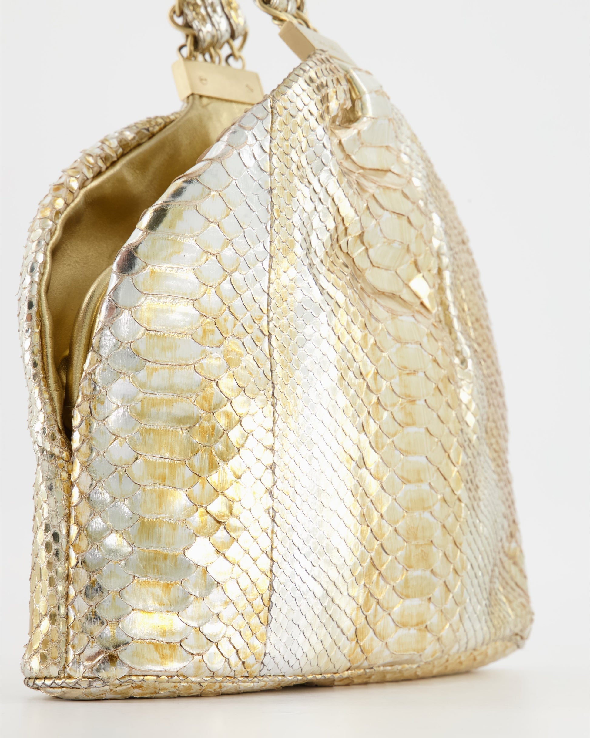 Chanel Vintage Limited Edition Gold Metallic Python Top Handle Bag