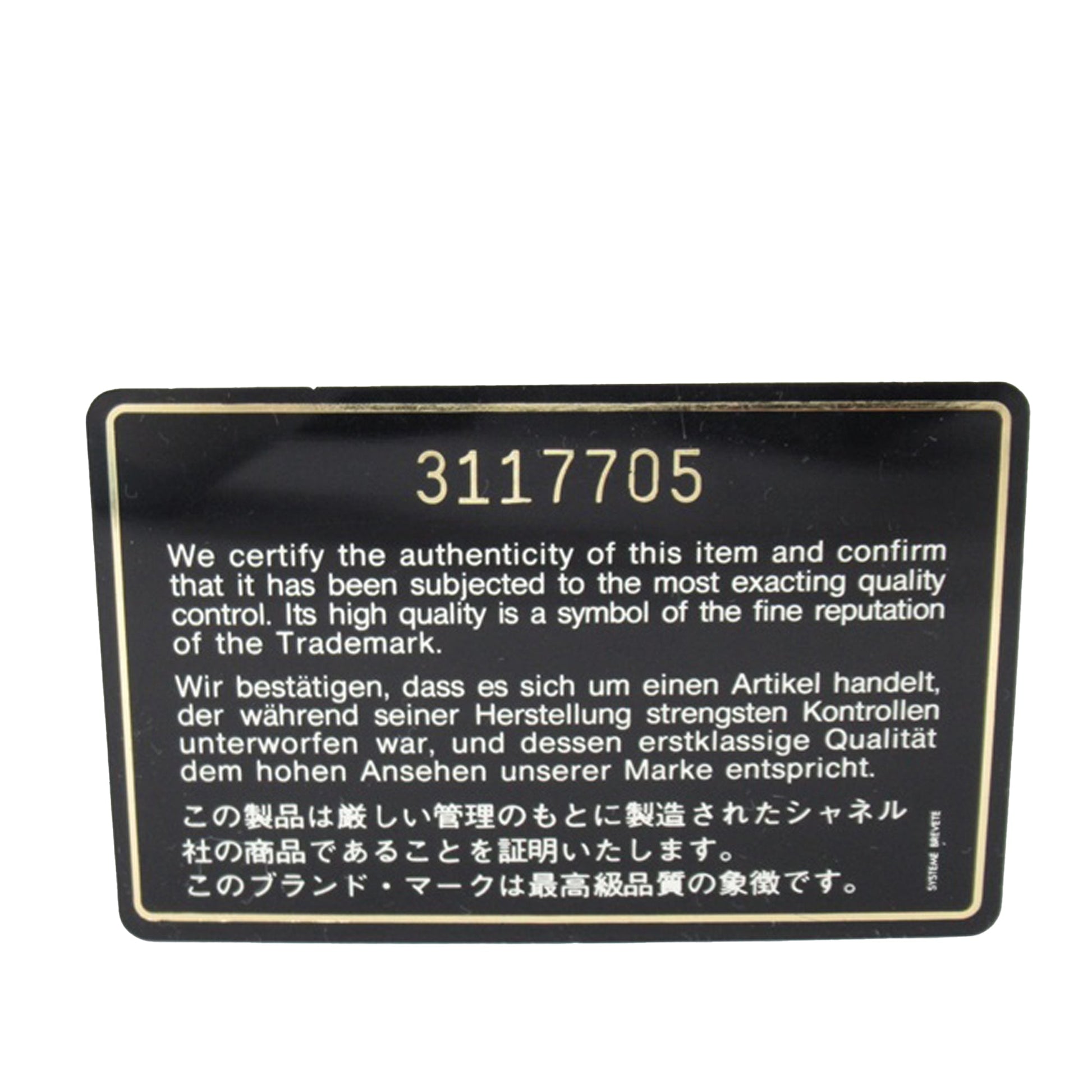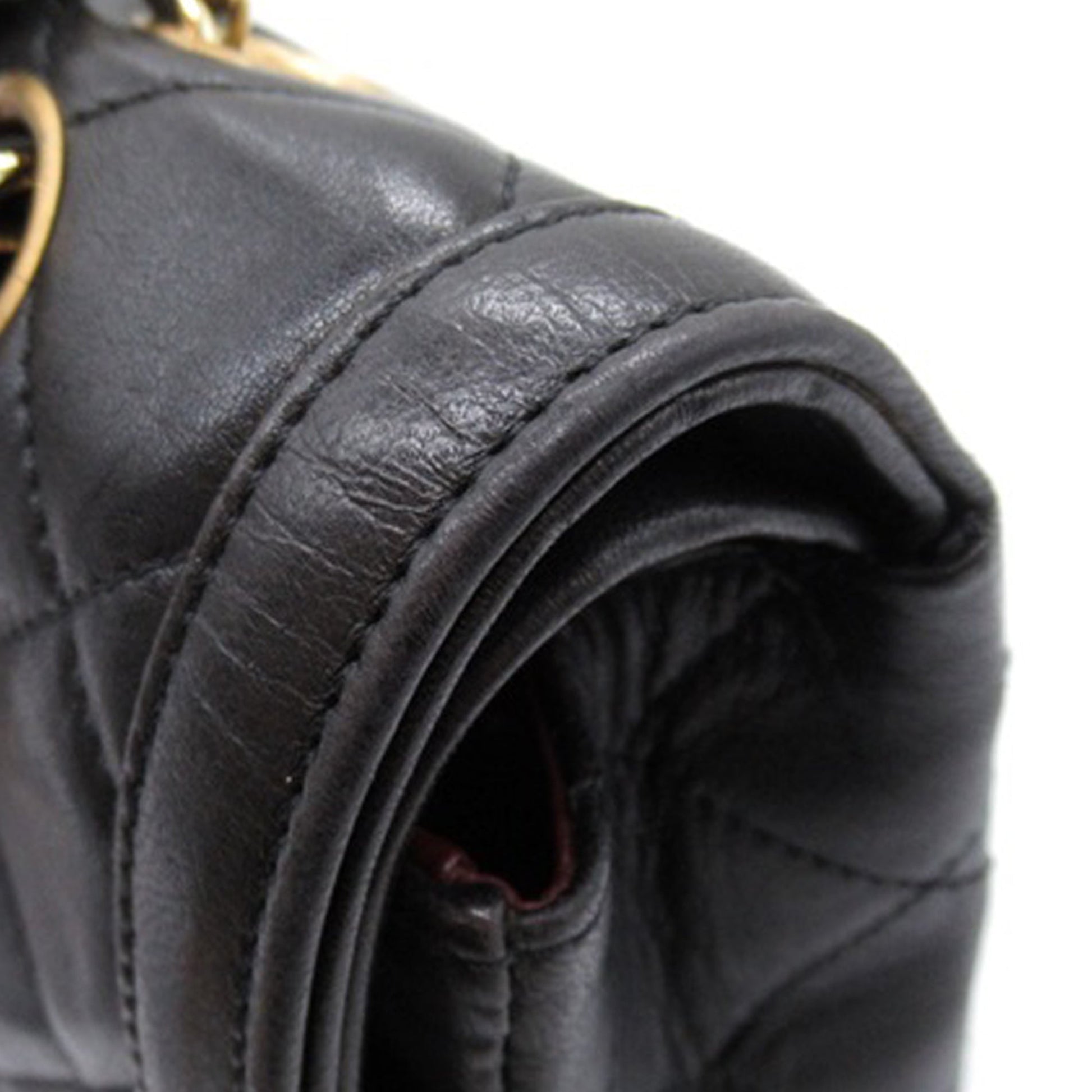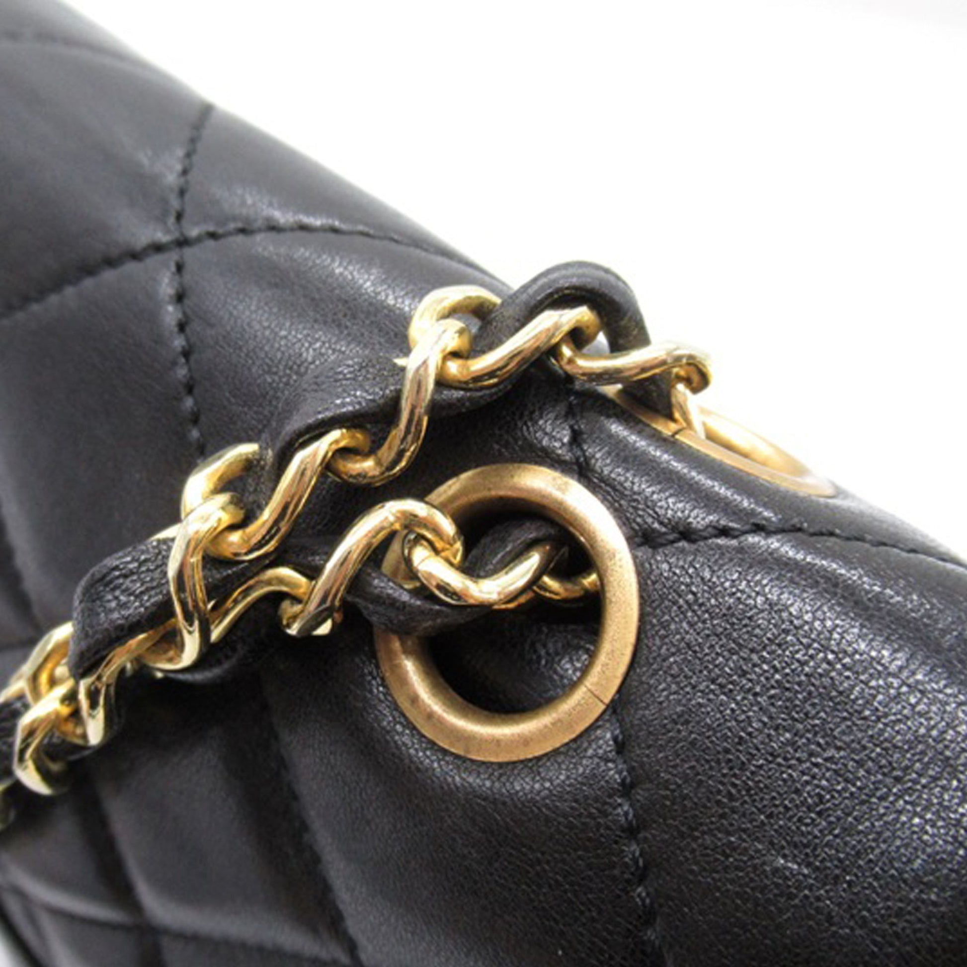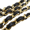 This shoulder Bag features a quilted lambskin body, leather woven chain shoulder straps, double front flaps with interlocking Cs and a twist lock closure, an exterior back slip pocket, and interior zip and slip pockets. Comes with ity card and dust Bag.