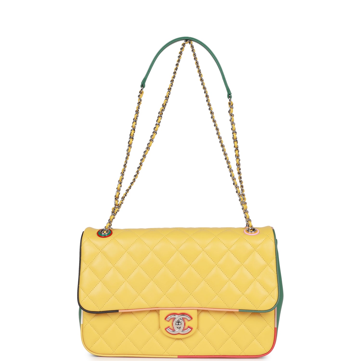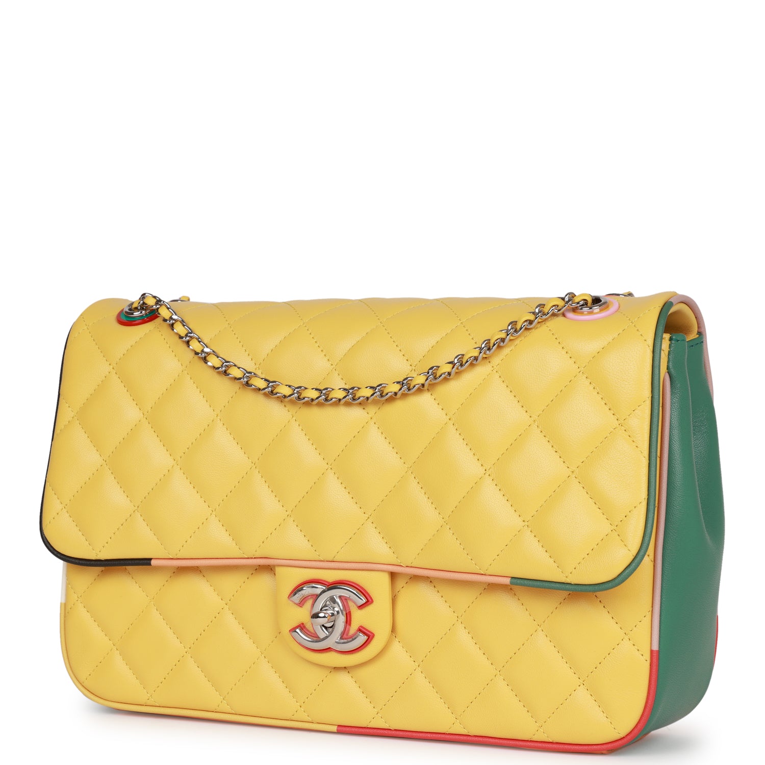 Chanel Cuba Color Flap Bag Yellow Lambskin Silver Hardware