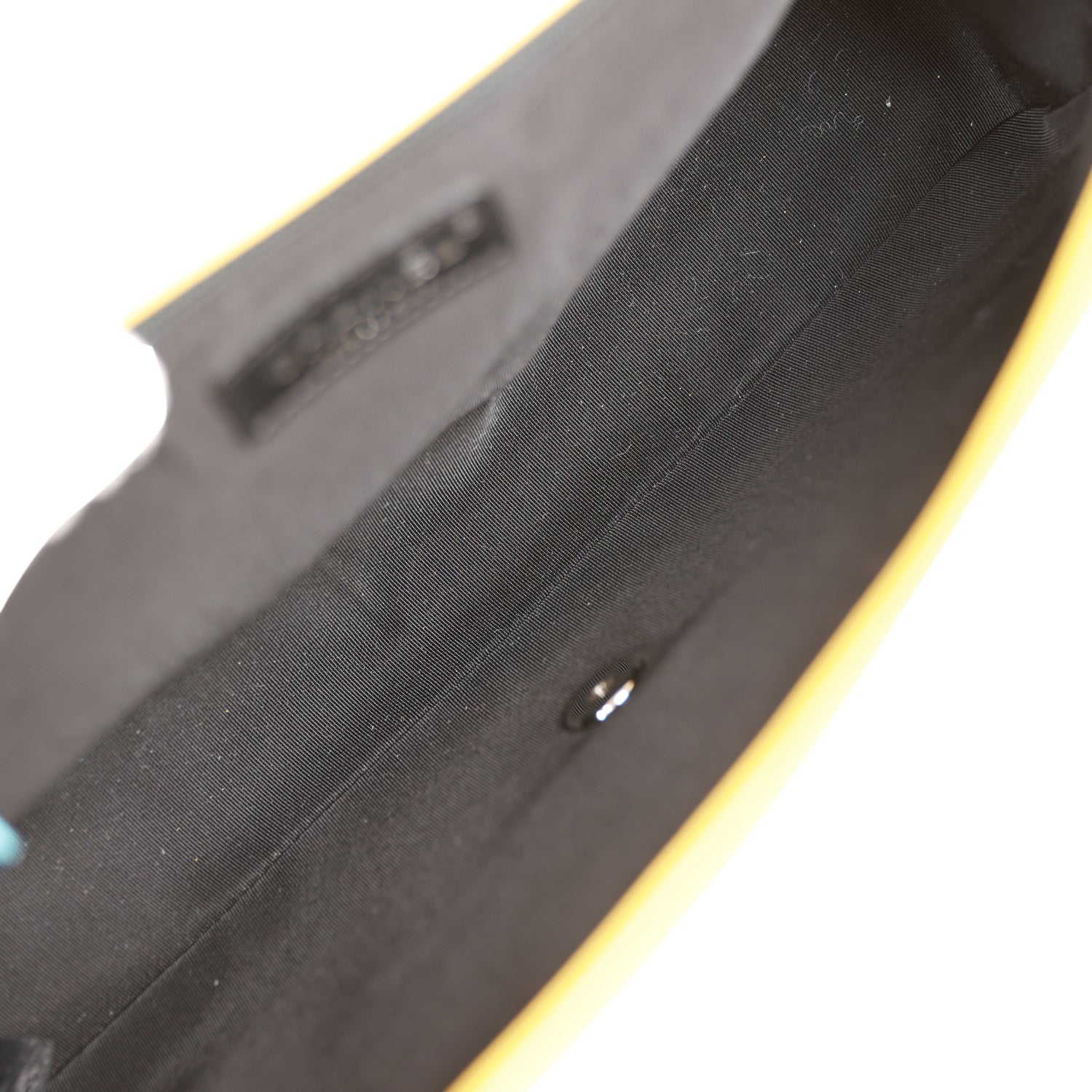 The interior is lined in black fabric with one zip pocket on the rear wall.