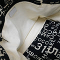 Elevate your style with the Chanel Logo By Sea Shoulder Tote Bag. Crafted in Italy from premium canvas and leather, this black tote exudes sophistication and luxury. The iconic Chanel logo adorns the front, making a bold fashion statement wherever you go. With ample space and a durable design, this tote seamlessly combines fashion and functionality for the modern woman on the move. Add a touch of elegance to your ensemble with the Chanel Logo By Sea Shoulder Tote Bag.
