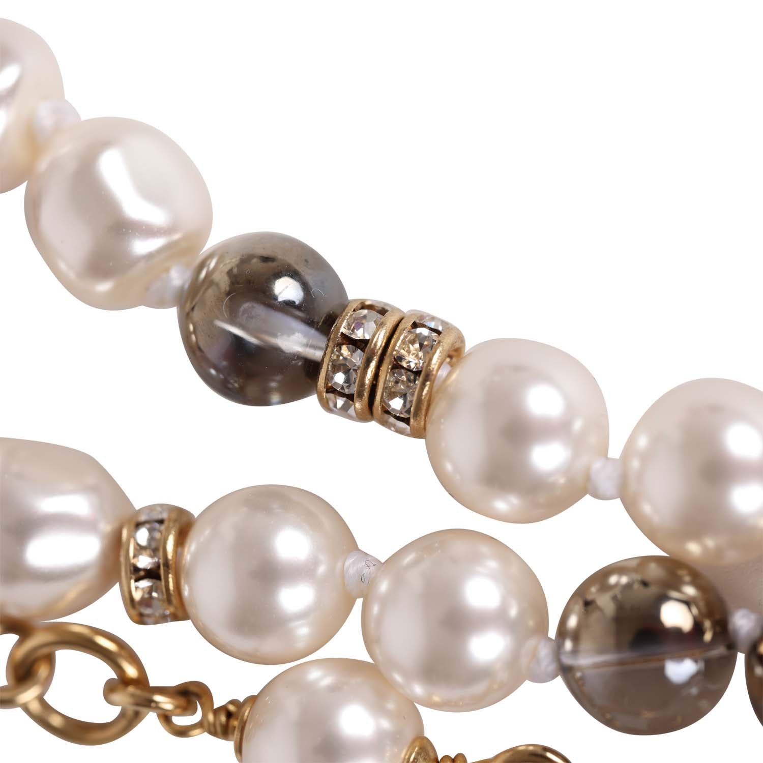 Chanel Long Pearl Necklace with Clear Gripoix, Strass, and Gold