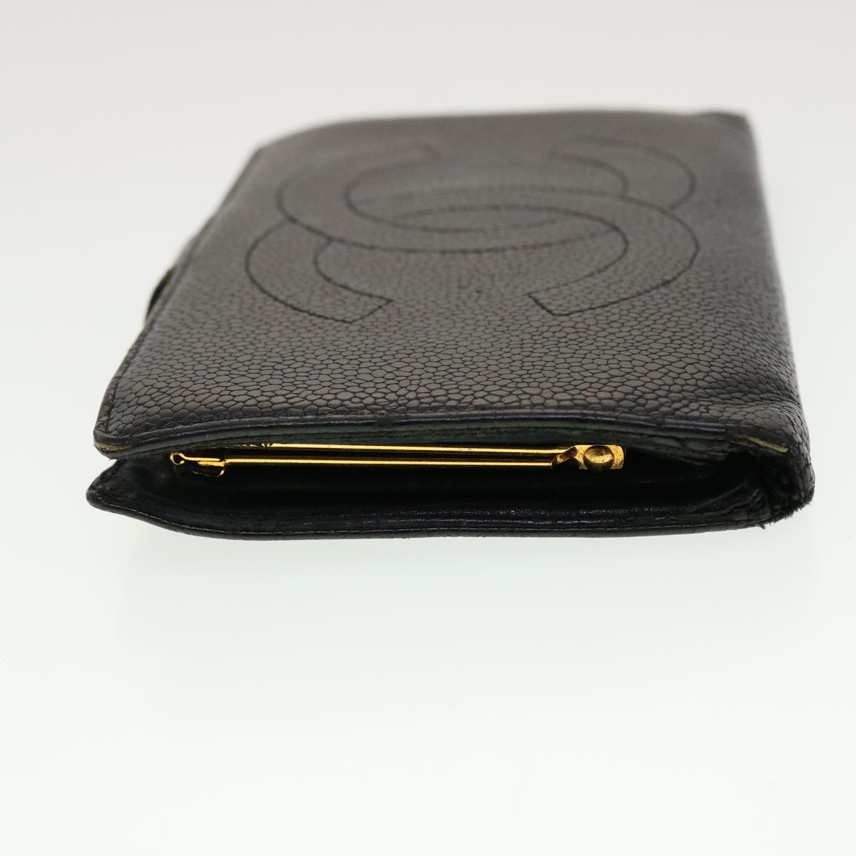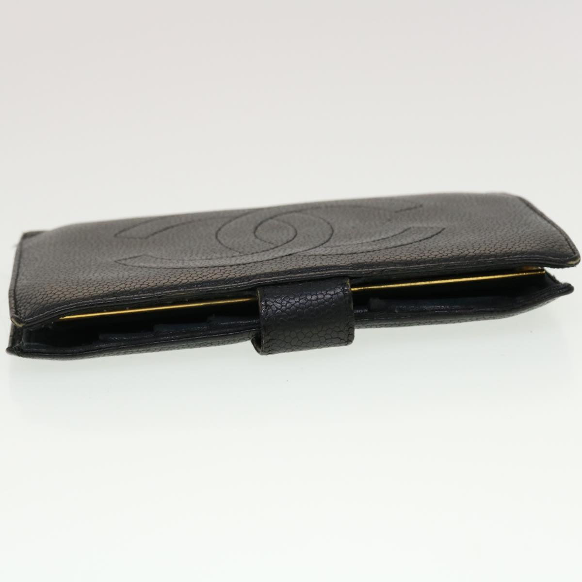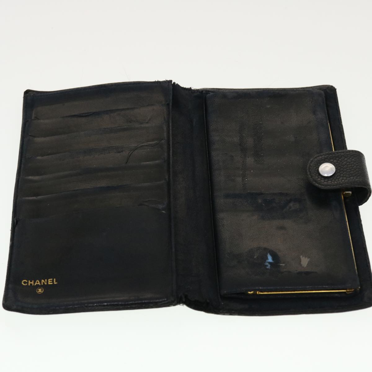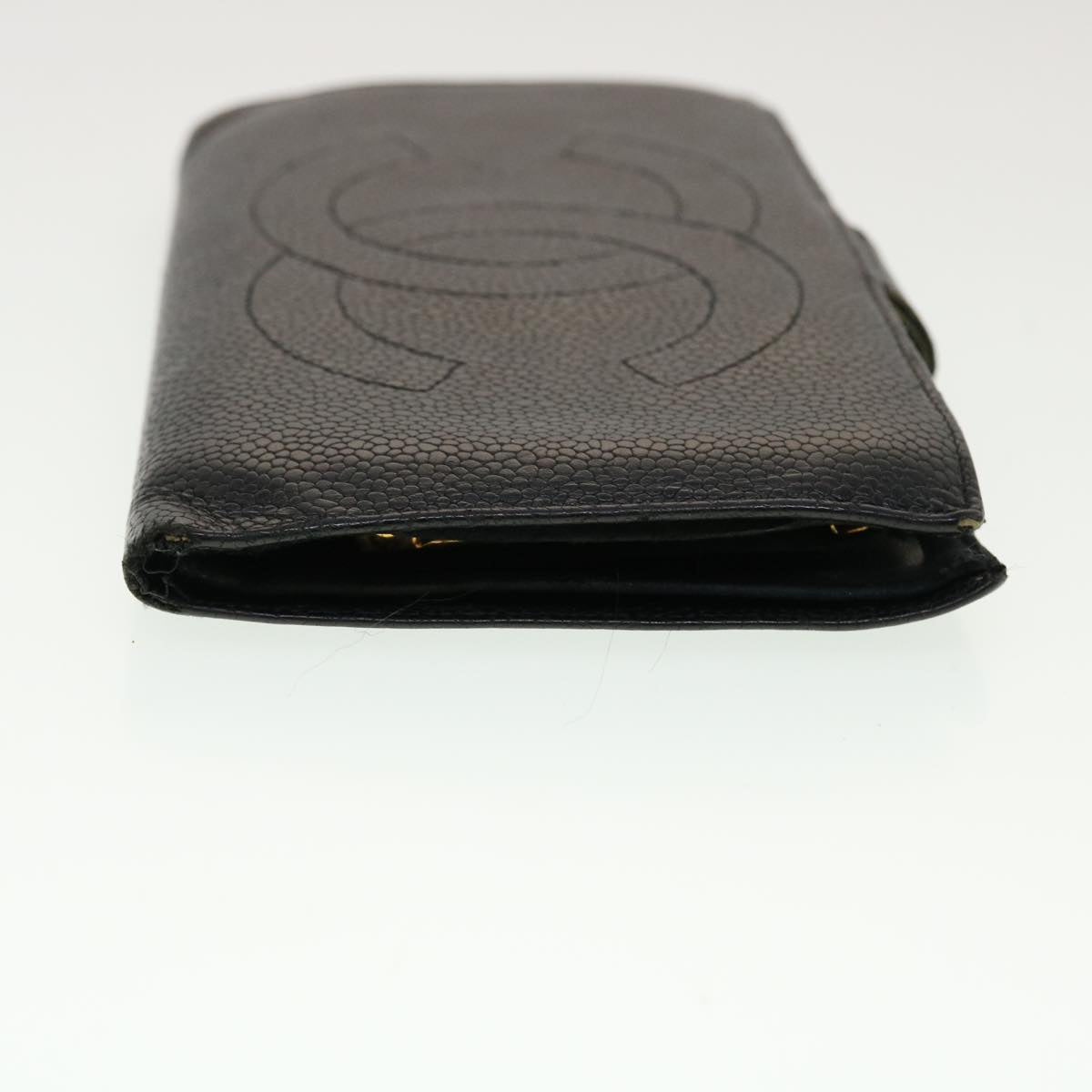 Chanel Long Wallet Caviar Skin Black CC Auth ti1128