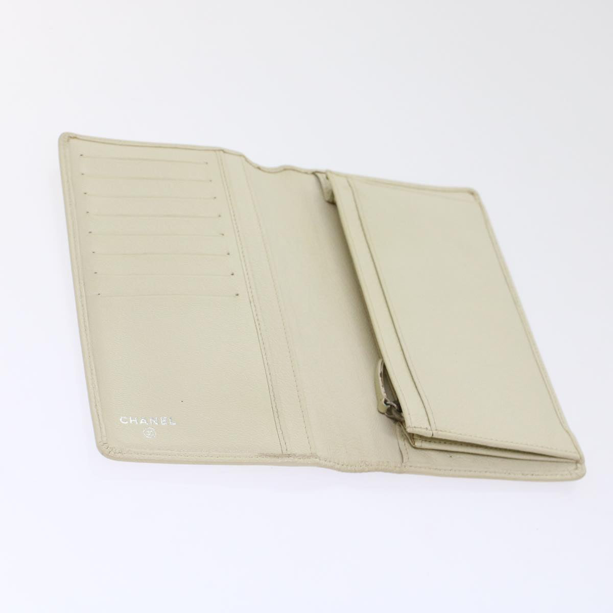 Chanel Long Wallet Leather White CC Auth ep1250
