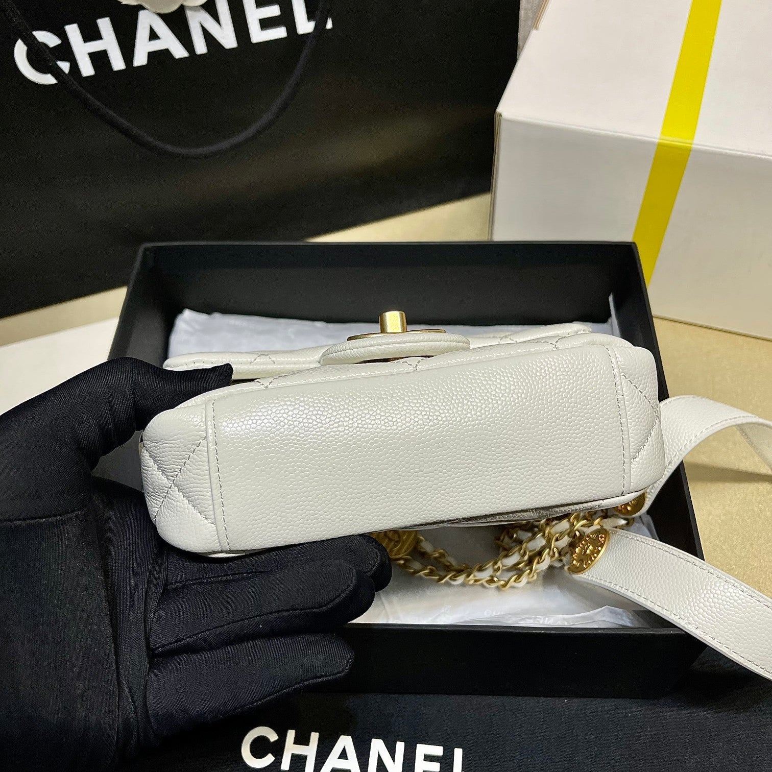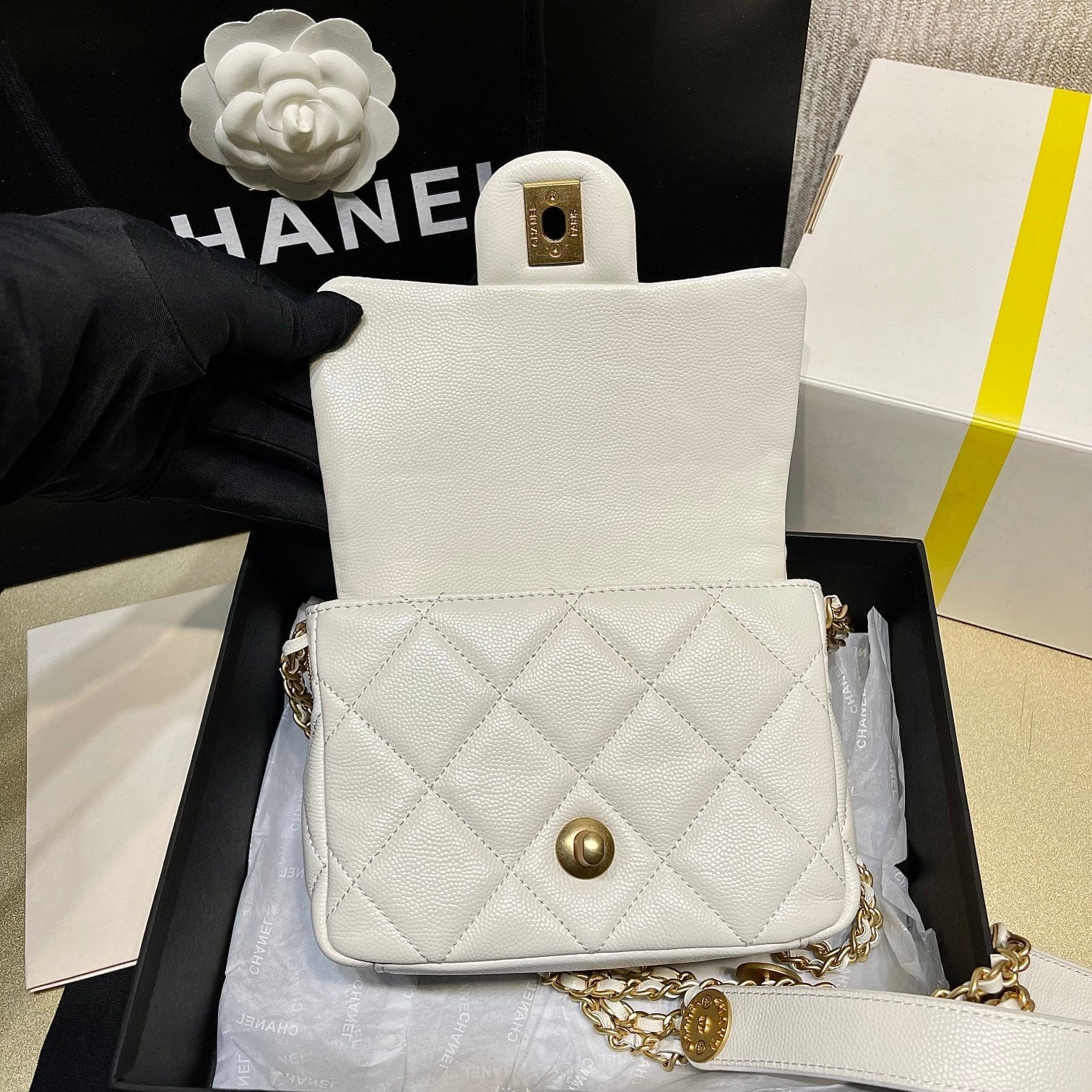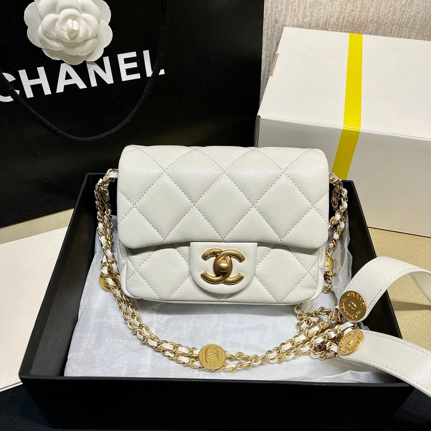 It comes with Dust box, Care manual, Tag and Paper bag.