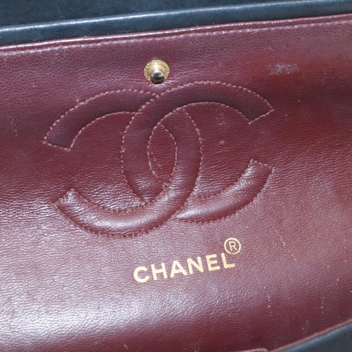 Chanel Mademoiselle Turn Lock Flap Shoulder Bag Lamb Skin Black CC Auth tp204A