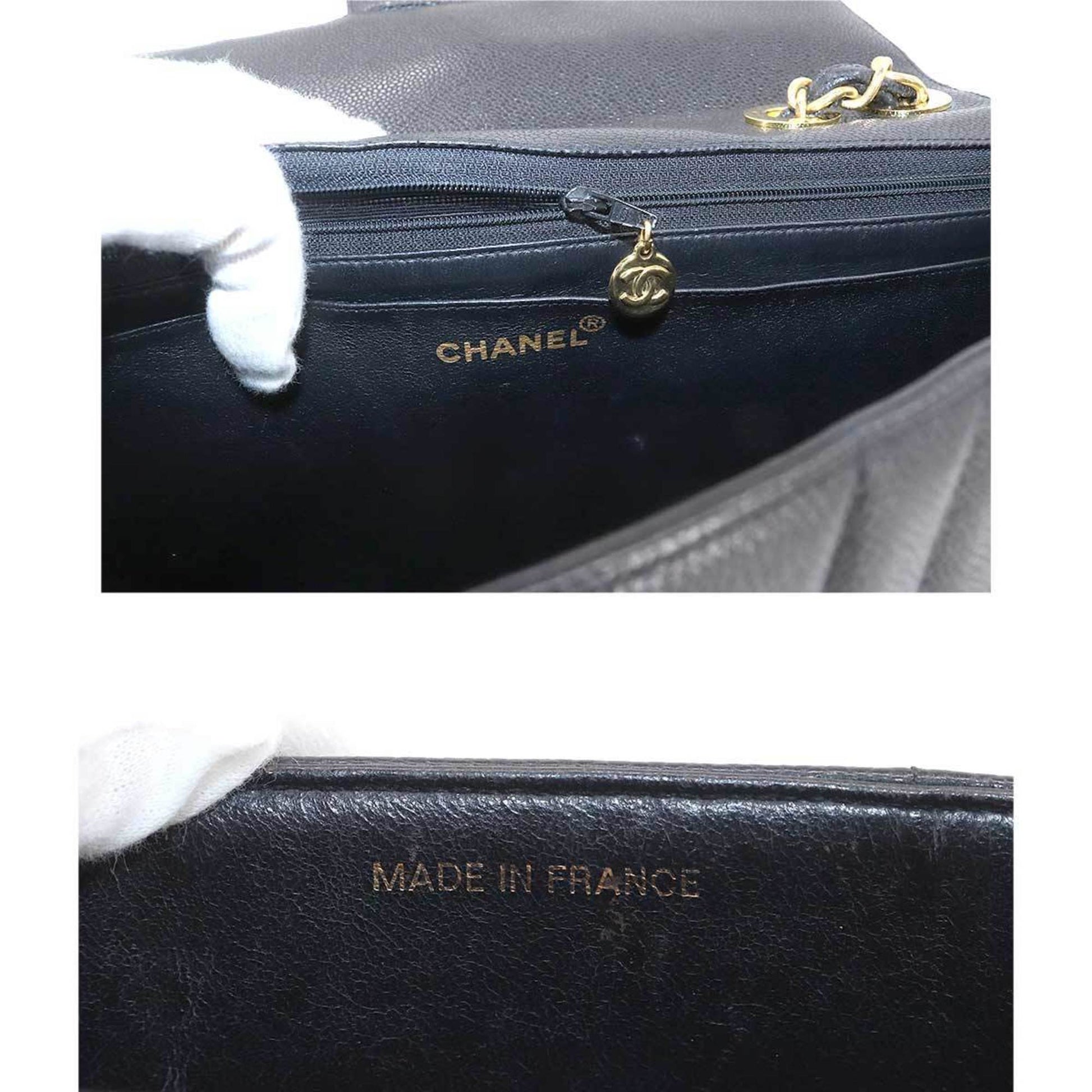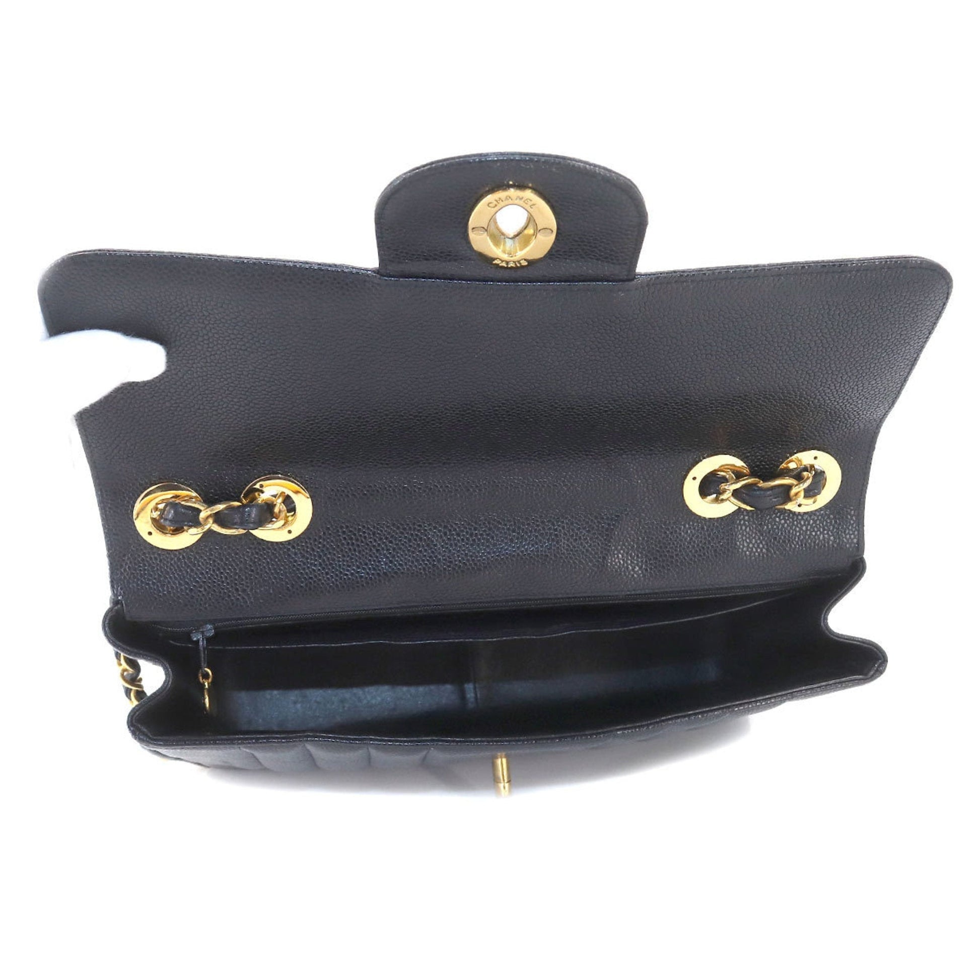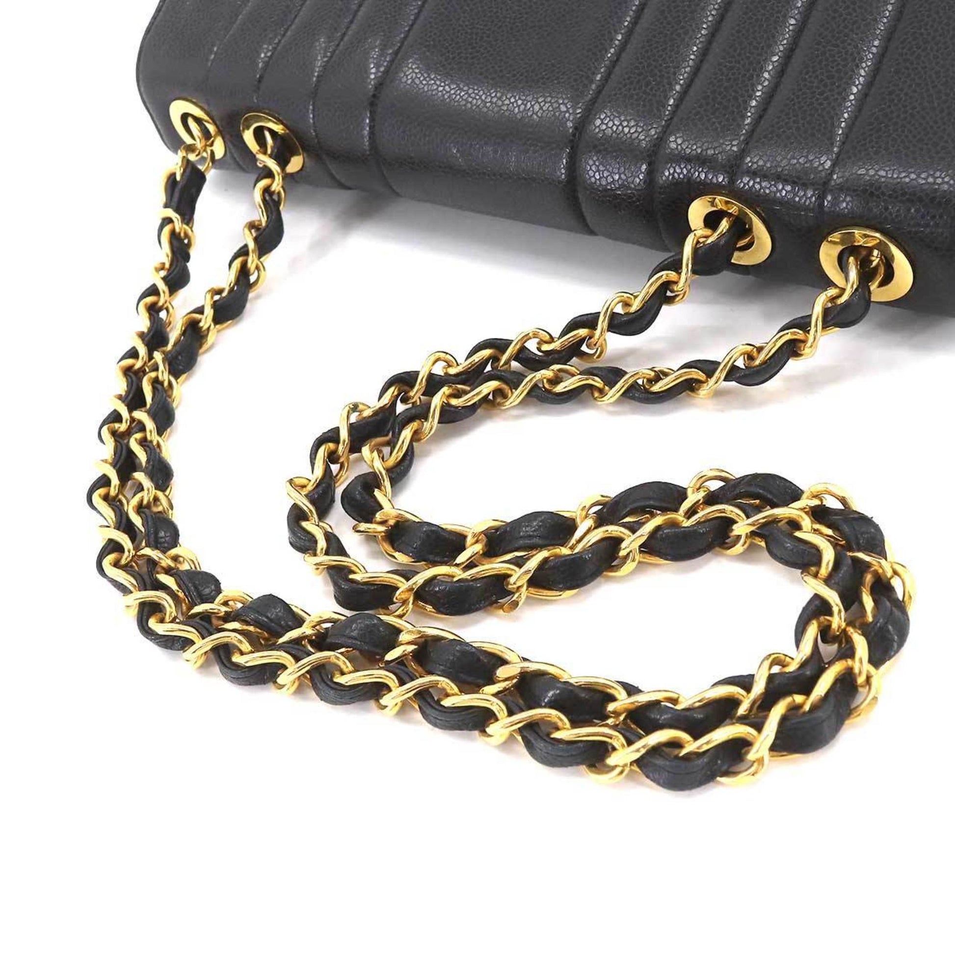 Chanel Mademoiselle Chain Shoulder Bag Caviar Skin Black Coco Mark Gold Hardware Vintage
