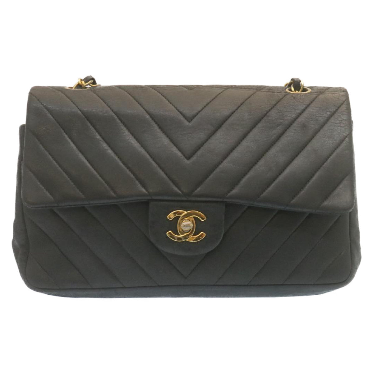 CHANEL Mademoiselle Turn Lock Flap Shoulder Bag Lamb Skin Black CC Auth ai677A