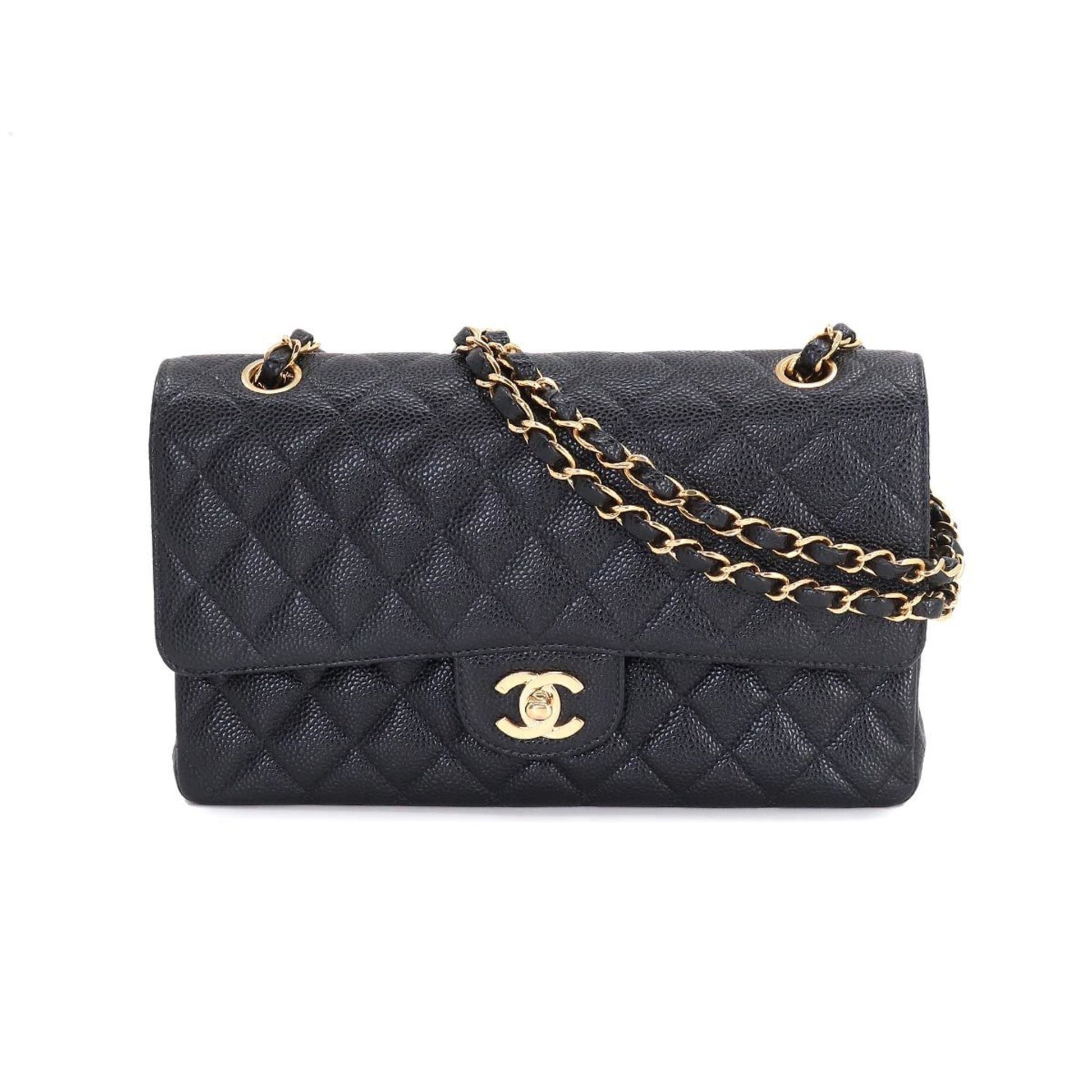Chanel Matelasse 25 Chain Shoulder Bag Caviar Skin Black A01112 Gold Hardware Coco Mark Vintage